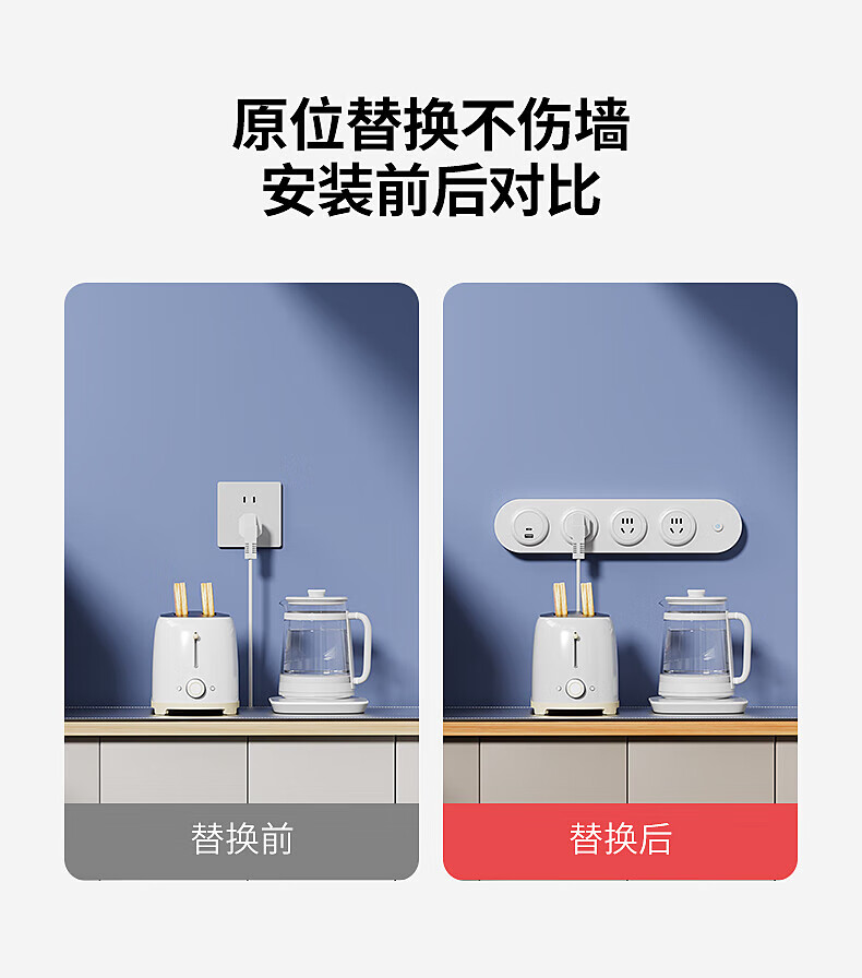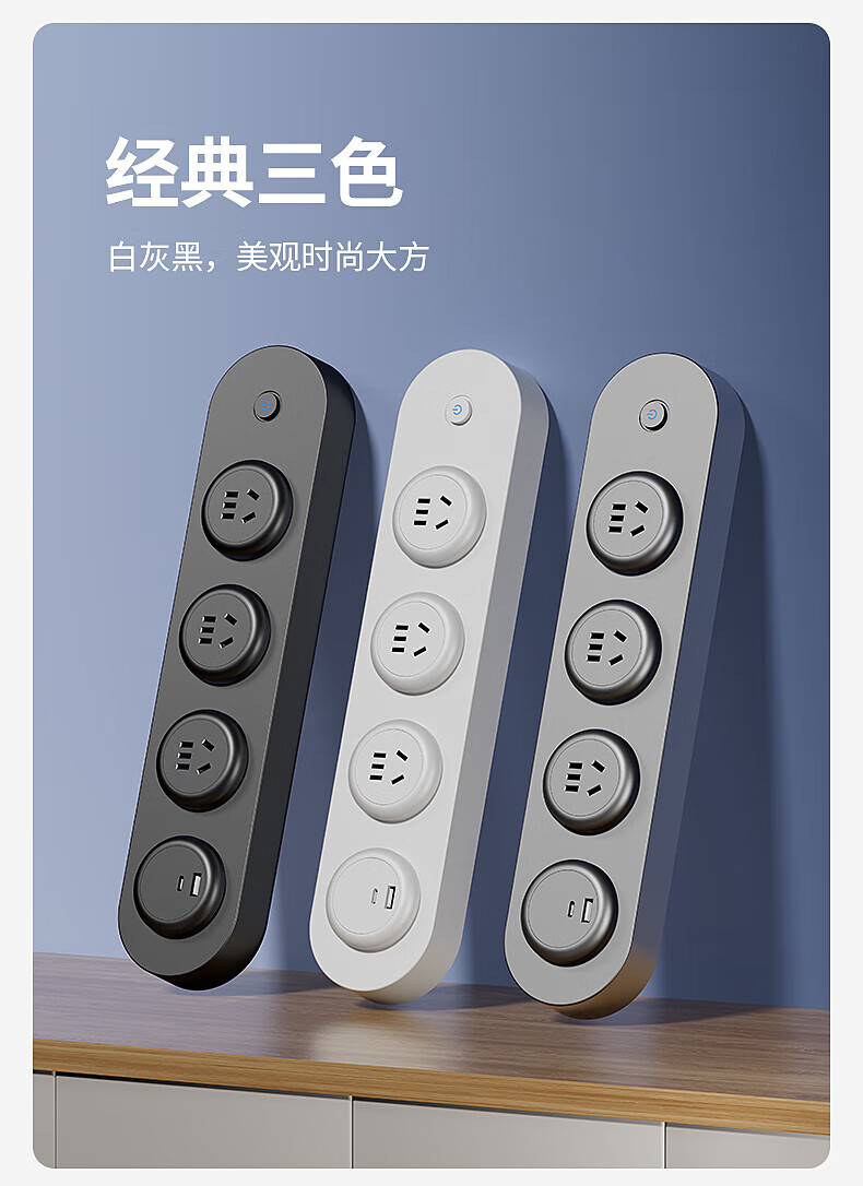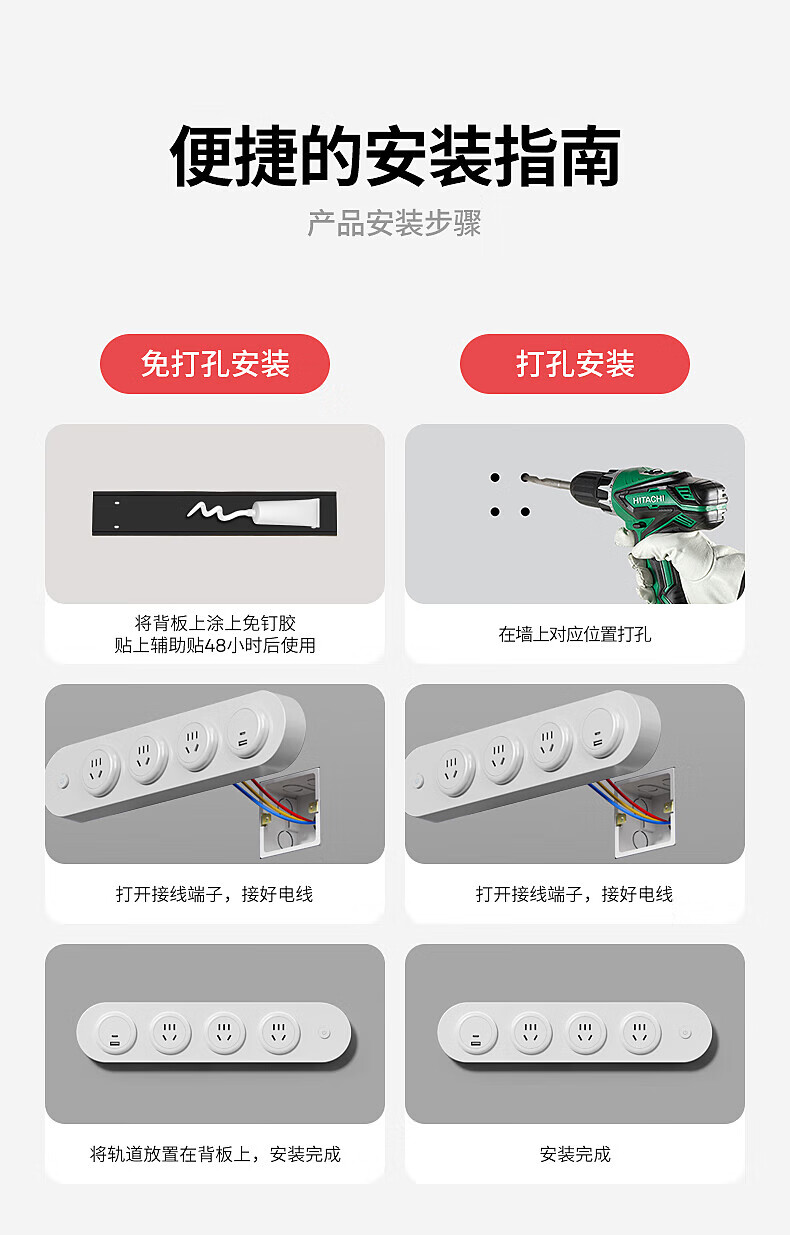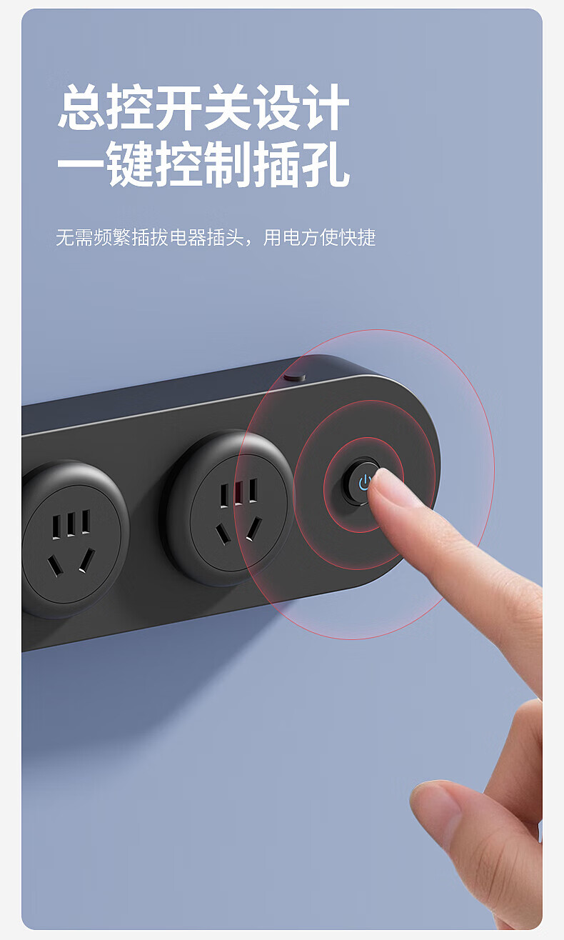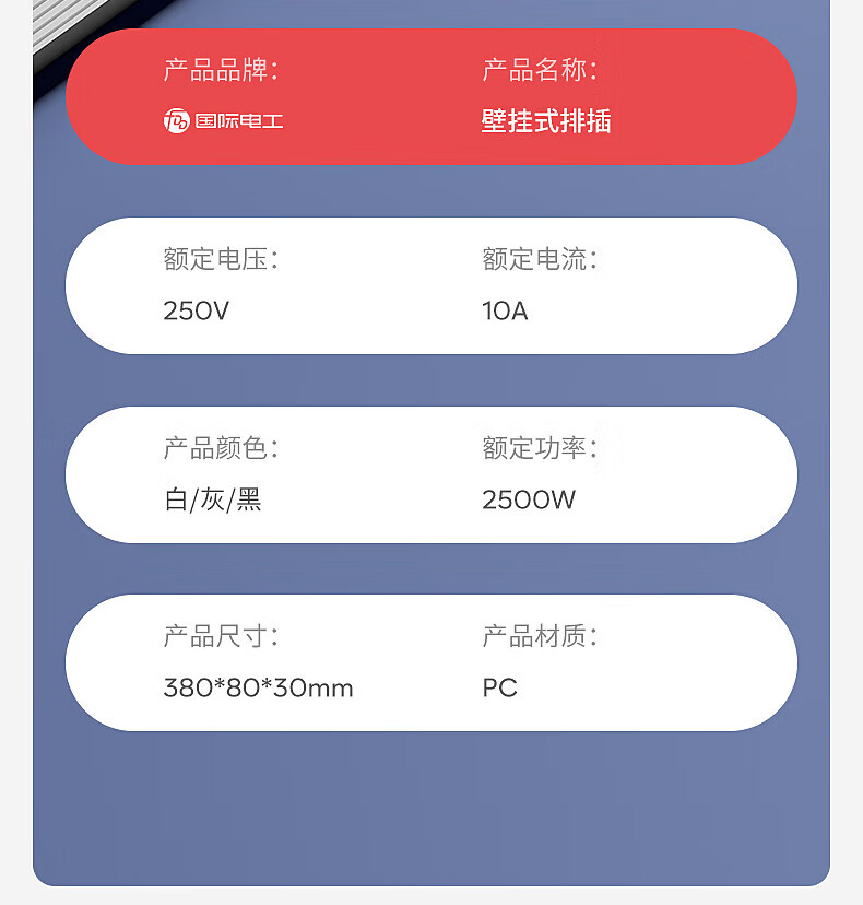 国际电工拓展扩展插座家用厨房挂壁式排插USB快充墙壁原位替换轨道插排 黑色四位五孔【一键控制】