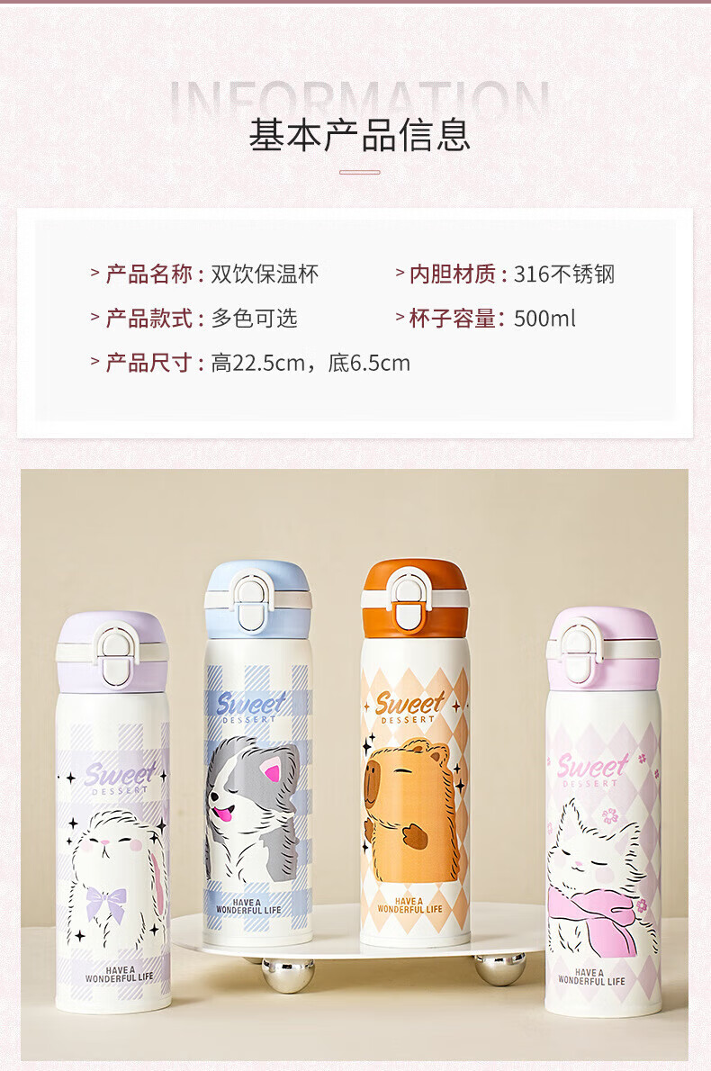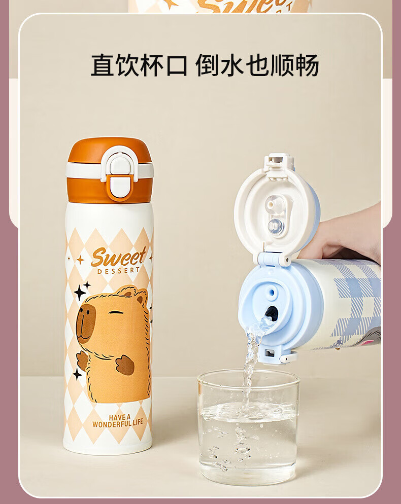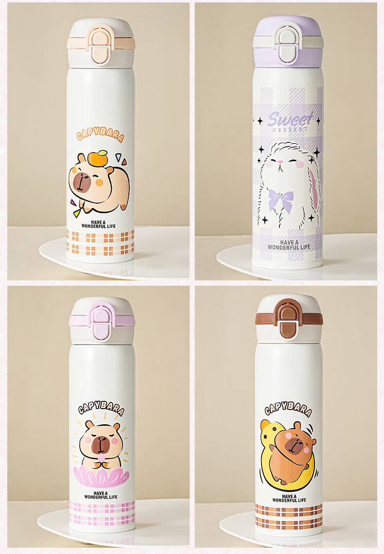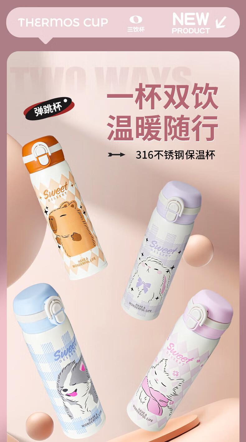 辛八客2025新款卡通316保温杯便携弹盖高颜值学生水杯 甜心蓝 500ml