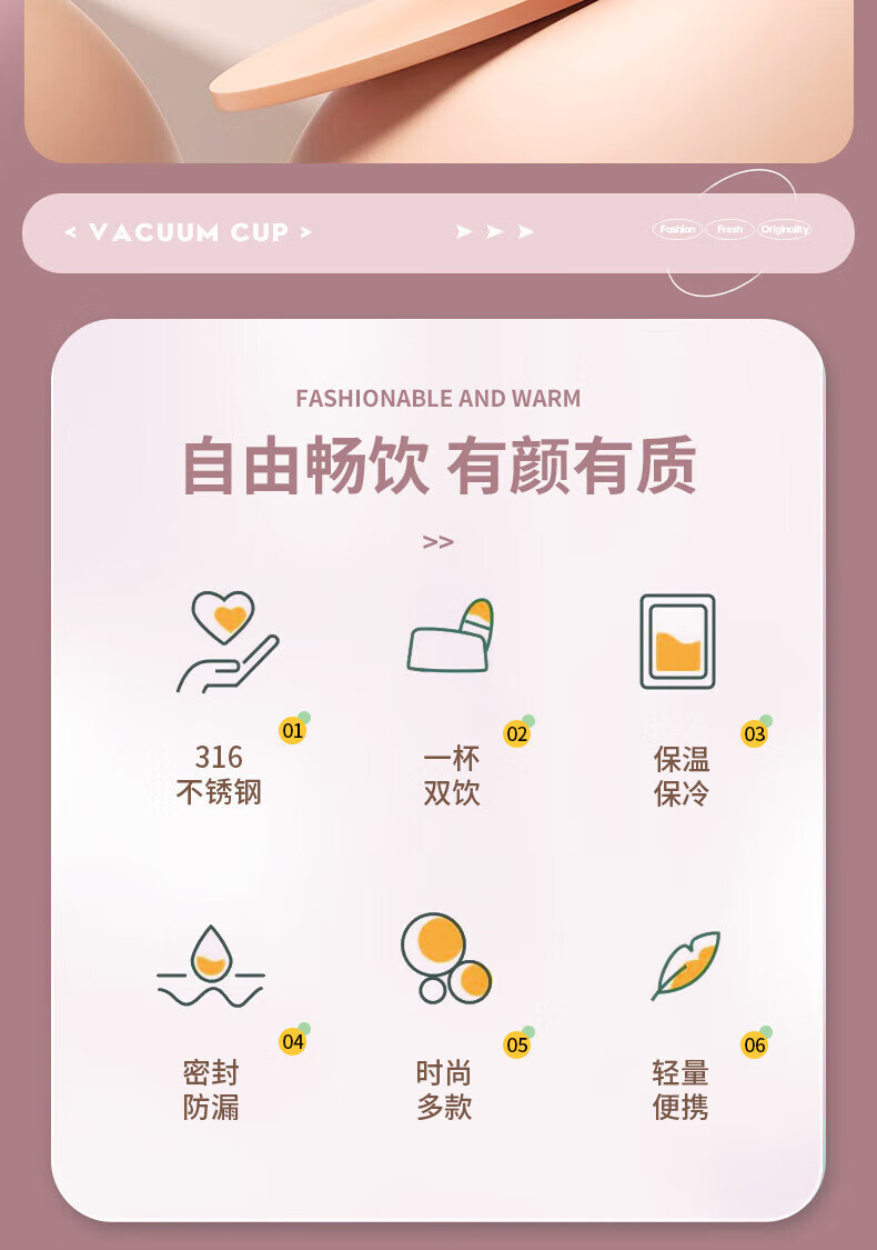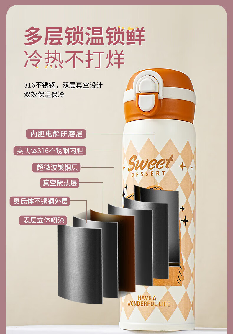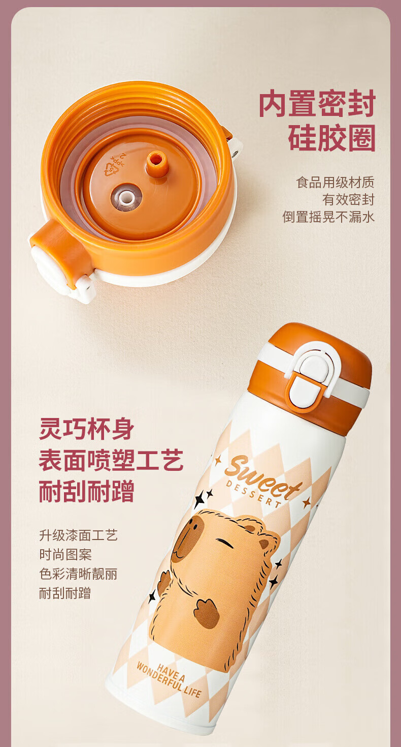 辛八客2025新款卡通316保温杯便携弹盖高颜值学生水杯 甜心蓝 500ml