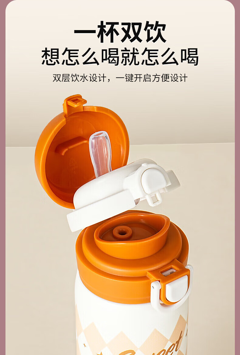 皇家洛克 ROYALLOCKE儿童保温杯智能大容量水杯子吸管316不锈钢便携小学生幼儿园水壶 【双饮盖+便携杯套】小熊猫500ML
