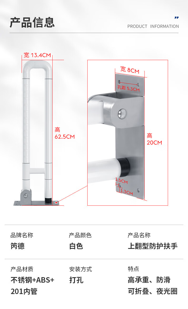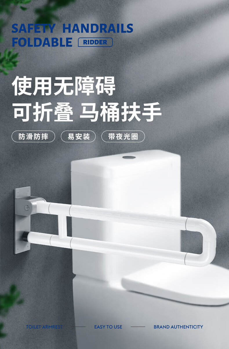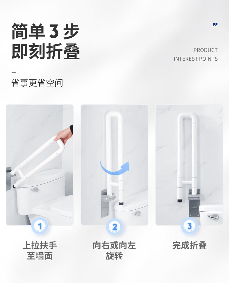 GuGuGo【德国】卫生间马桶扶手老人安全扶手浴室可折叠助力架老年扶手 可折叠款-带夜光白色