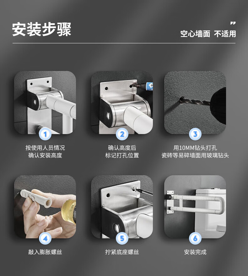 GuGuGo【德国】马桶扶手卫生间扶手老人安全防摔坐便扶手厕所起身器折叠 【可上下折叠】马桶扶手 防滑抗压丨加厚不锈钢