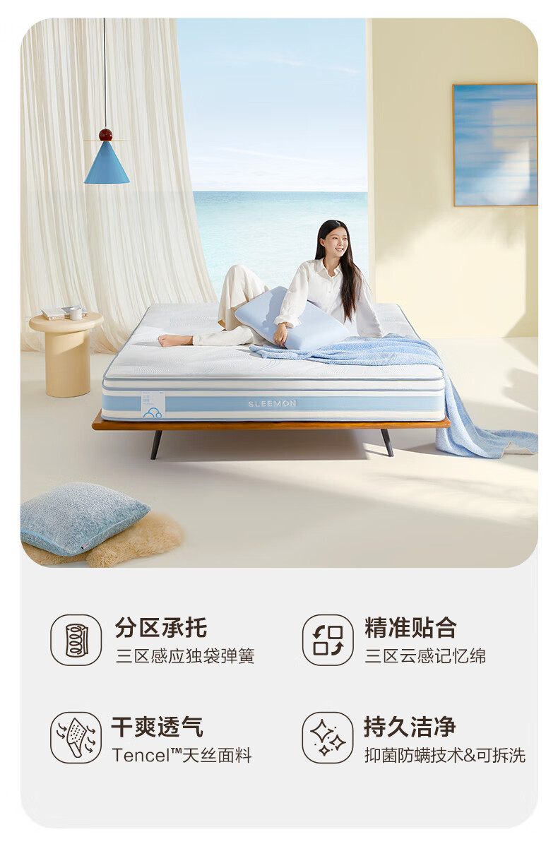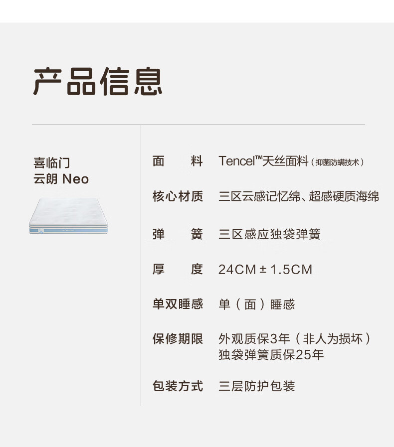喜临门云朗Neo双人记忆棉海绵床垫三区独袋弹簧可拆洗床垫席梦思 云朗Neo-厚24cm【可拆洗/分区设计】 1.8*2米