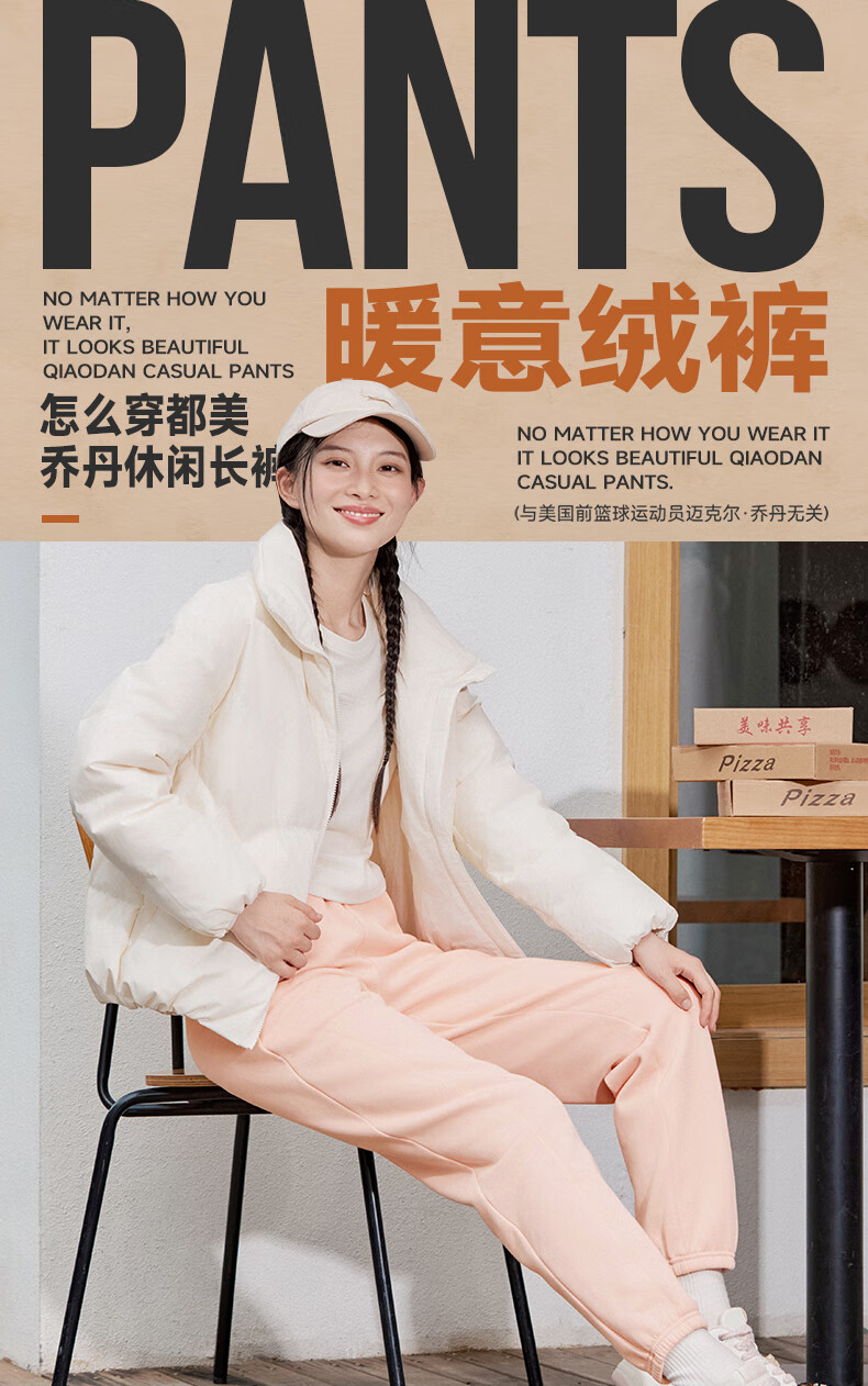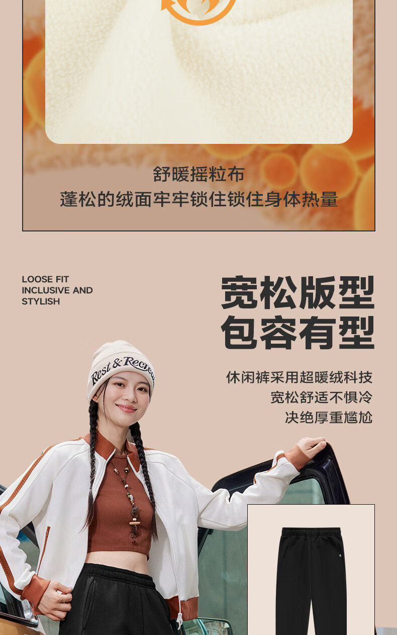 乔丹加绒裤子女士针织秋冬季休闲裤女超暖绒运动长裤直筒裤卫裤女