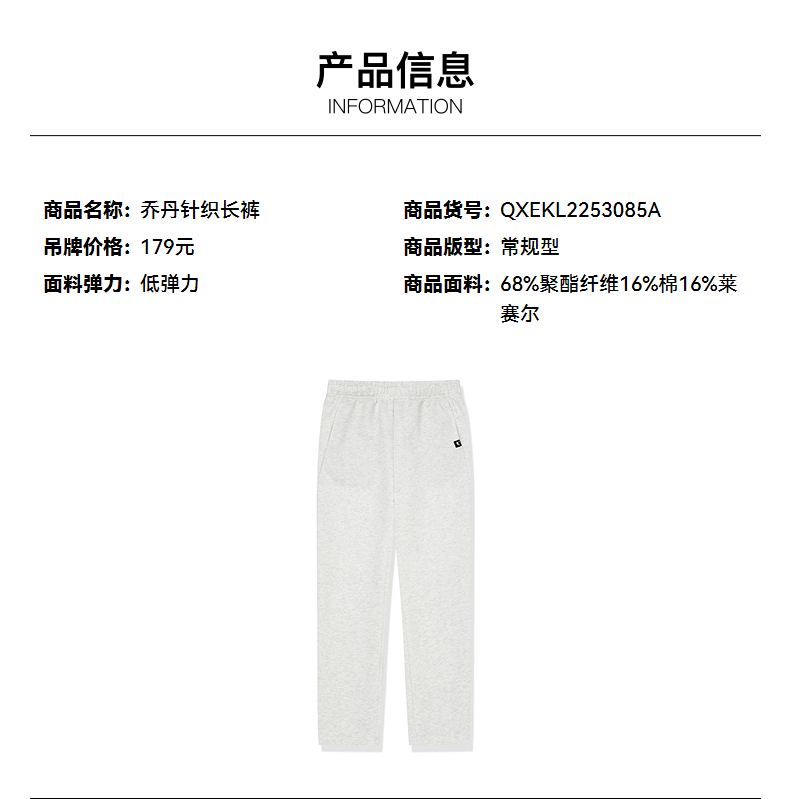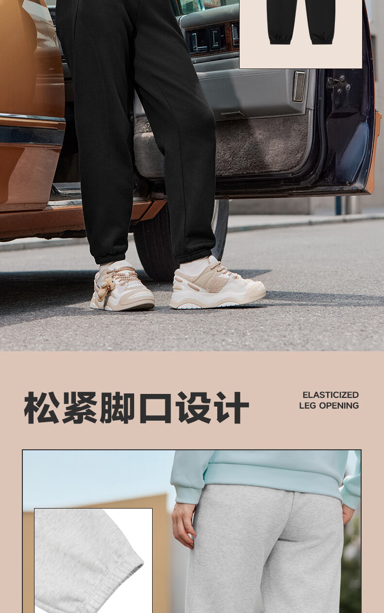鸿星尔克运动裤男针织长裤秋季新品舒适透气舒暖绒加厚直筒休闲裤子男裤
