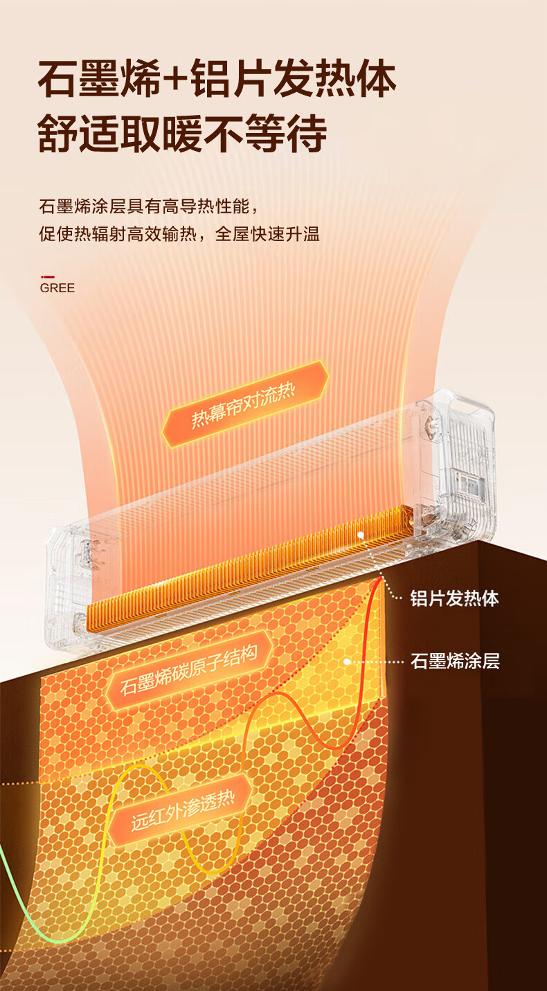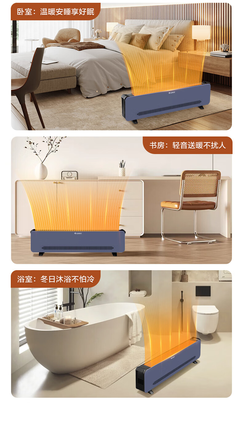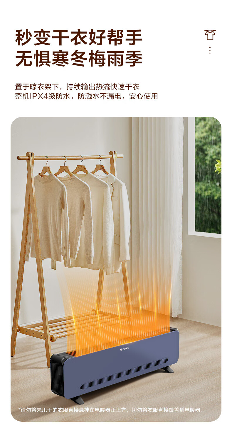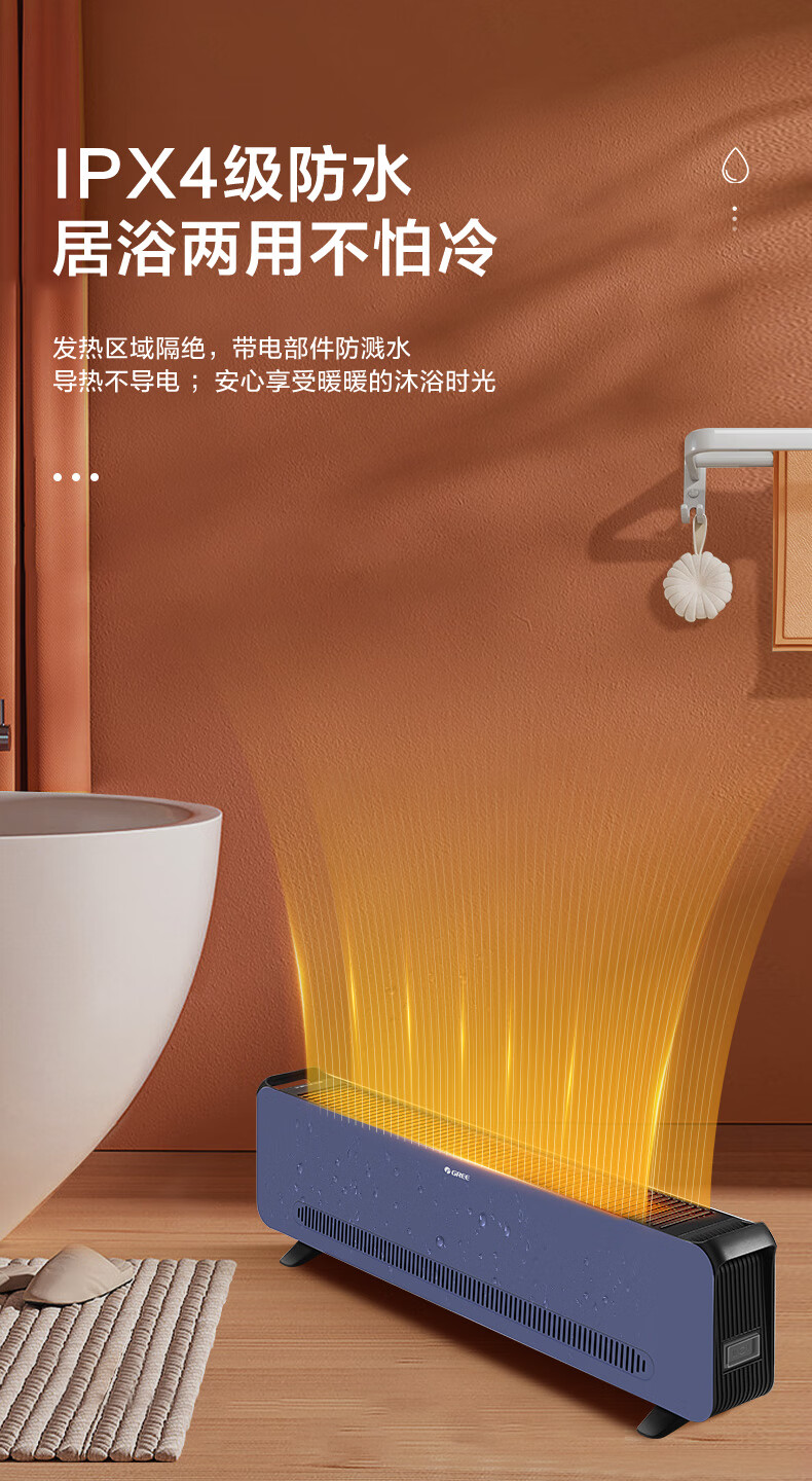 格力(GREE)电暖器家用石墨烯踢脚线取暖器 浴室防水电暖气片客厅卧室移动地暖机居浴两用烘干衣电热器暖风机 NJF-X9020