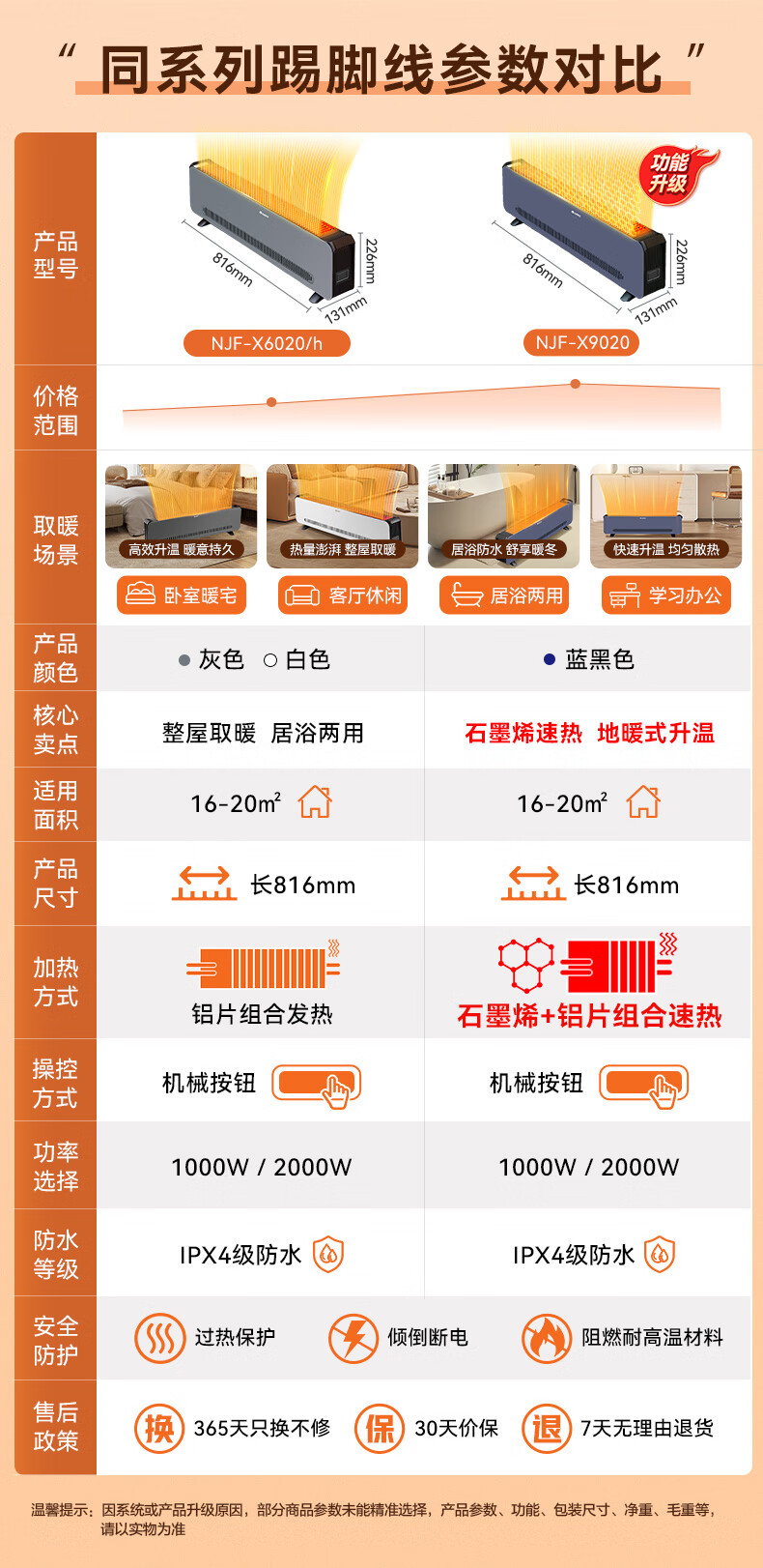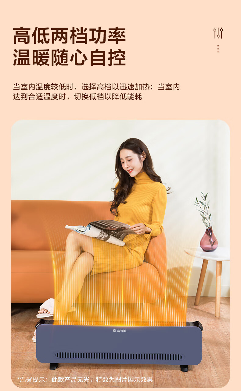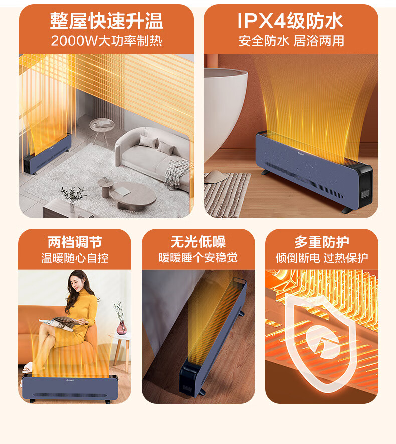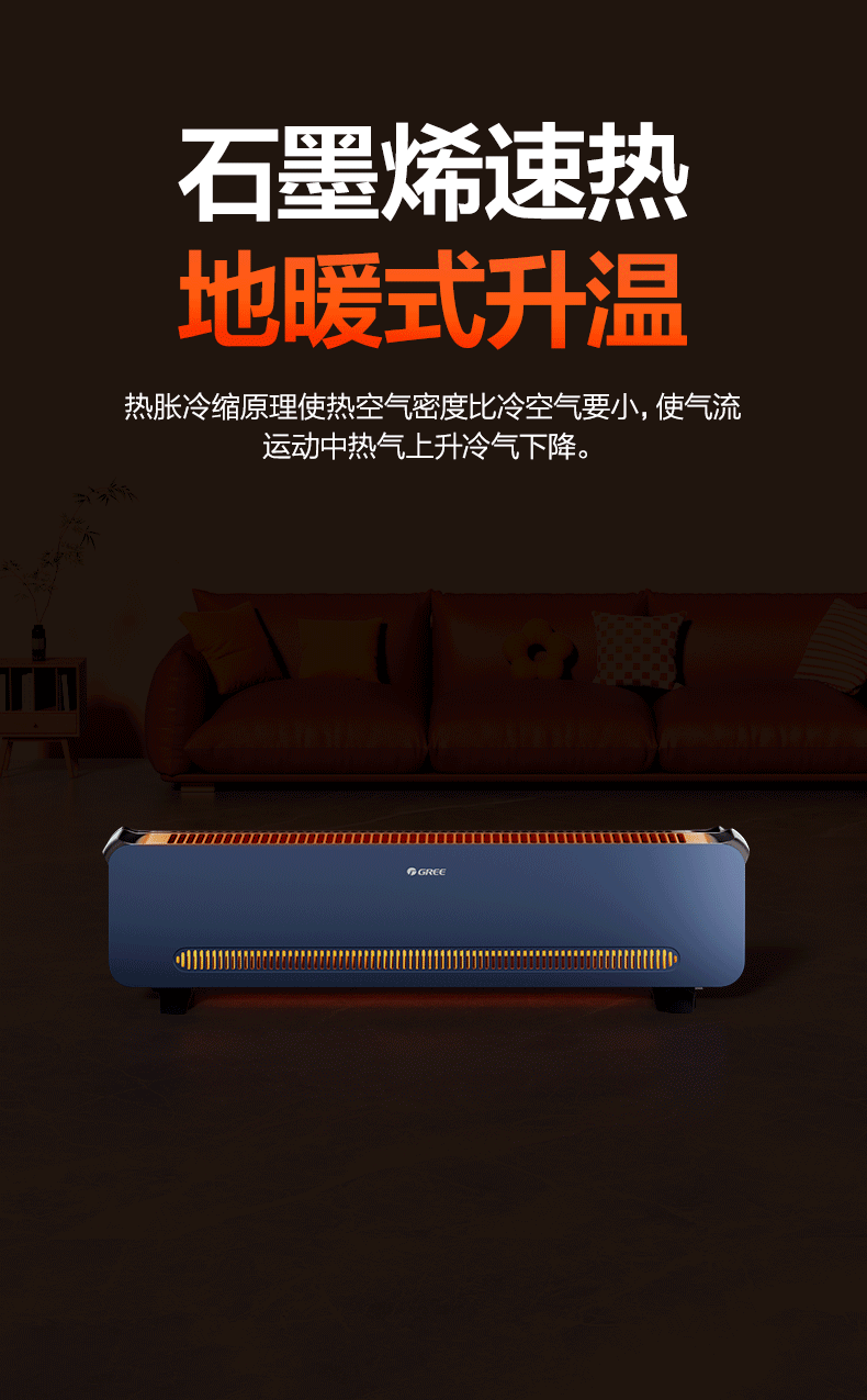 格力(GREE)电暖器家用石墨烯踢脚线取暖器 浴室防水电暖气片客厅卧室移动地暖机居浴两用烘干衣电热器暖风机 NJF-X9020