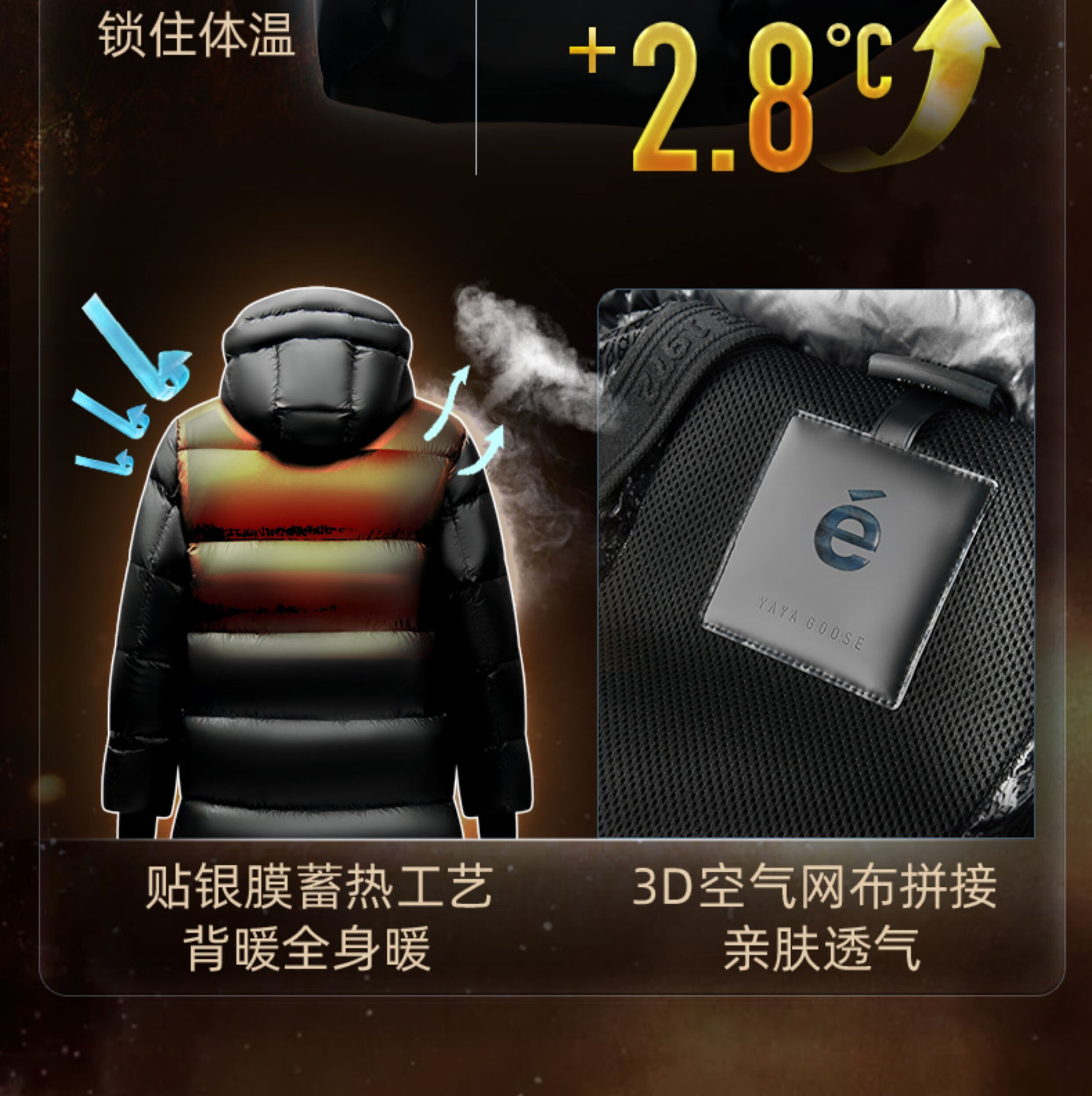 鸭鸭(YAYA)【王一博同款】户外冲锋衣羽绒服女冬季防寒运动三合一情侣厚外套 青光黑色 L (175)