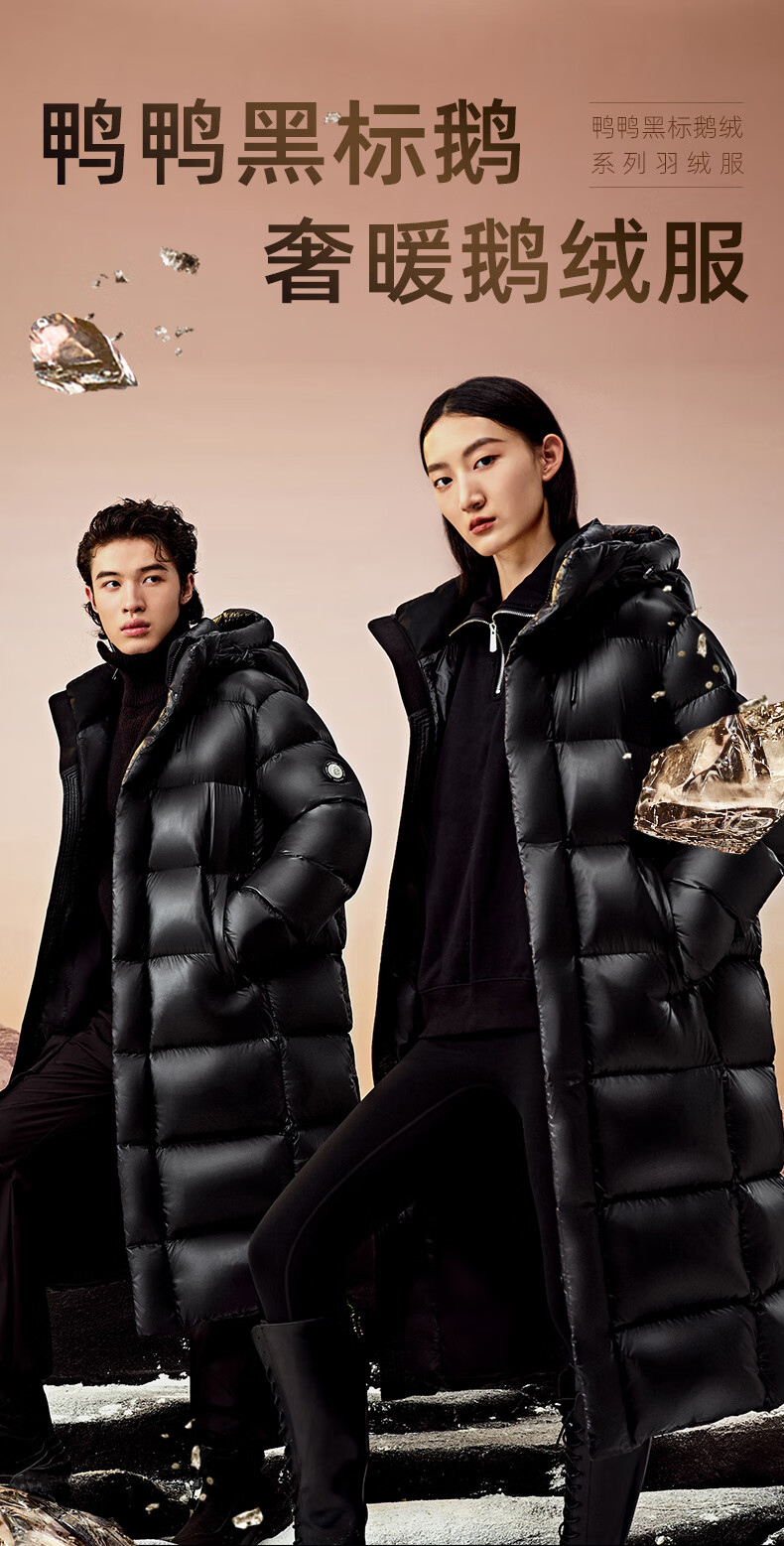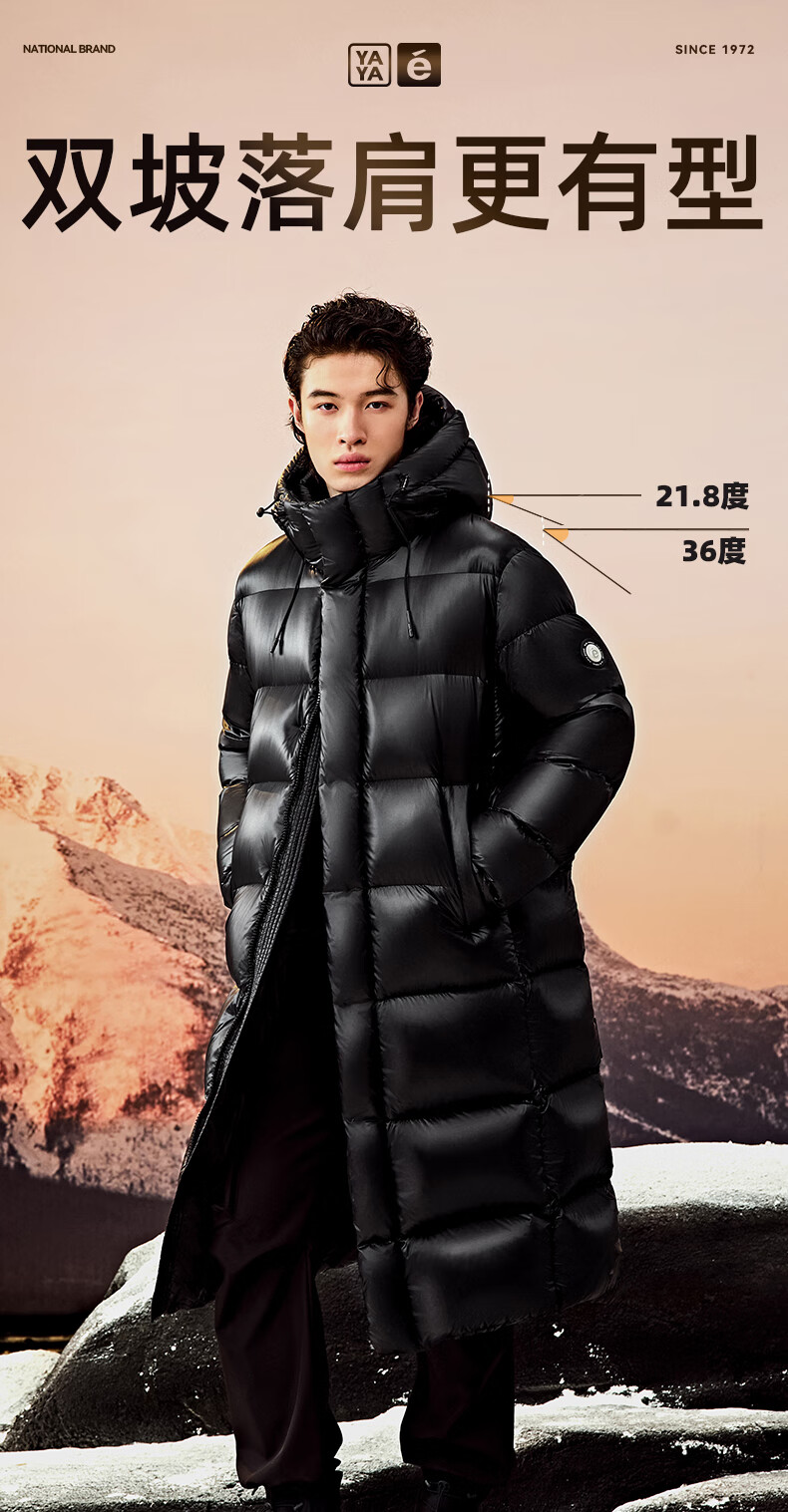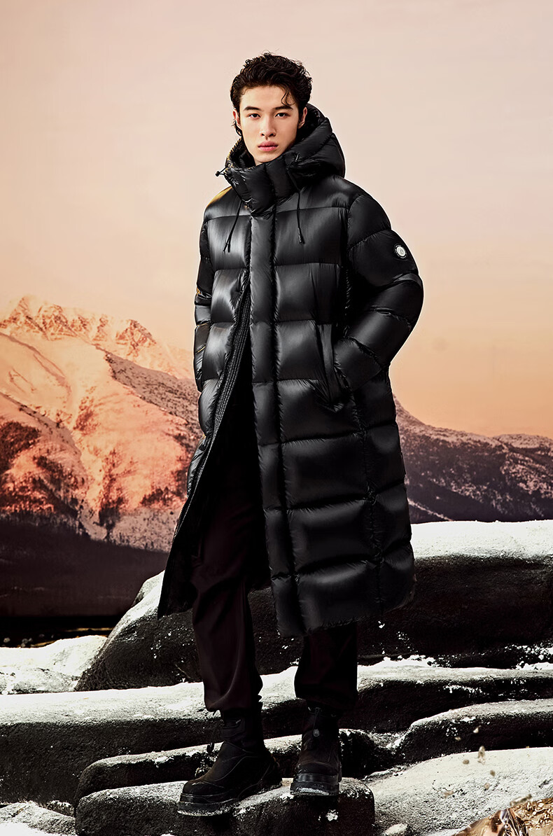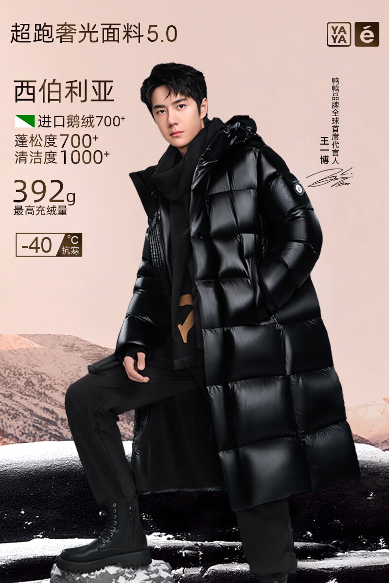 鸭鸭(YAYA)王一博黑标鹅系列鹅绒羽绒服男女冬季新款过膝长款极寒加厚外套 黑色 (西伯利亚鹅绒) S /165【鹅绒充323克】