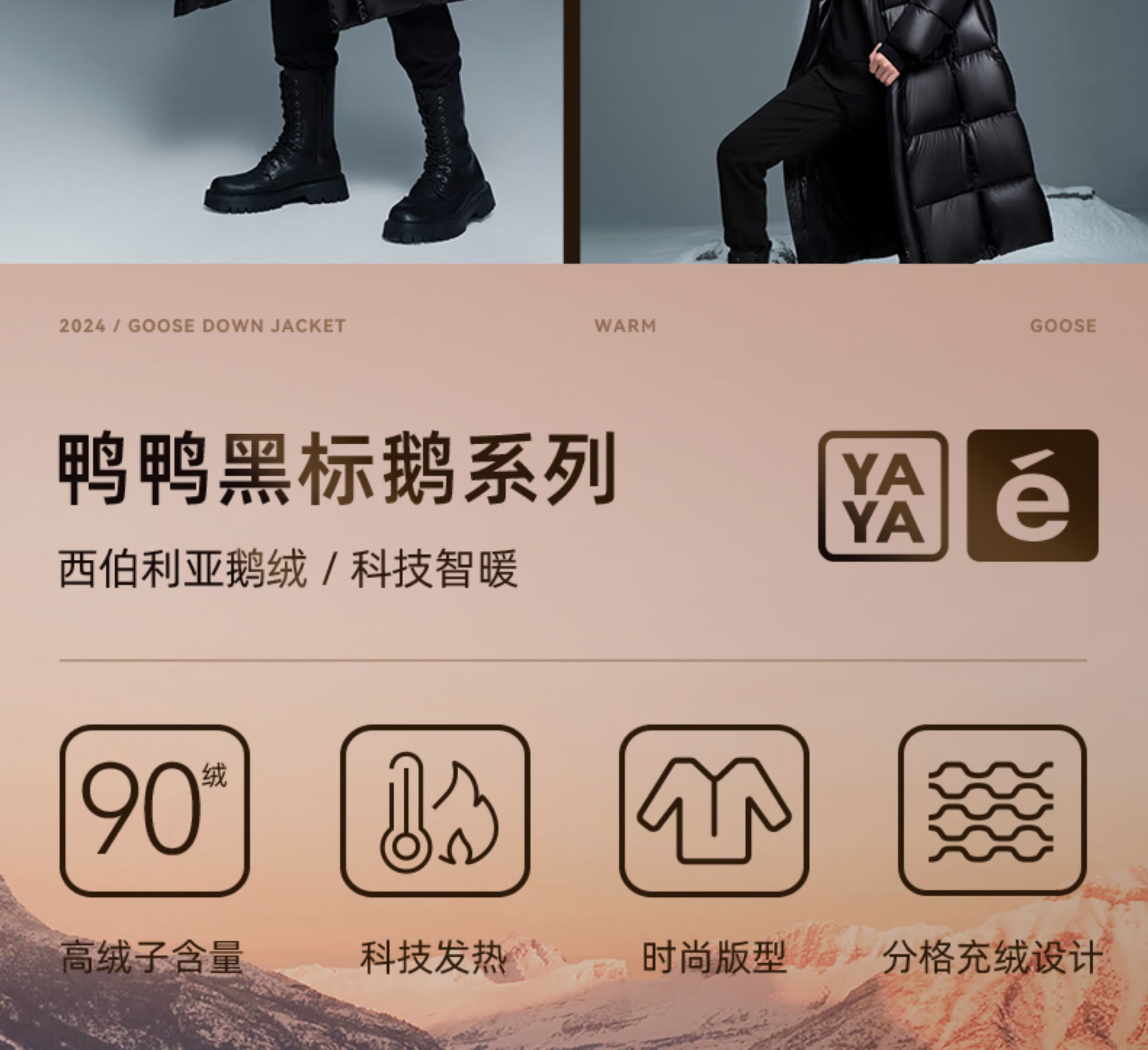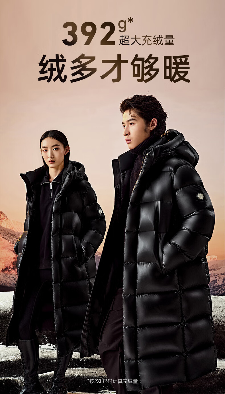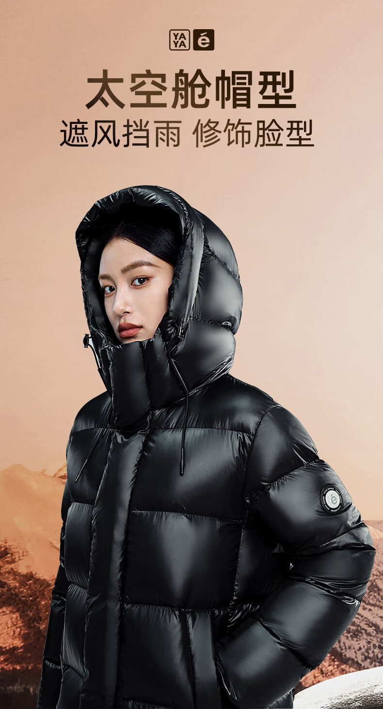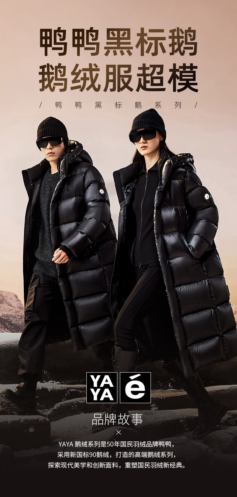 鸭鸭(YAYA)王一博黑标鹅系列鹅绒羽绒服男女冬季新款过膝长款极寒加厚外套 黑色 (西伯利亚鹅绒) S /165【鹅绒充323克】
