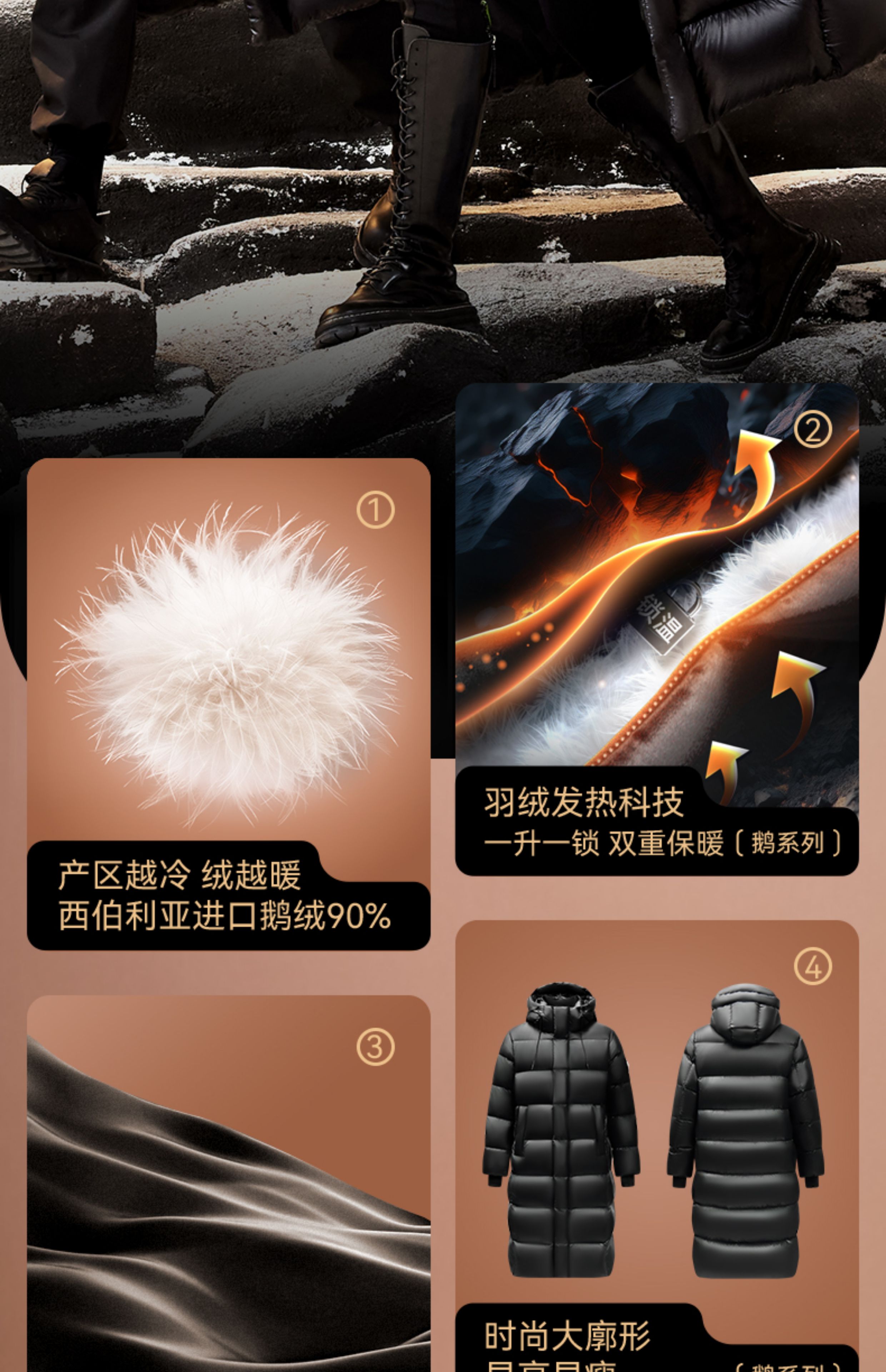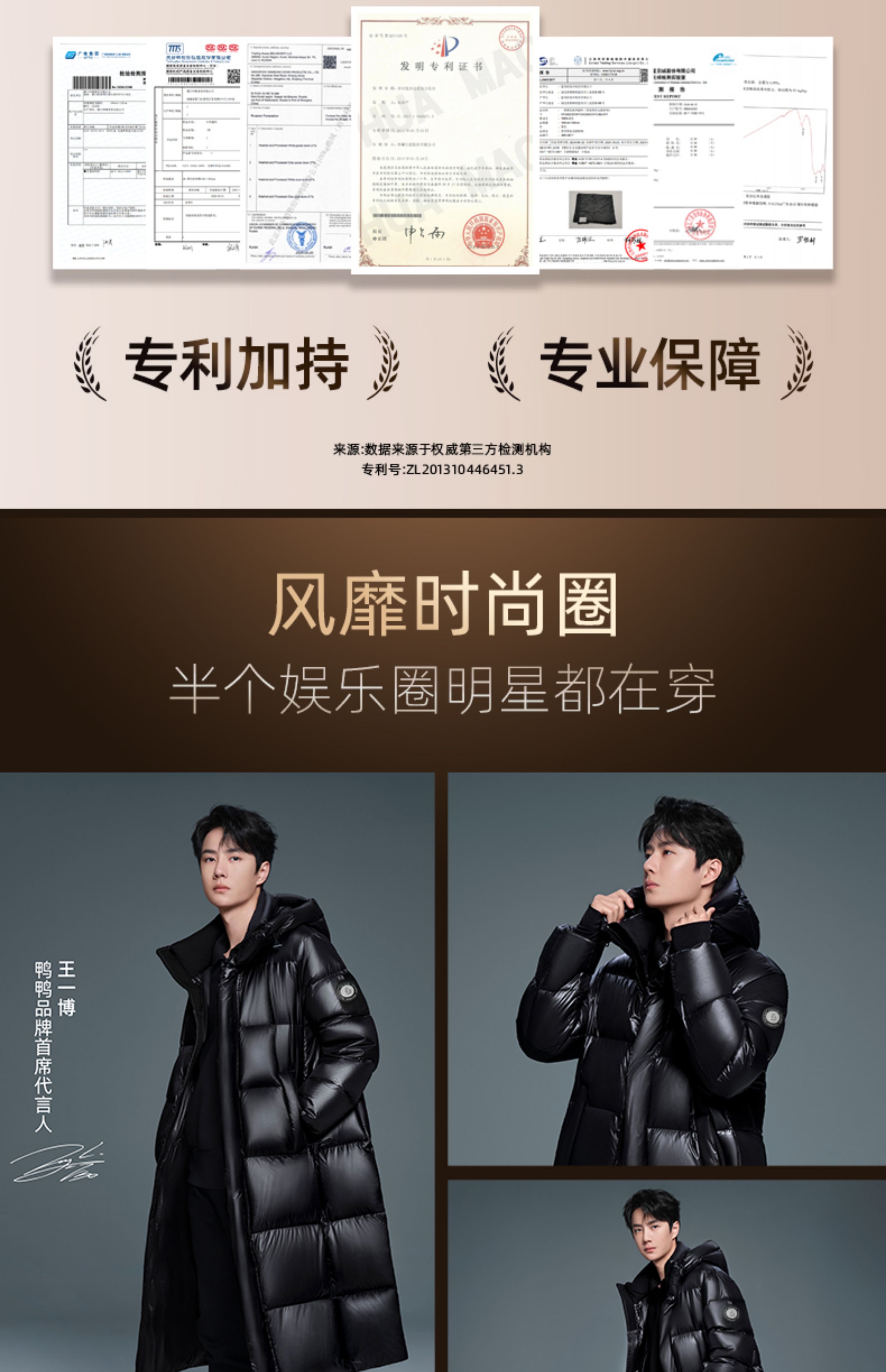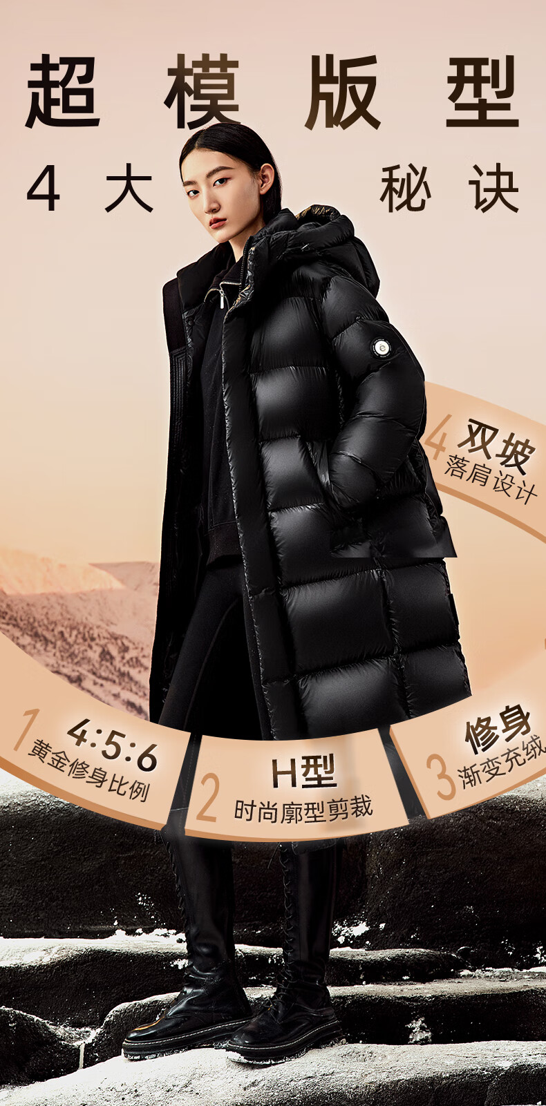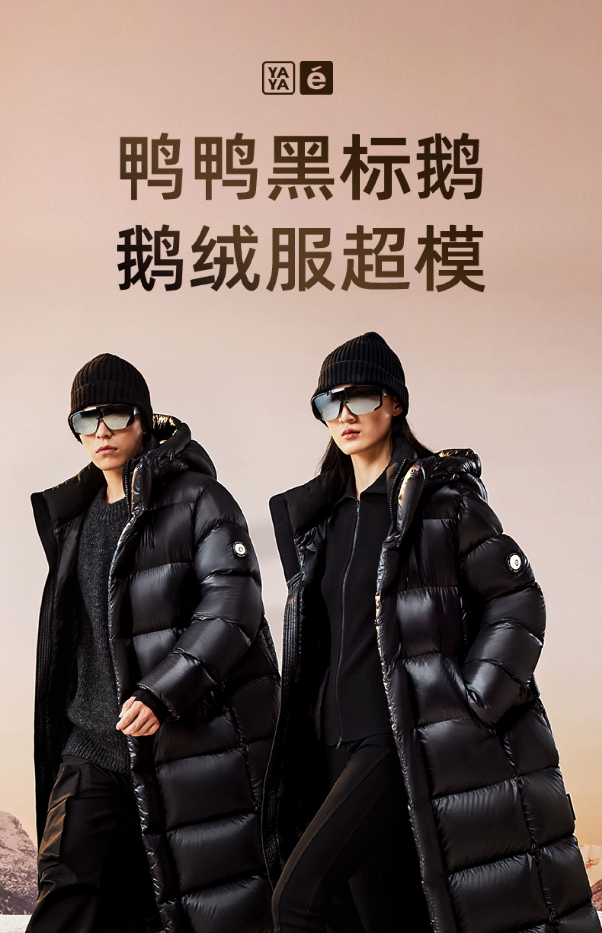 鸭鸭(YAYA)王一博黑标鹅系列鹅绒羽绒服男女冬季新款过膝长款极寒加厚外套 黑色 (西伯利亚鹅绒) S /165【鹅绒充323克】