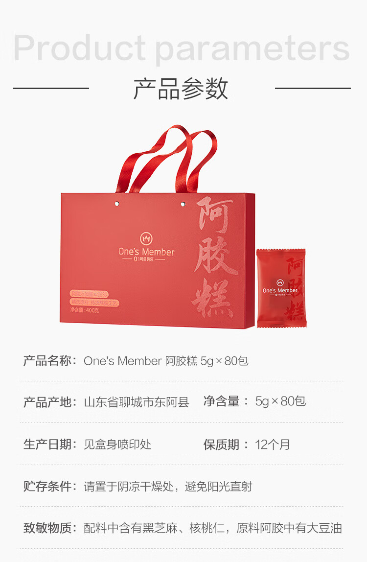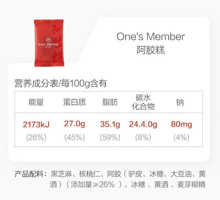 One's Member26%阿胶糕400g 补气血 女性滋补品 送礼送父母长辈送老婆