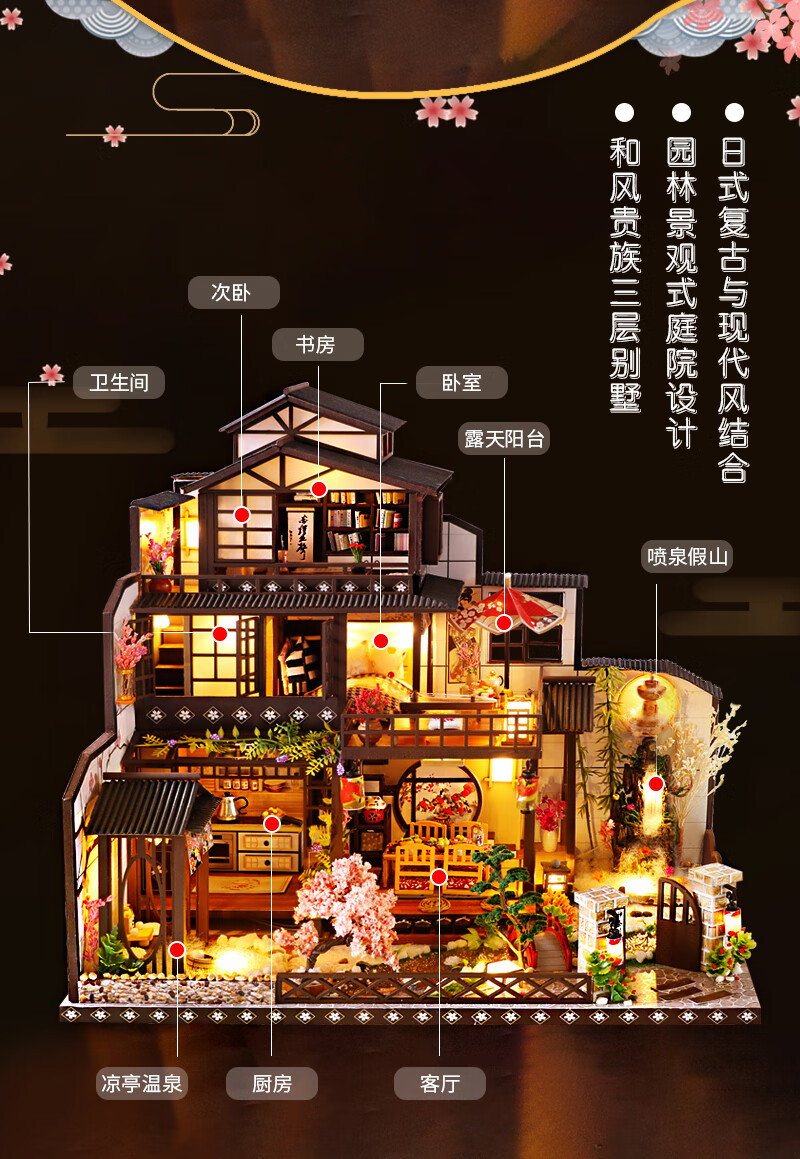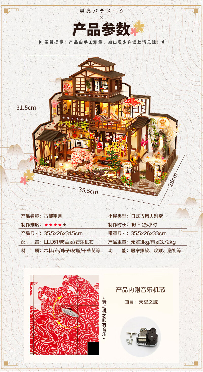 我の屋日式DIY小屋古都望月手工制作大型房子别墅玩具八音盒生日礼物女