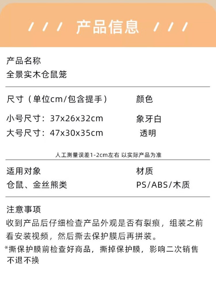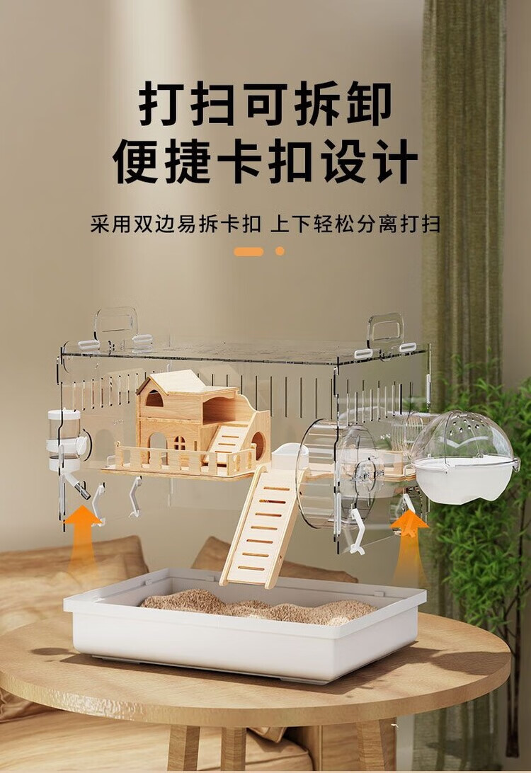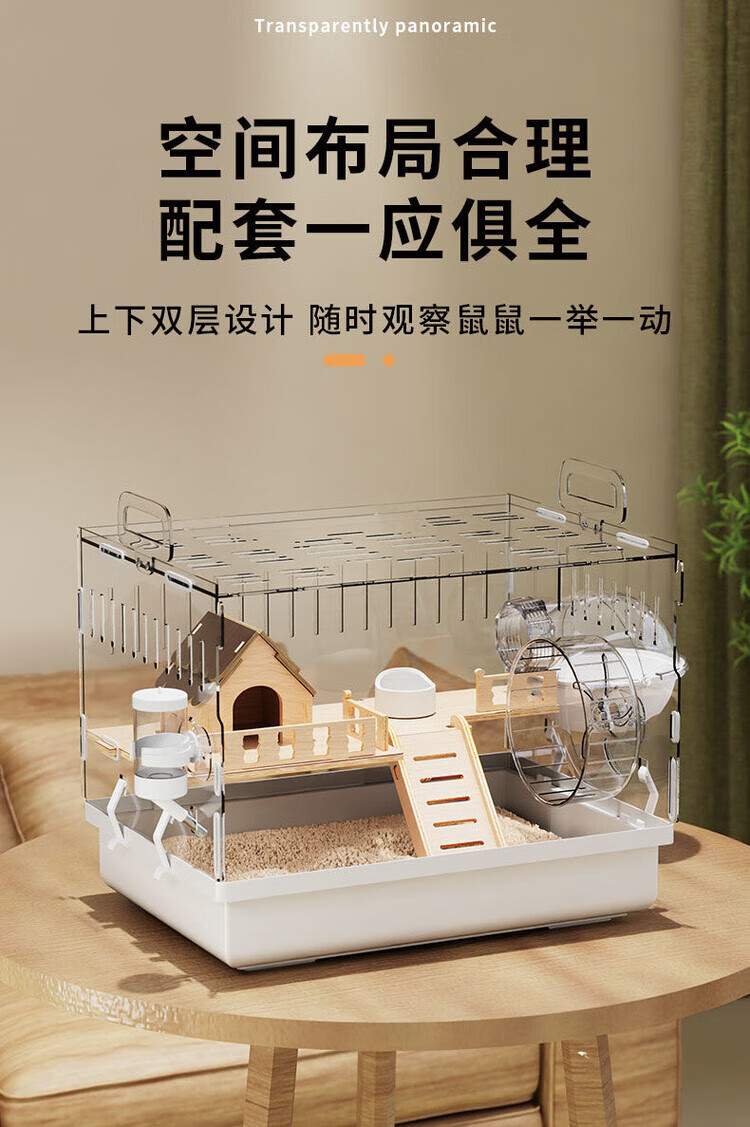 OYKTN小仓鼠笼子豪华别墅金丝熊专用超大亚克力透明饲养箱便宜大的小窝 仓鼠笼空笼