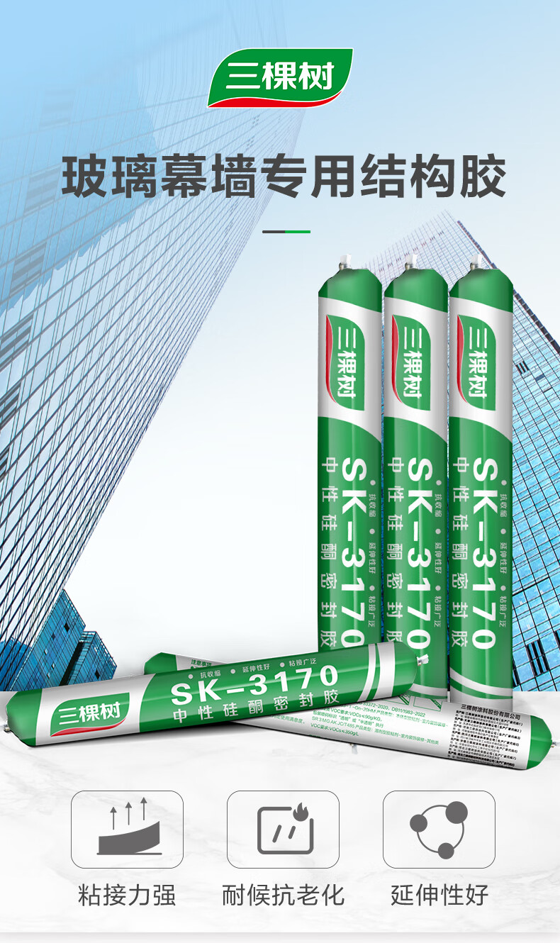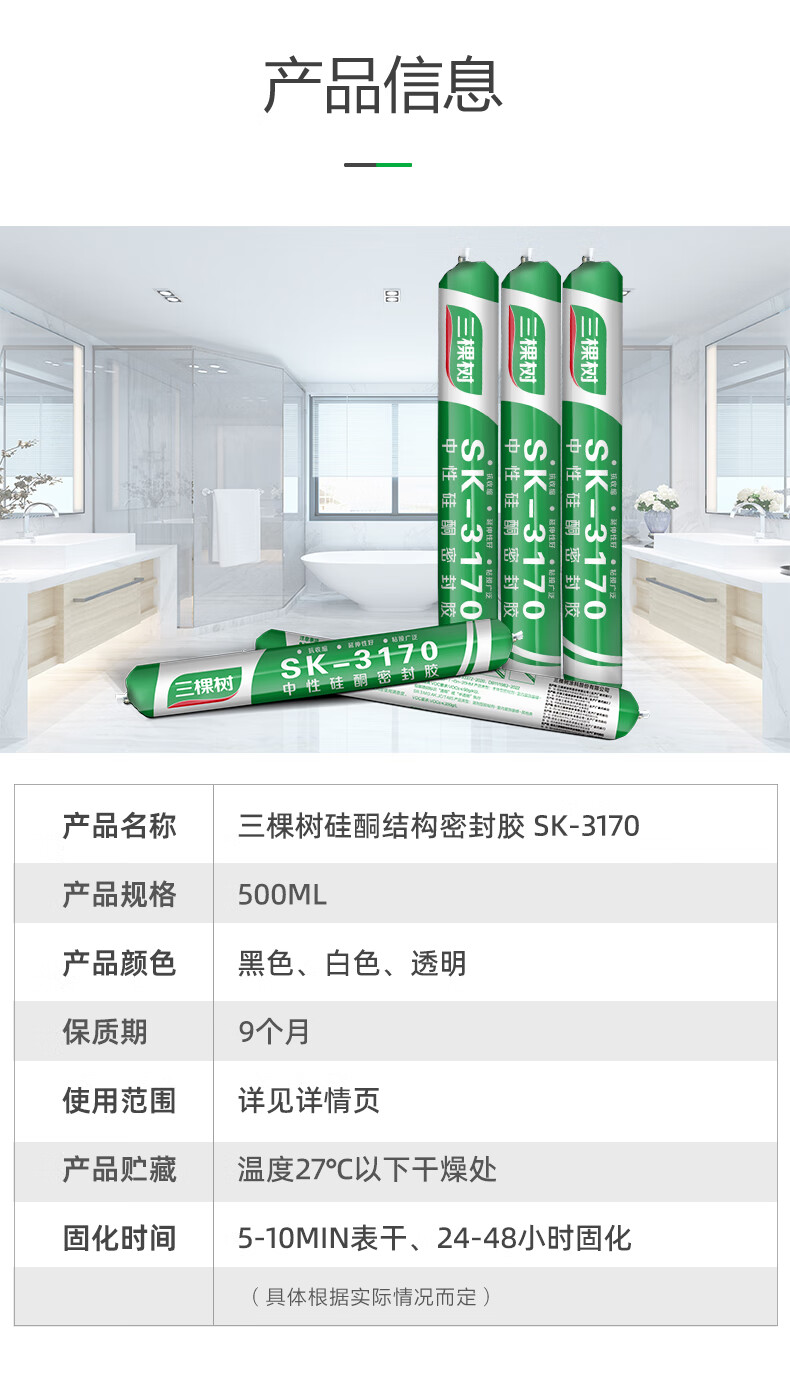 三棵树漆(SKSHU)防水结构胶强力门窗收边胶中性硅酮密封胶防霉耐候玻璃胶 黑色密封胶500ML【无工具】