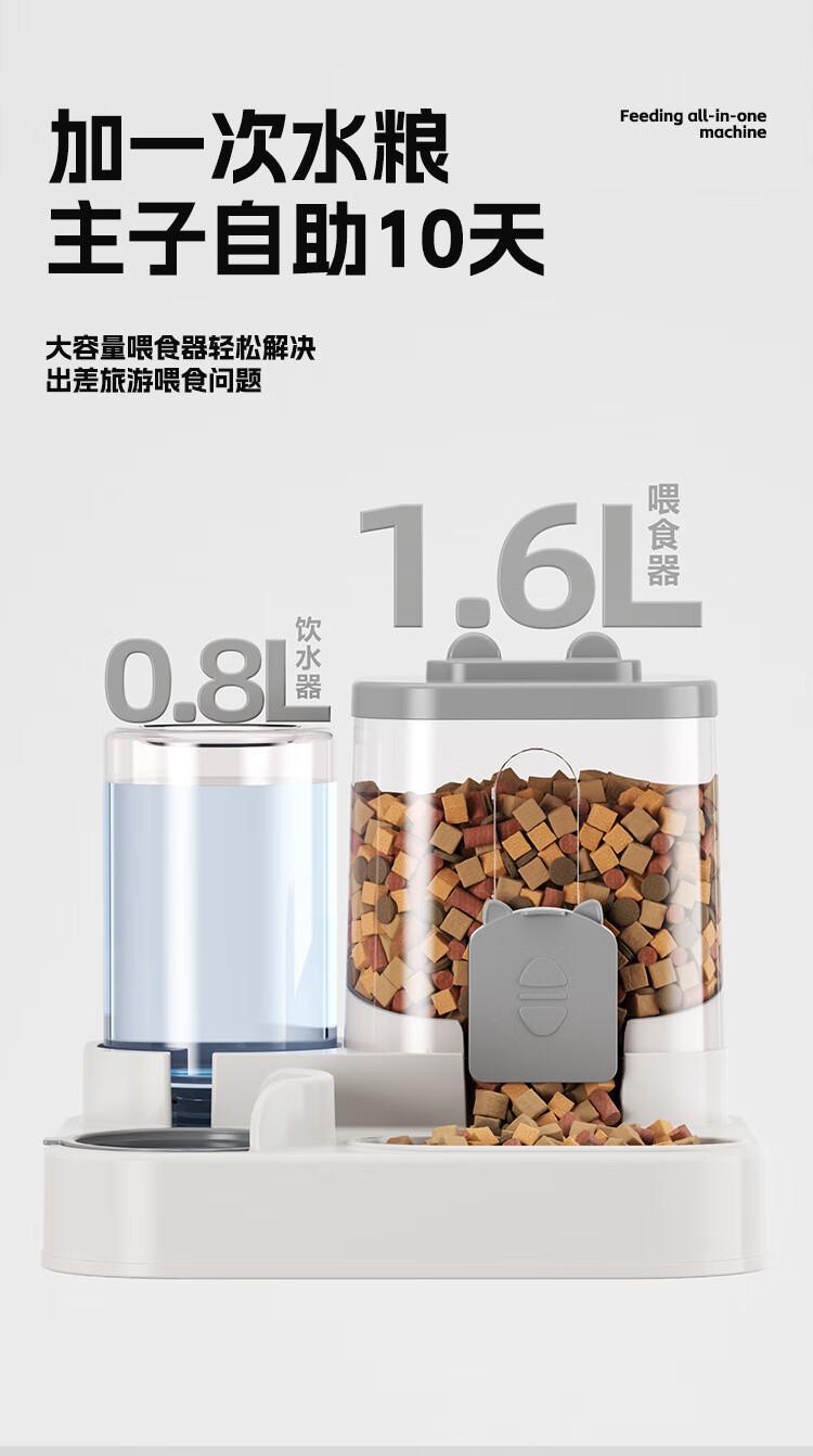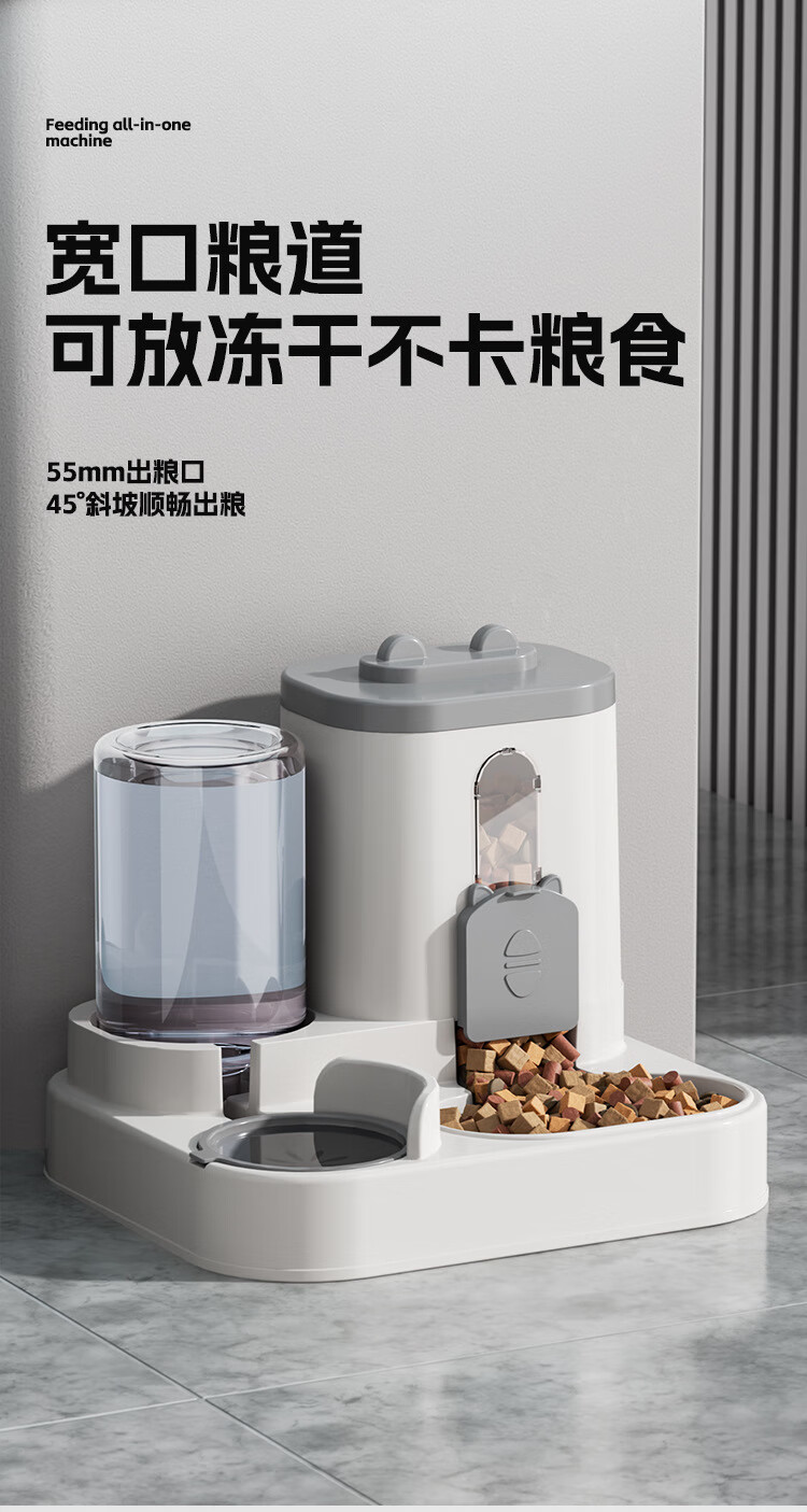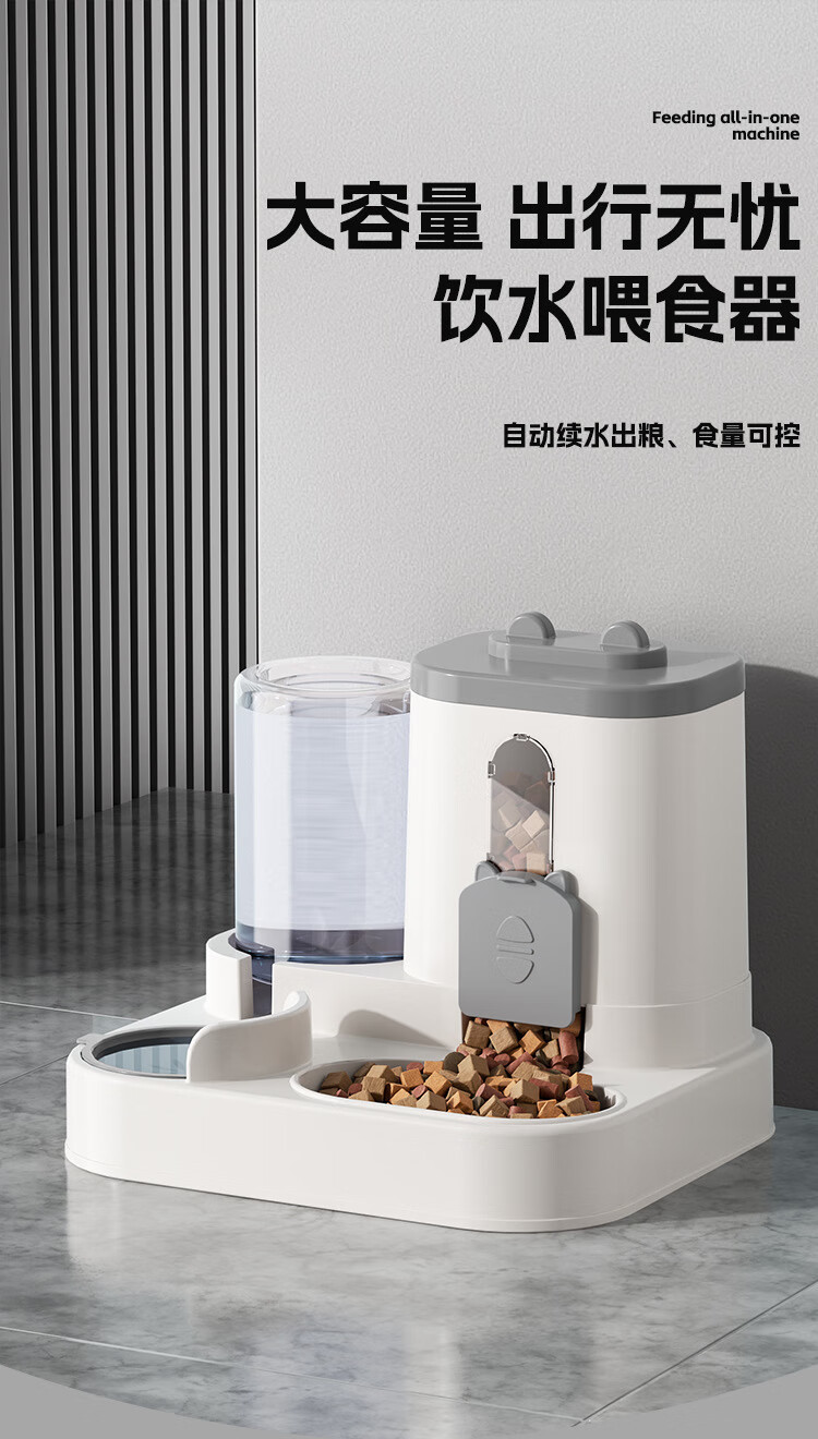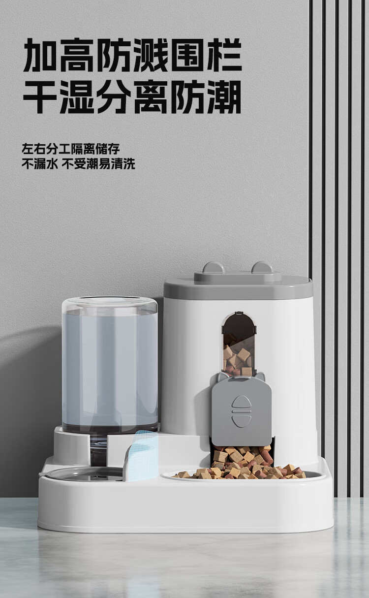 宠街坊宠物自动喂食器猫碗狗碗猫咪饮水机喝水吃饭一体狗盆猫盆灰色