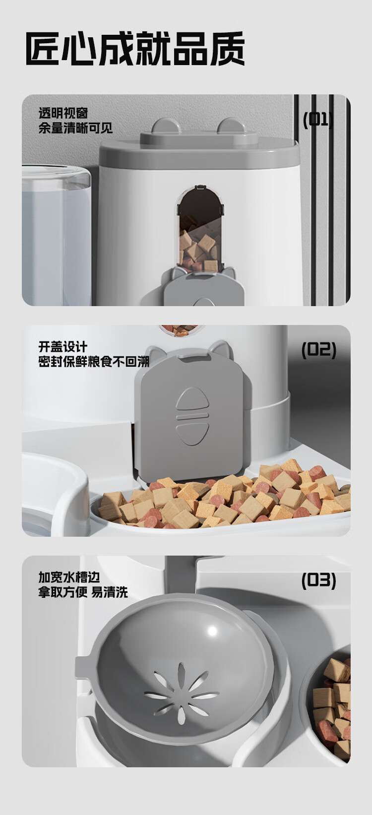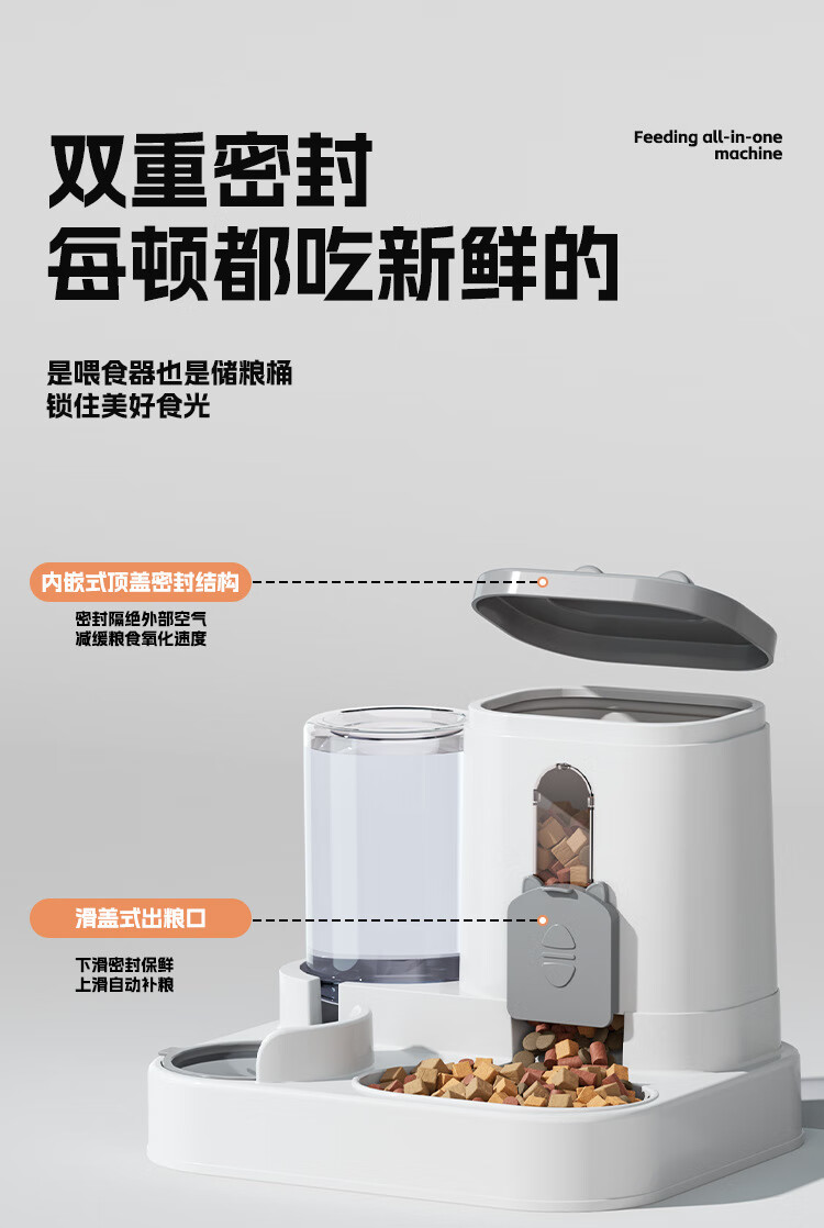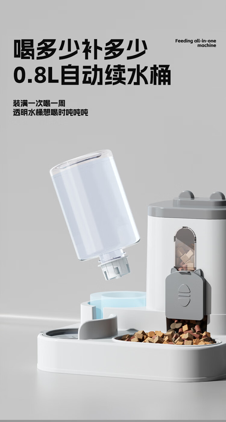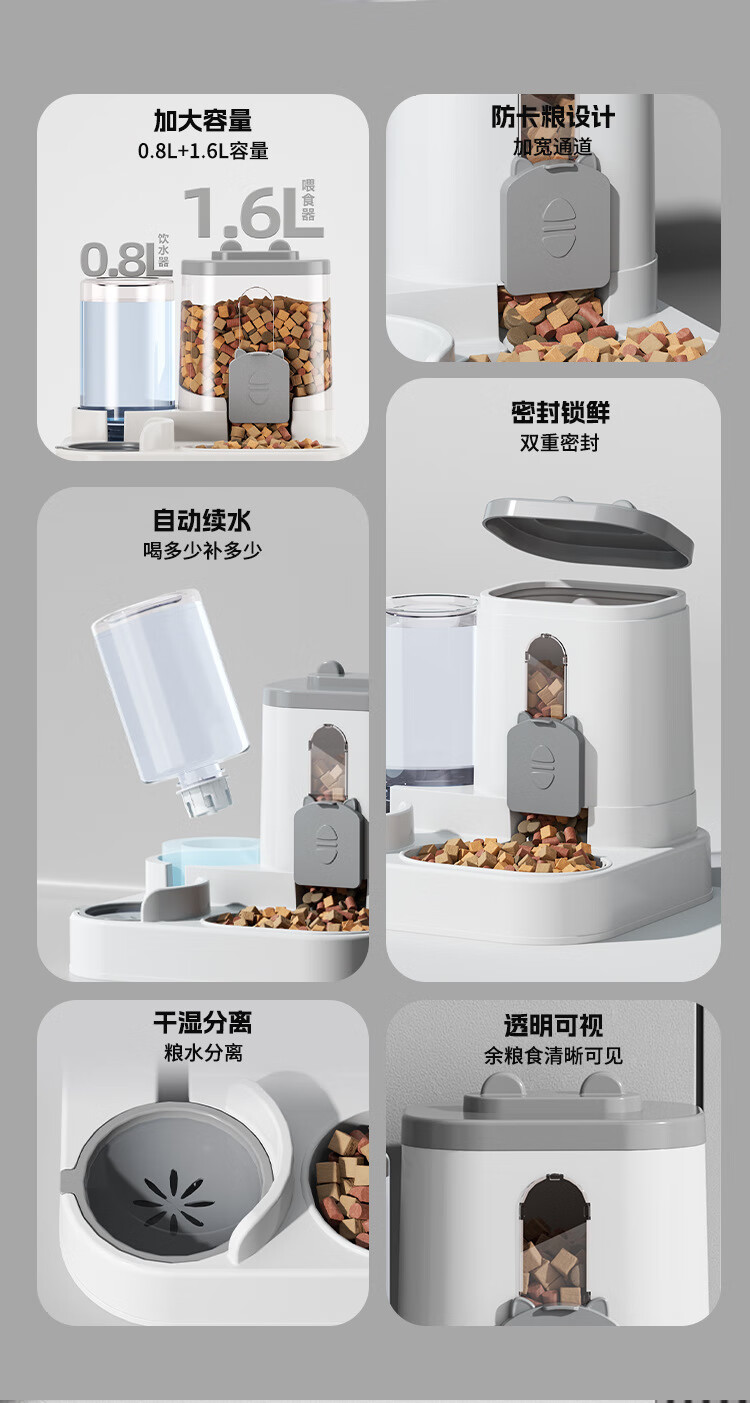 宠街坊宠物自动喂食器猫碗狗碗猫咪饮水机喝水吃饭一体狗盆猫盆灰色