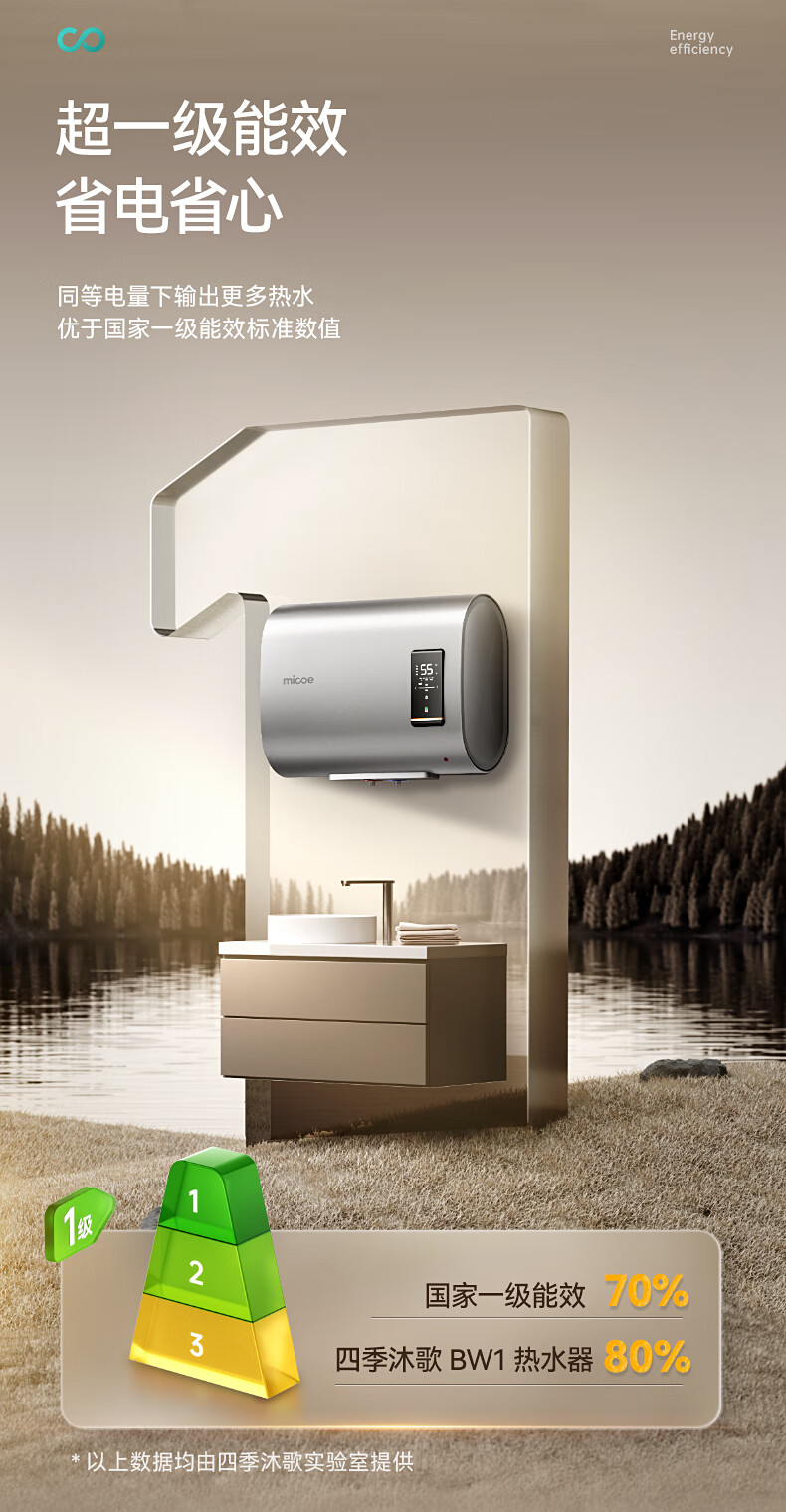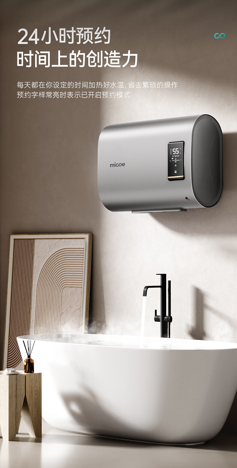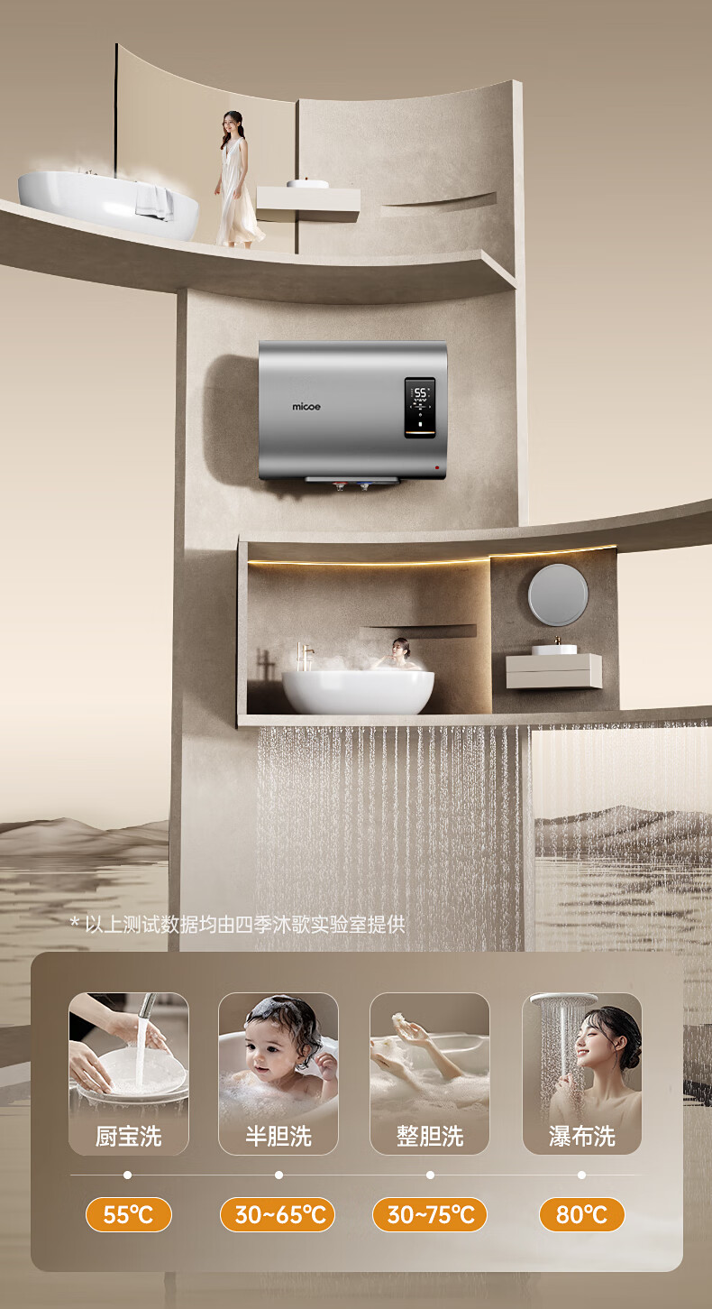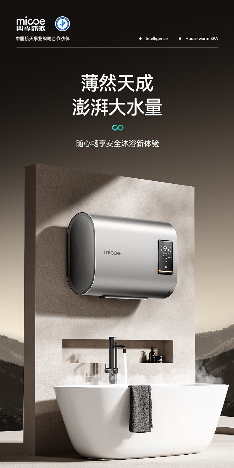 四季沐歌(MICOE)电热水器扁桶超薄双胆一级能效节能3000W家用速热恒温预约遥控免换镁棒双防电墙净滤防冻上门安装 60L 3000W LED触控大屏