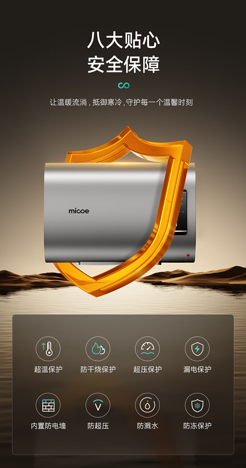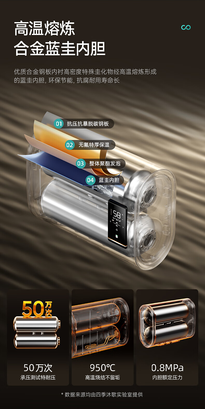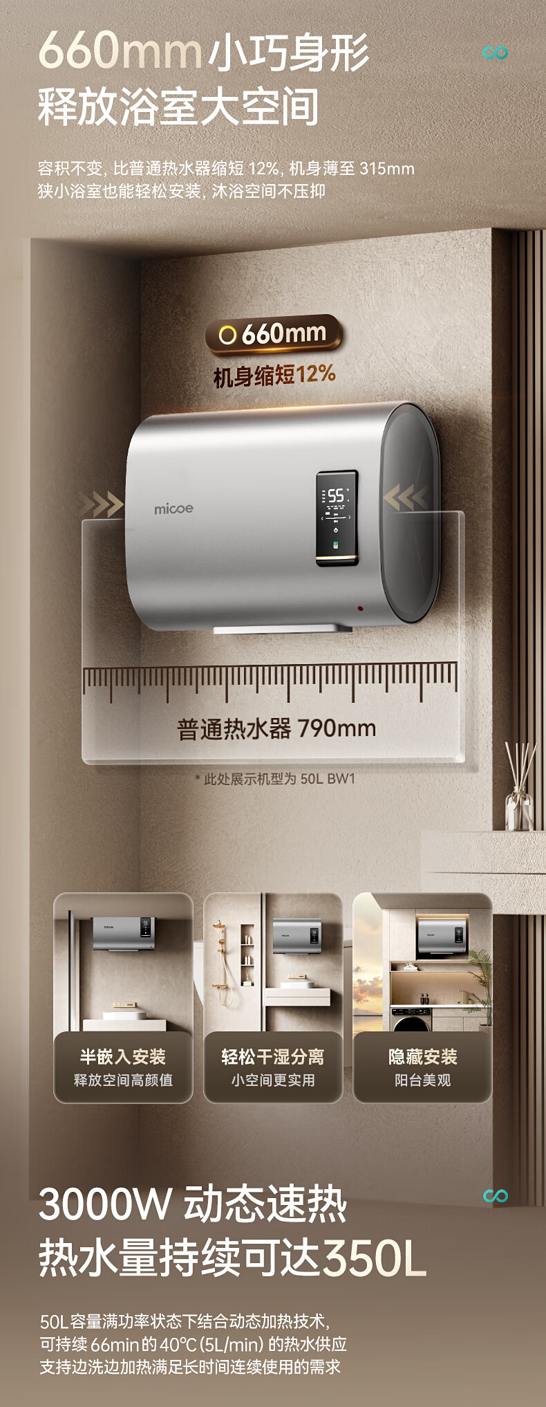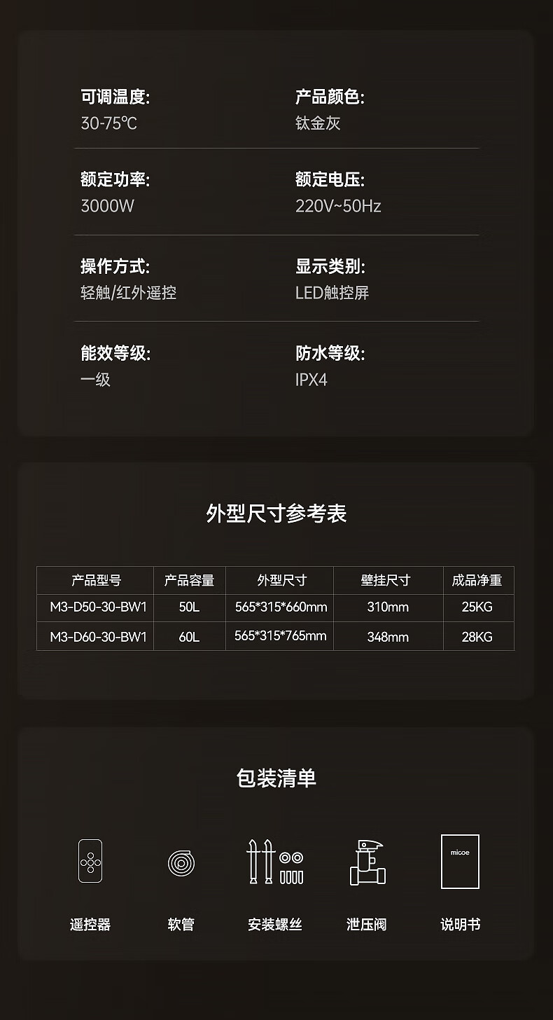 四季沐歌(MICOE)电热水器扁桶超薄双胆一级能效节能3000W家用速热恒温预约遥控免换镁棒双防电墙净滤防冻上门安装 60L 3000W LED触控大屏