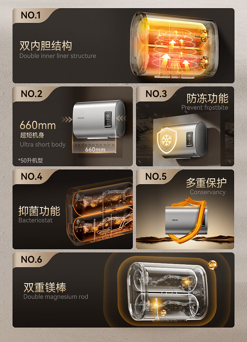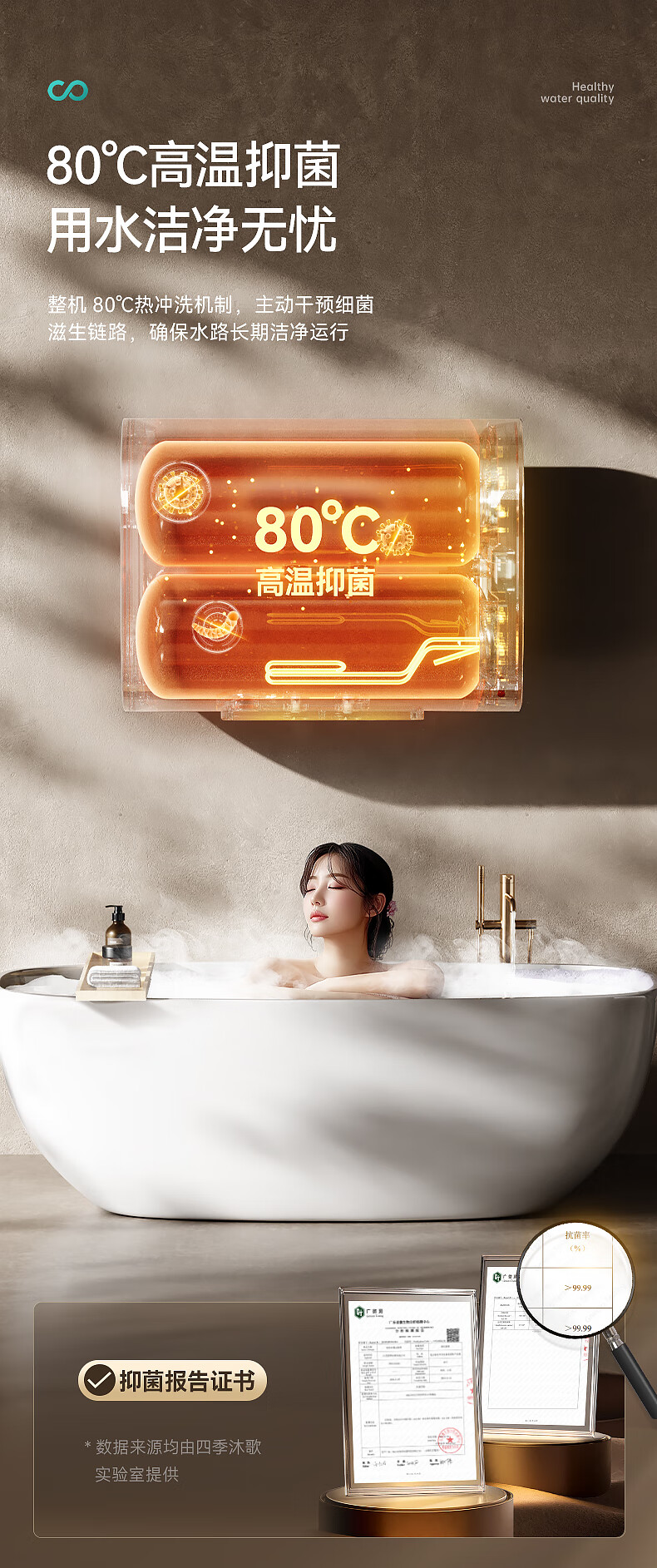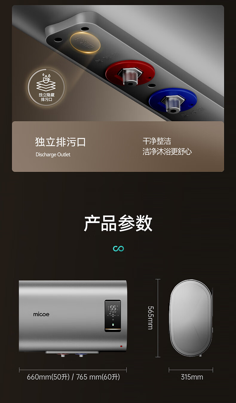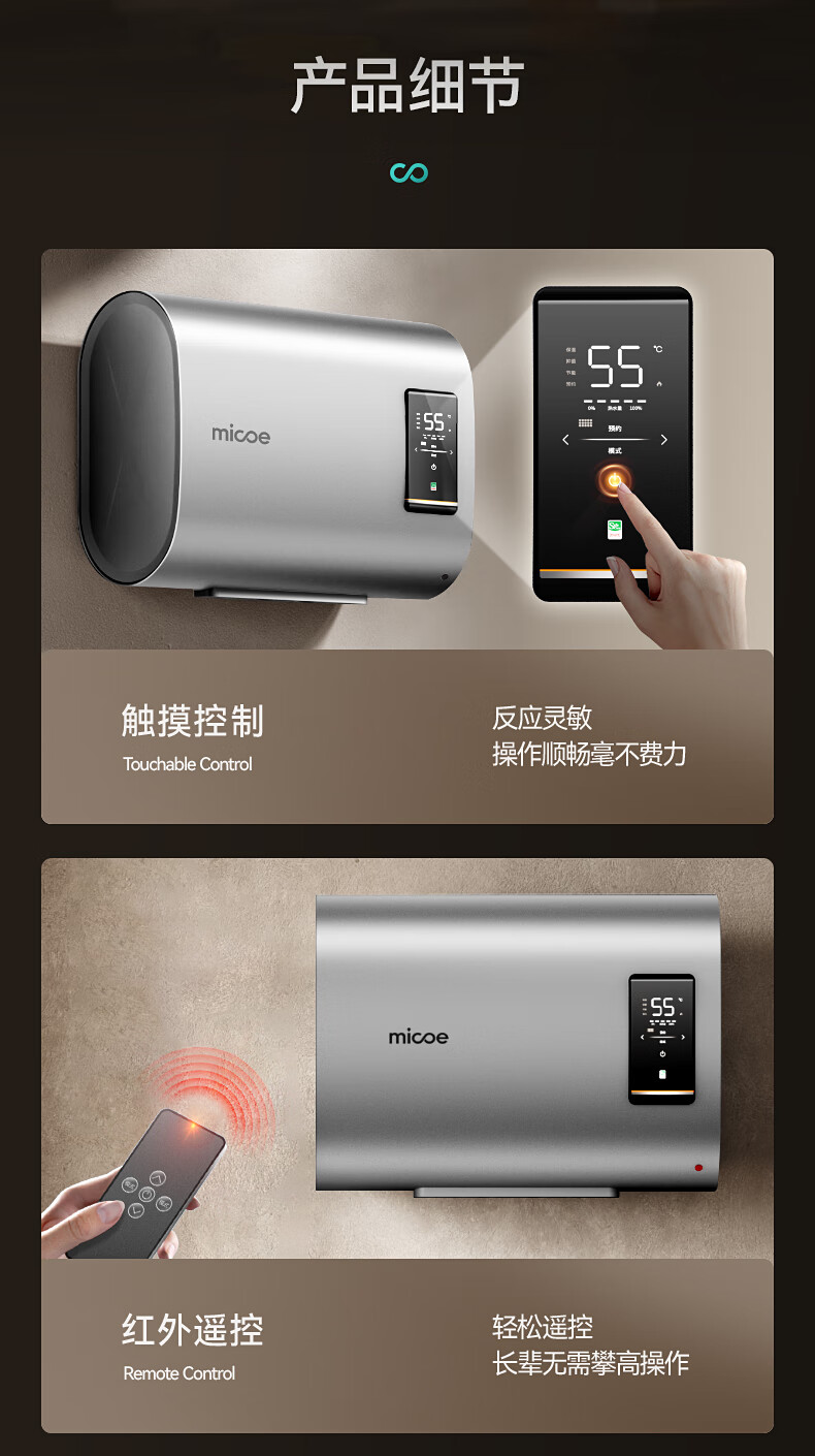 四季沐歌(MICOE)电热水器扁桶超薄双胆一级能效节能3000W家用速热恒温预约遥控免换镁棒双防电墙净滤防冻上门安装 60L 3000W LED触控大屏