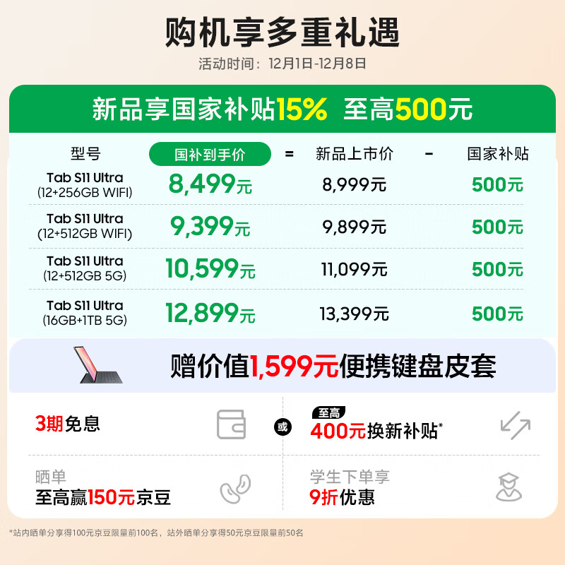 三星 Samsung【国家补贴】S11 Ultra 14.6英寸平板电脑2025新款/超轻薄办公平板 12+256GB 钛影灰 WIFI