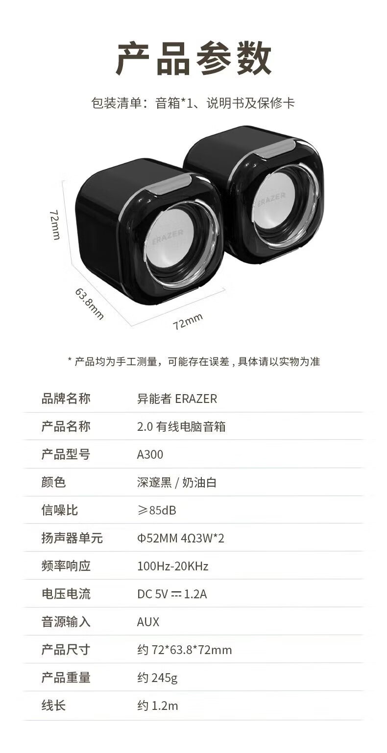 联想生态品牌异能者2.0有线电脑音箱迷你小音响小喇叭笔记本电脑桌面家用台式机USB高音质低音炮黑色