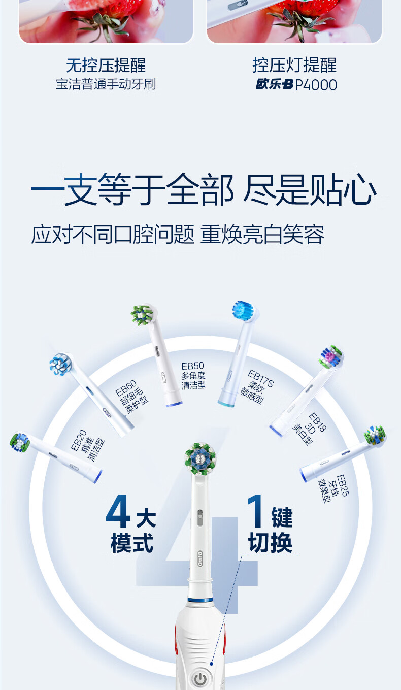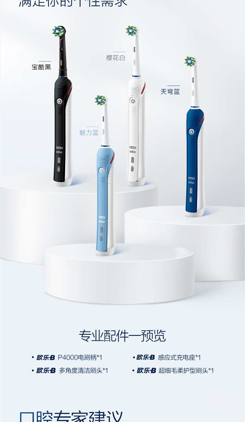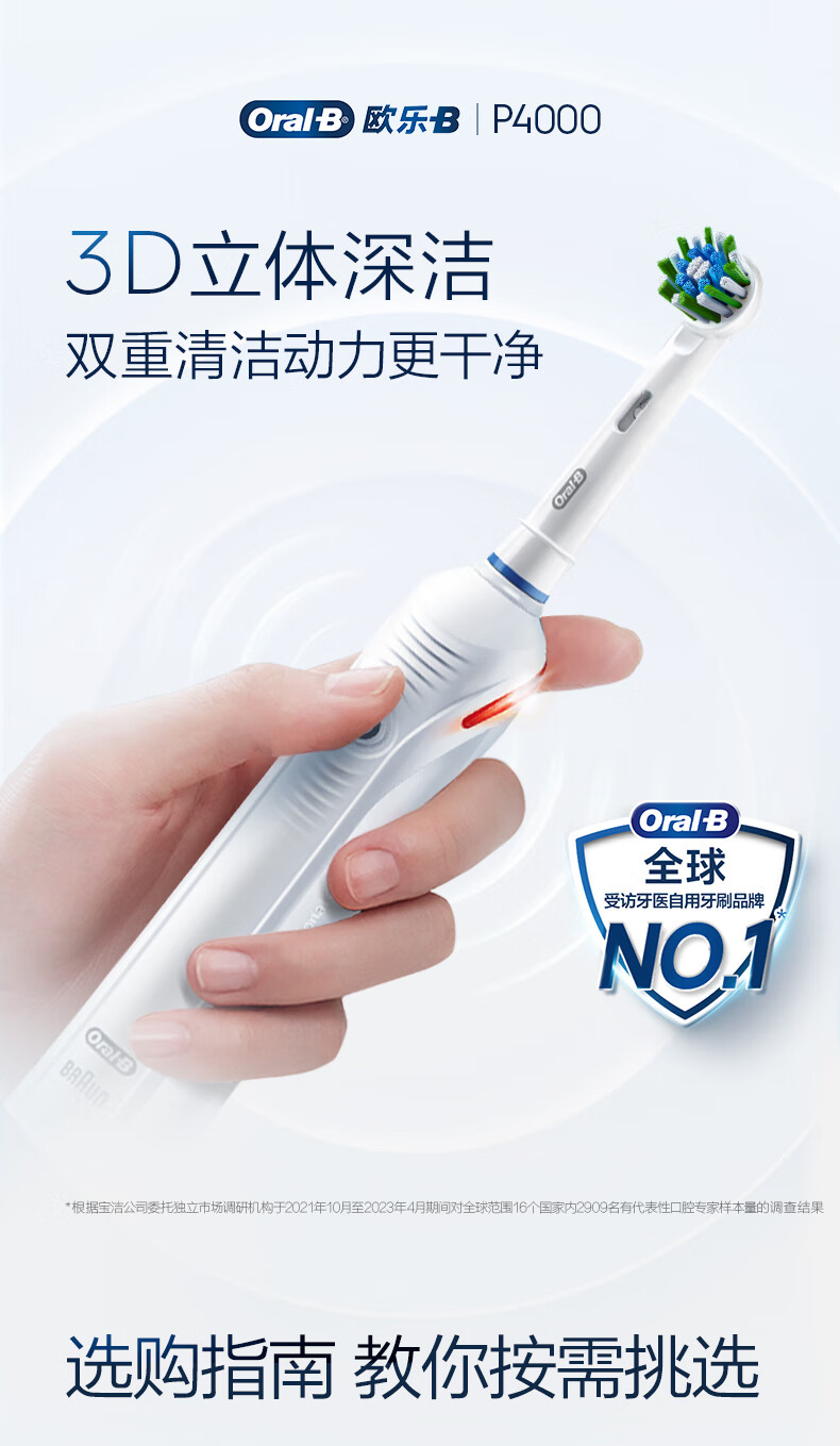 欧乐B成人电动牙刷男士女士P4000深度清洁牙龈呵护3D声波京东自营热卖榜商务伴手礼生日礼物送男友女友