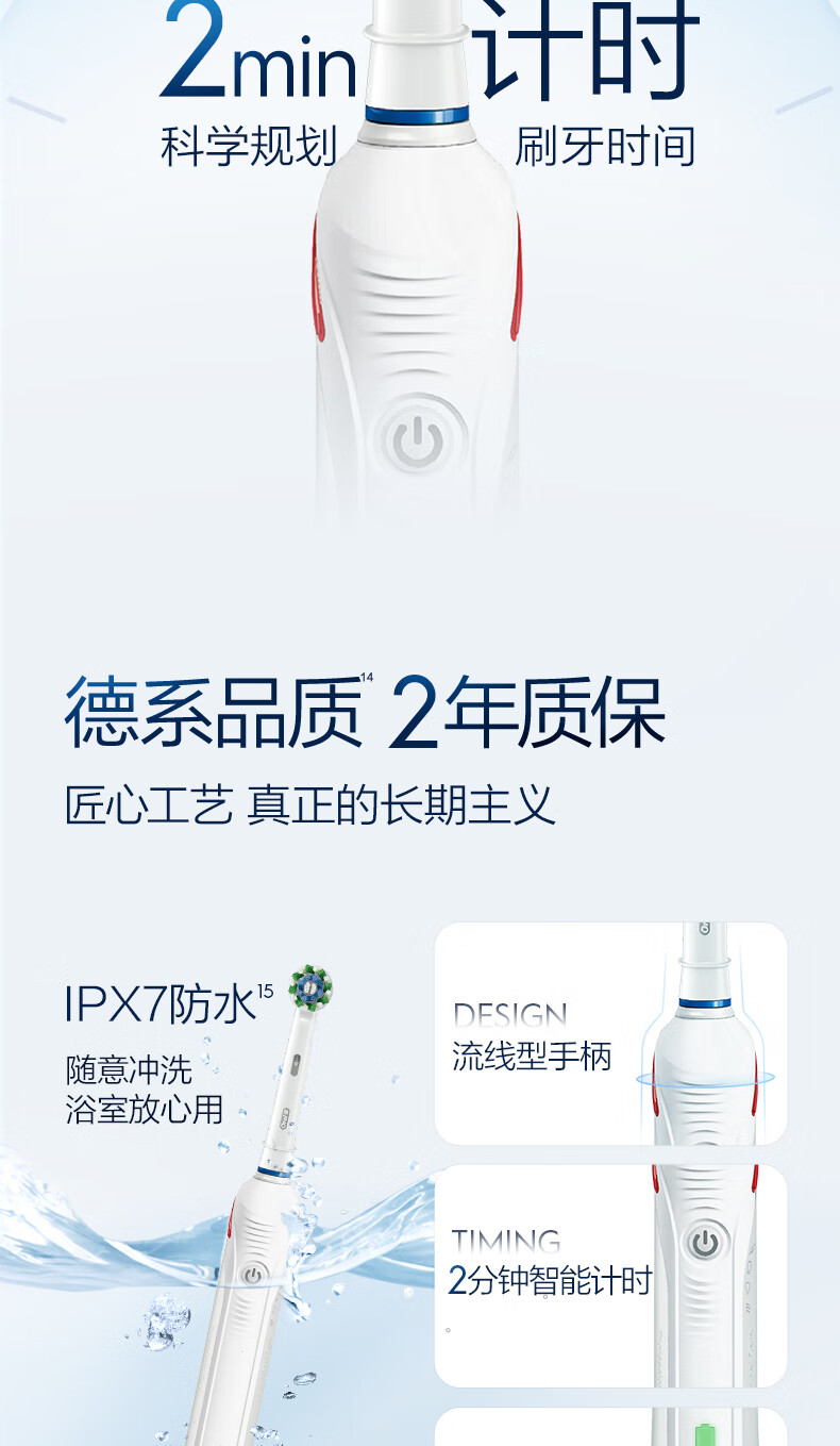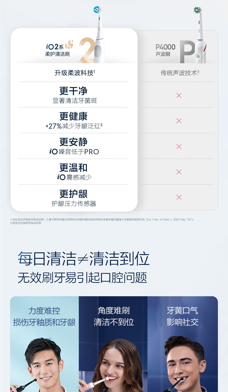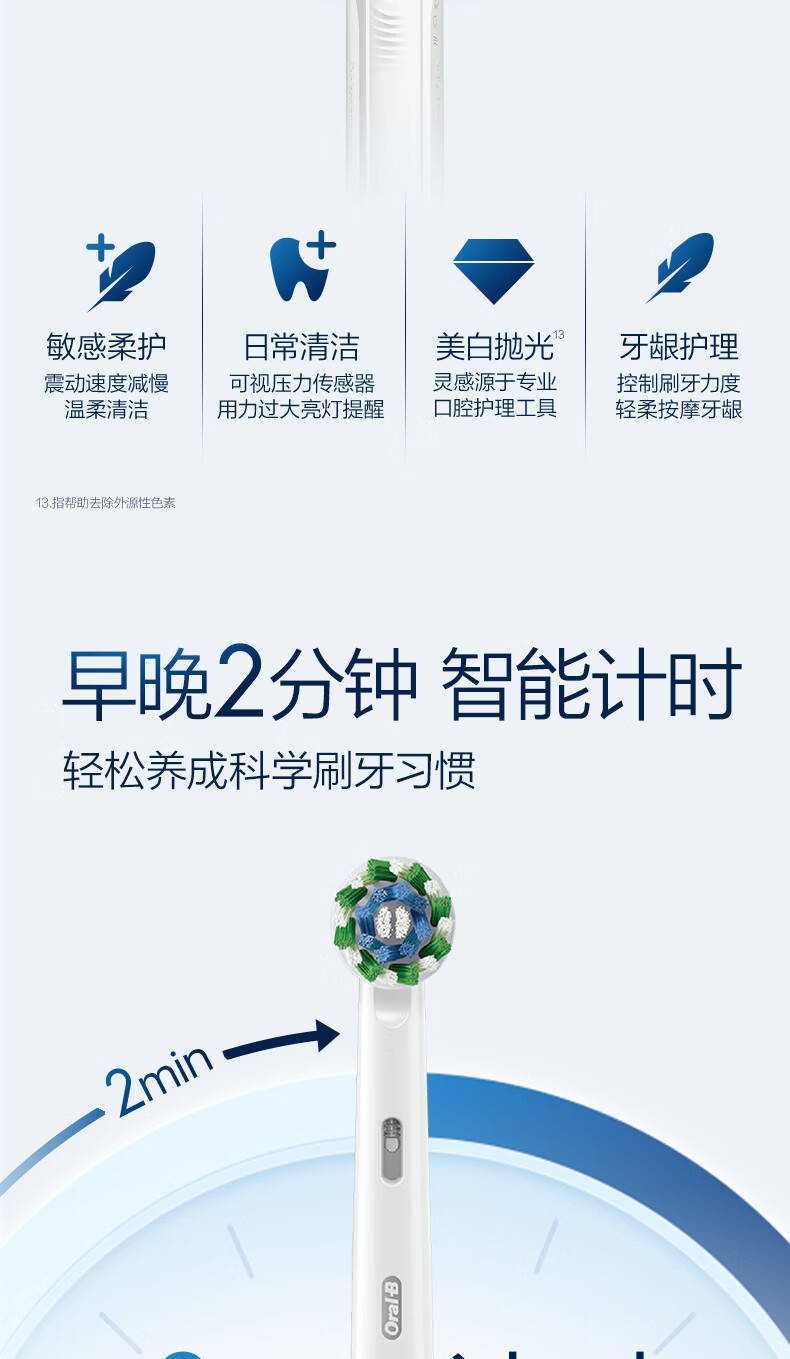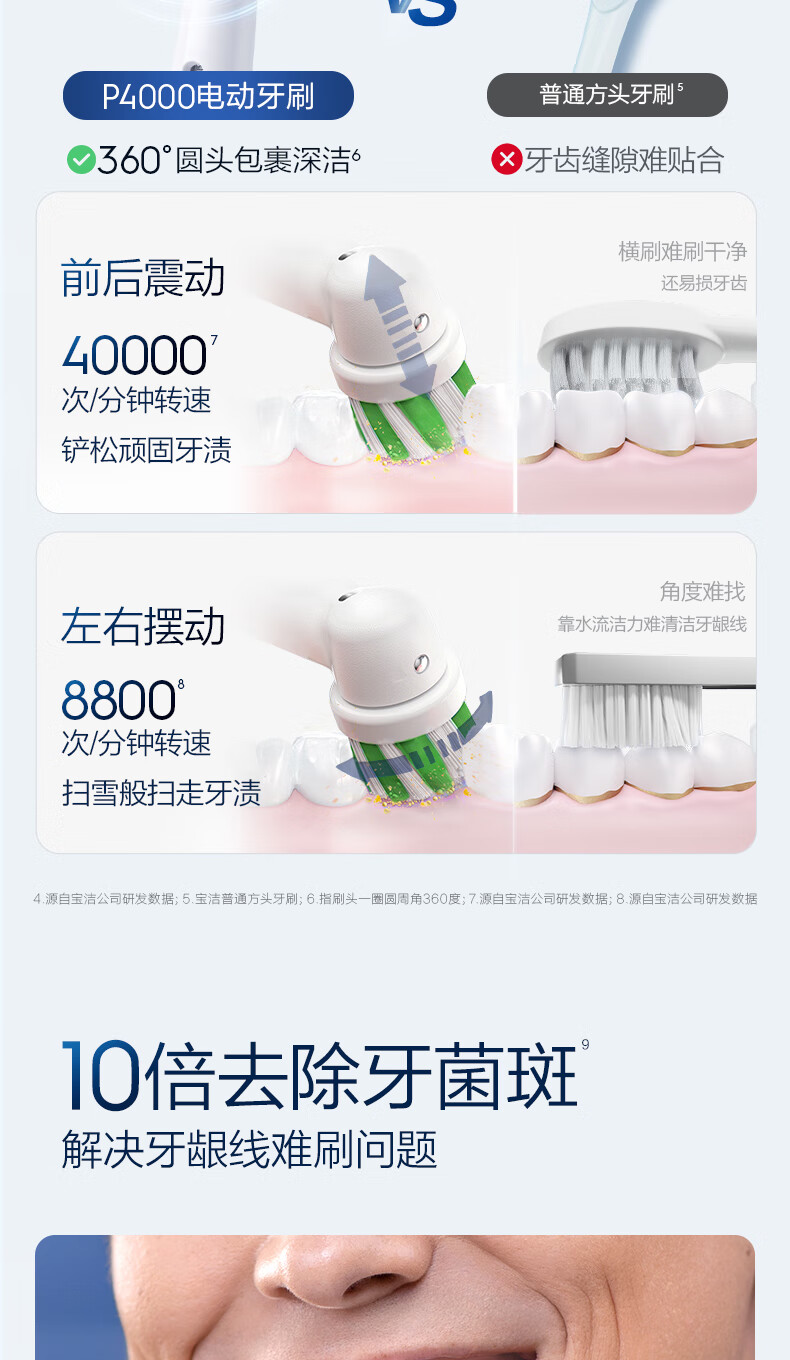 欧乐B成人电动牙刷男士女士P4000深度清洁牙龈呵护3D声波京东自营热卖榜商务伴手礼生日礼物送男友女友