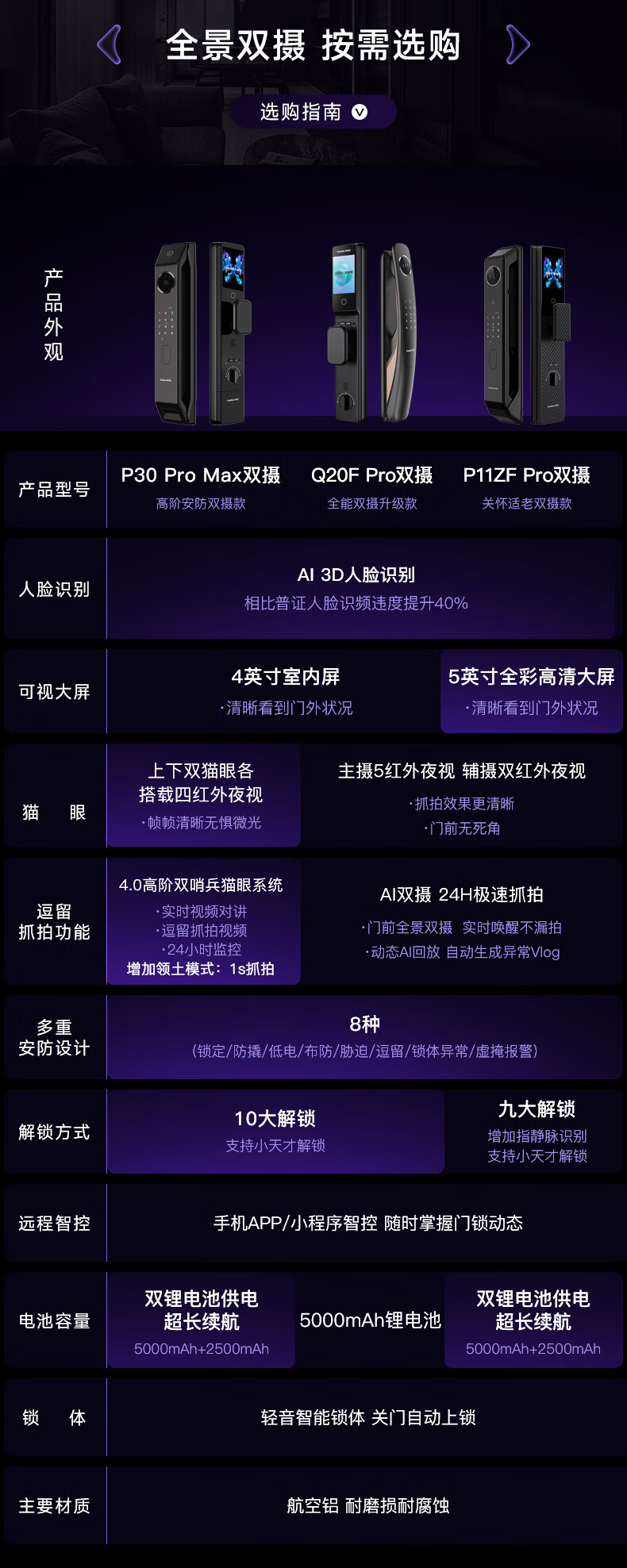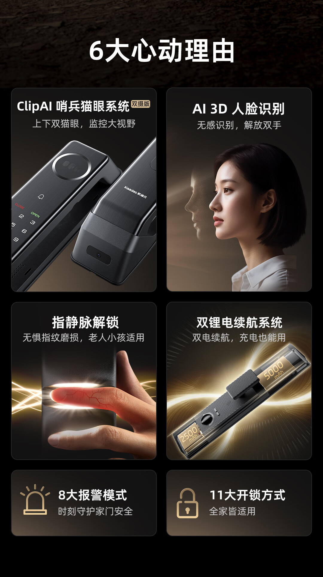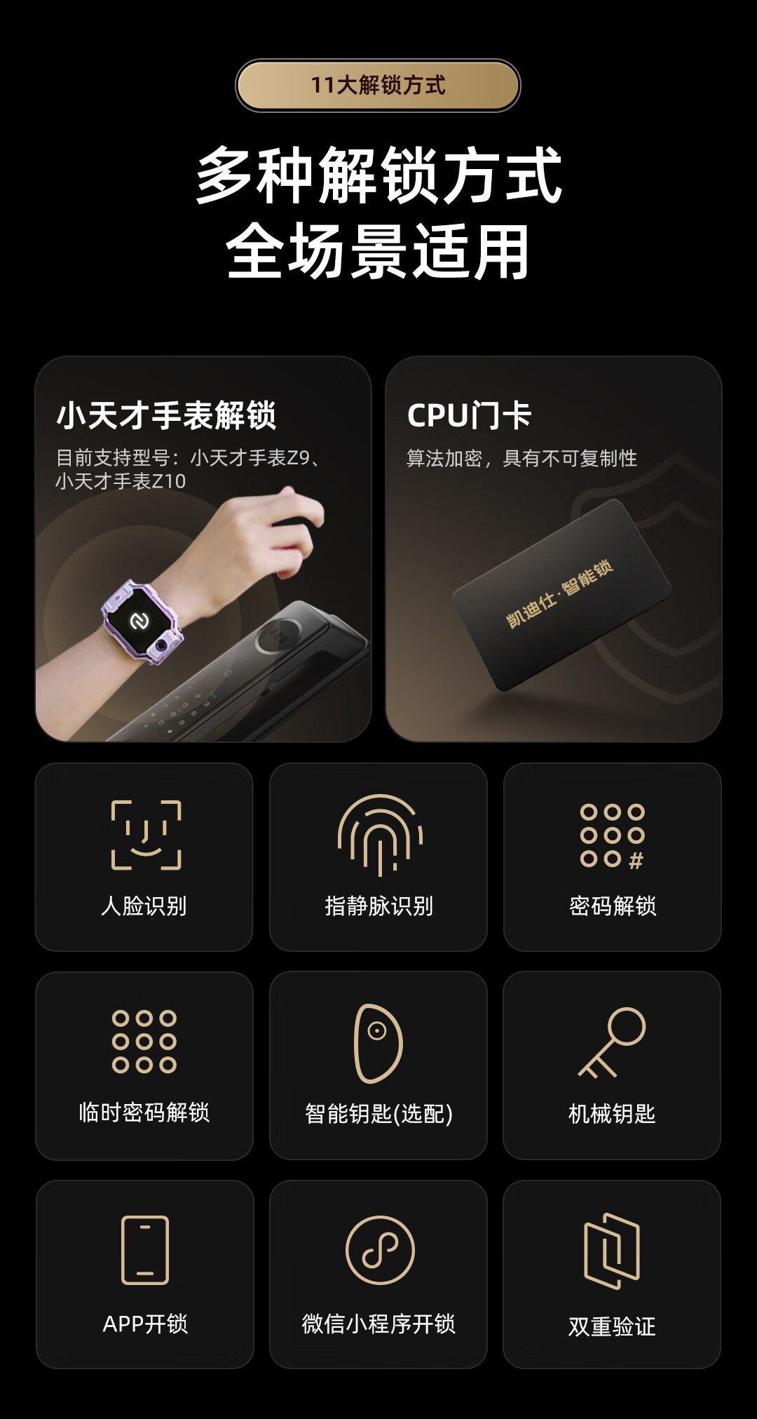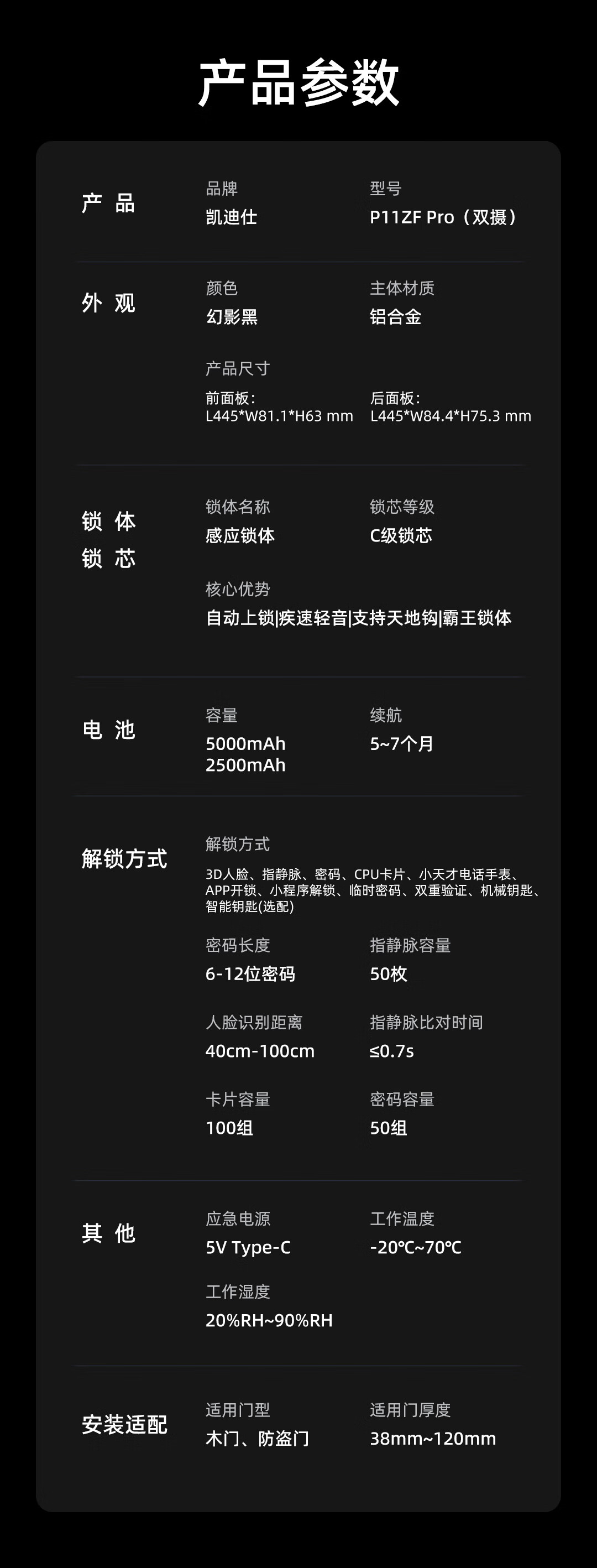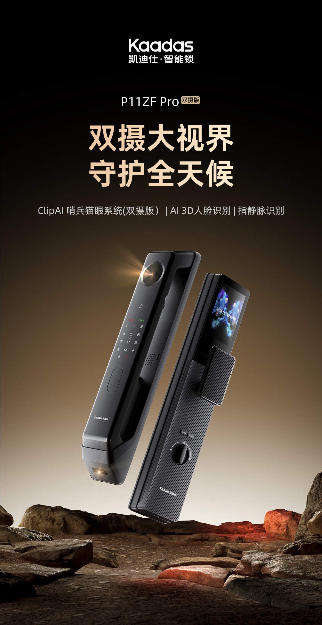 凯迪仕(kaadas)智能门锁人脸识别猫眼监控可视大屏指静脉智能锁P11ZF Pro双摄