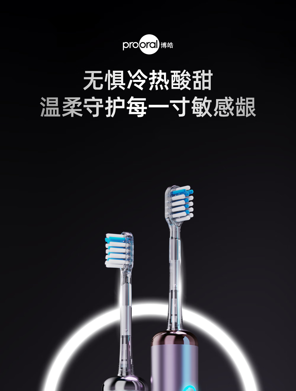 博皓(prooral)扫振电动牙刷男女士专用成人电动牙刷情侣 自动牙刷智能电动牙刷便携正畸软毛刷头 铝合金磁吸充电 银色| 高频振动| 软胶刷头