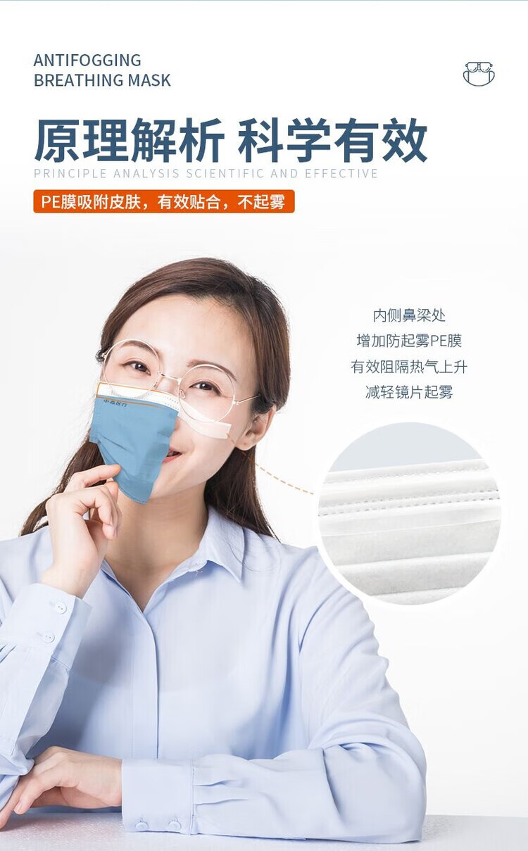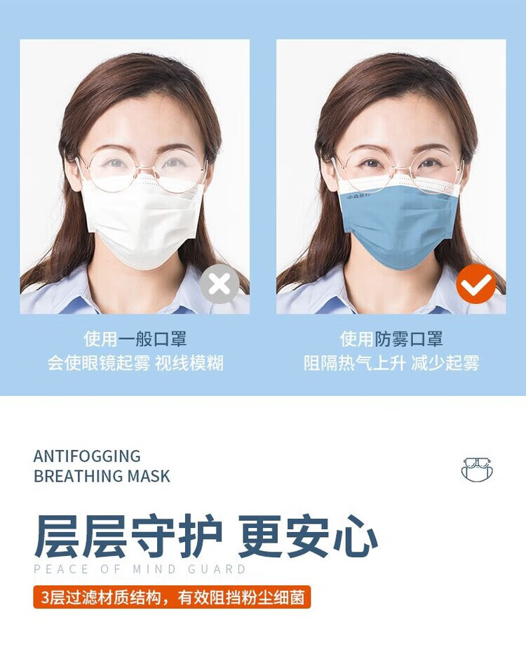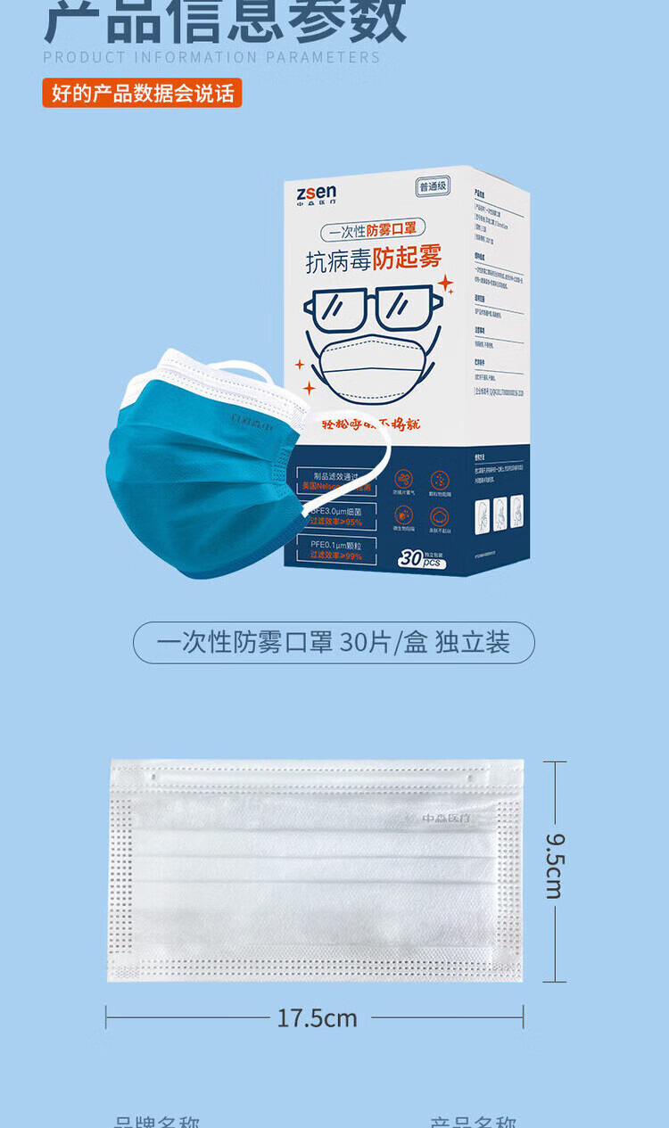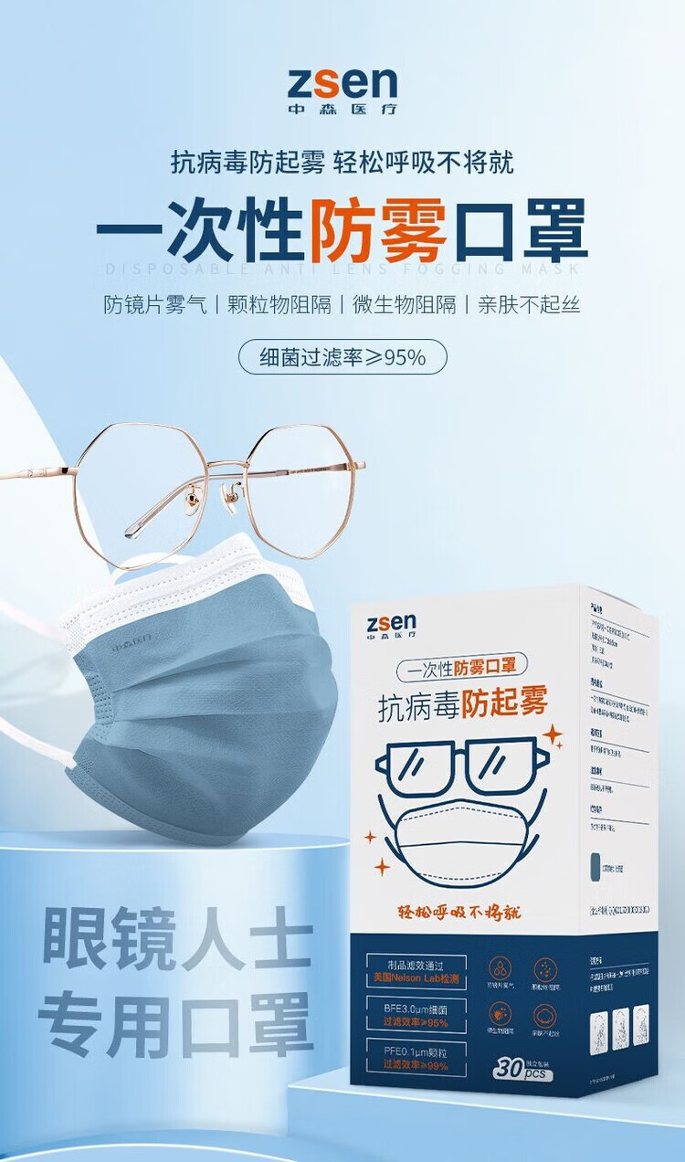 ZSEN一次性抗病毒防起雾口罩戴眼镜人士专用成人防护30只独立装 【30片独立装】杜若蓝