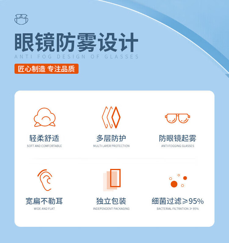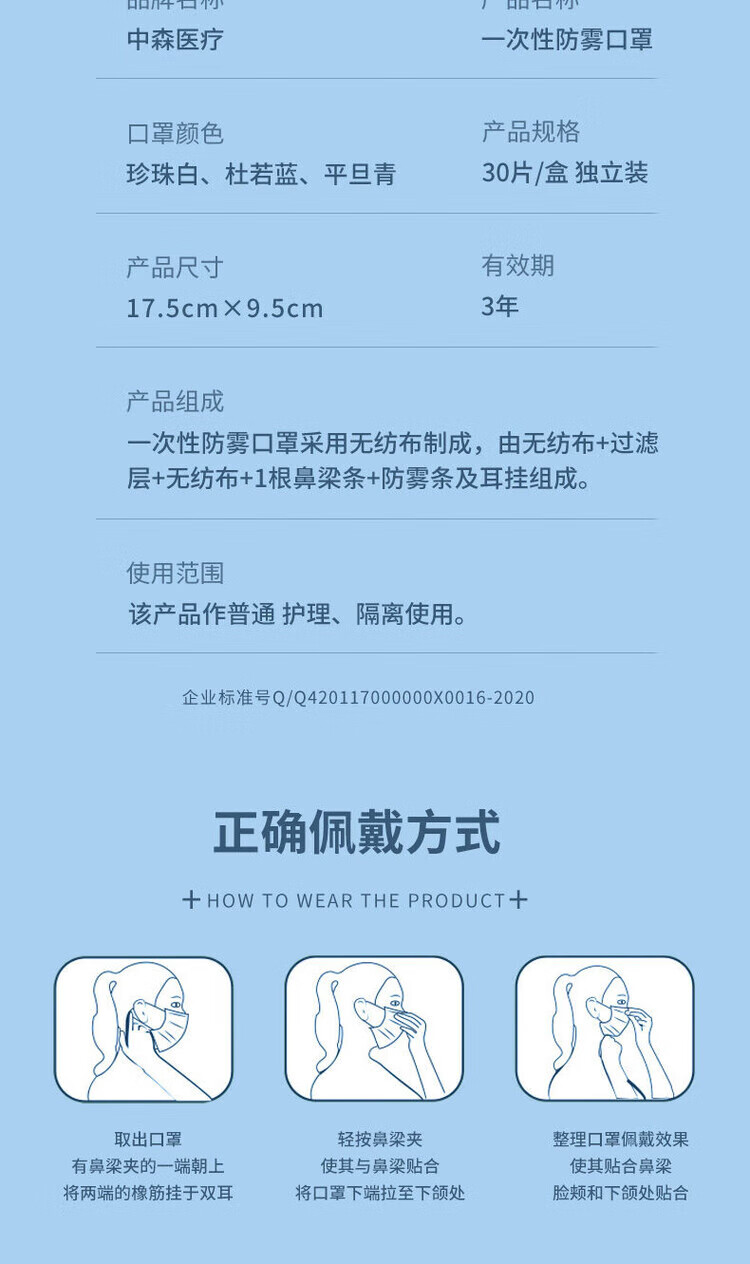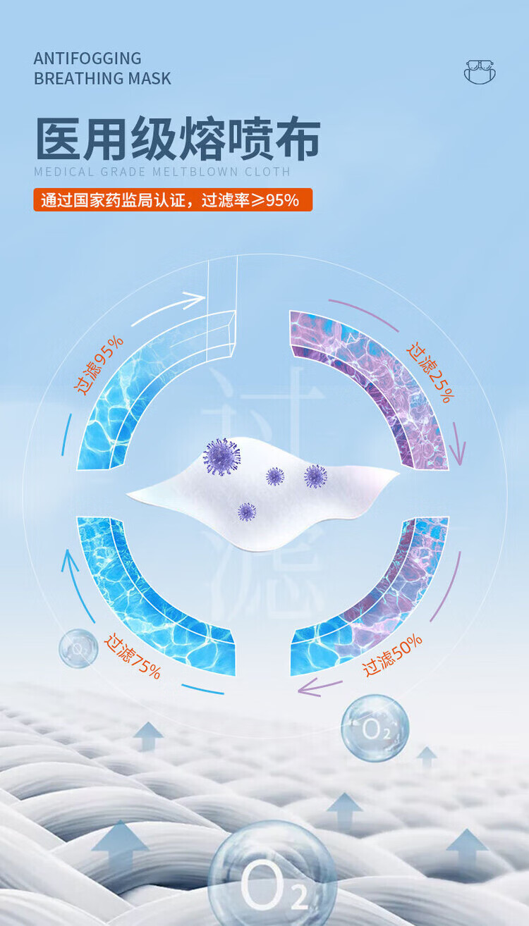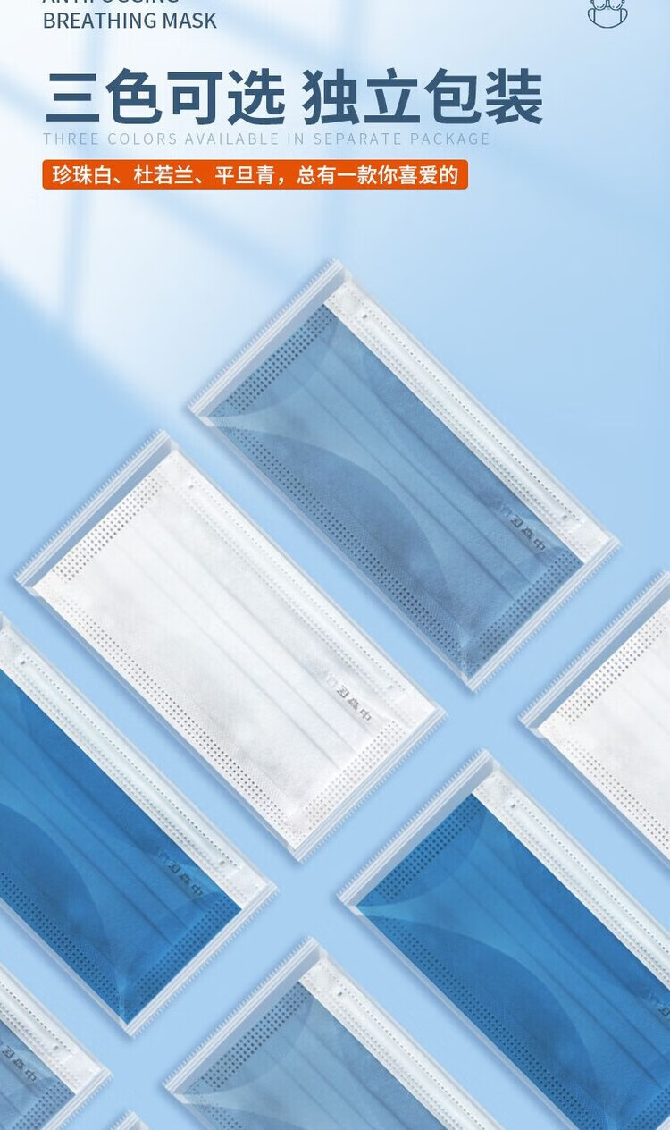 ZSEN一次性抗病毒防起雾口罩戴眼镜人士专用成人防护30只独立装 【30片独立装】杜若蓝