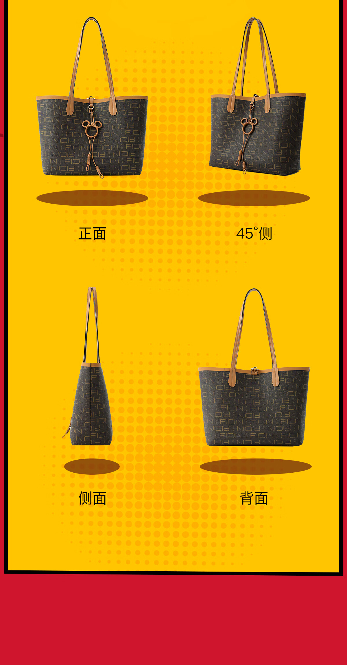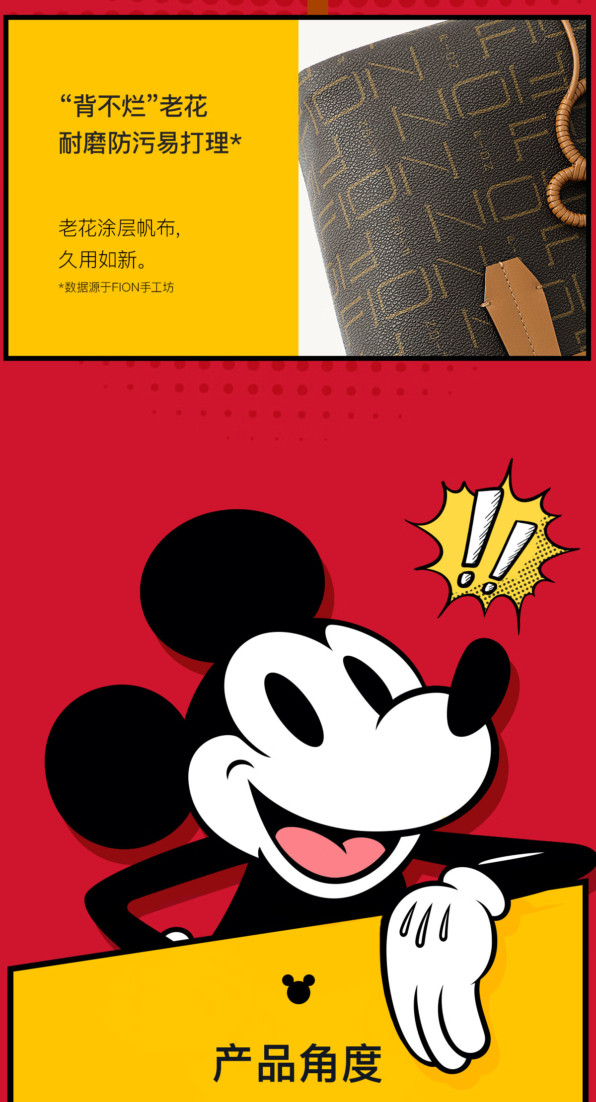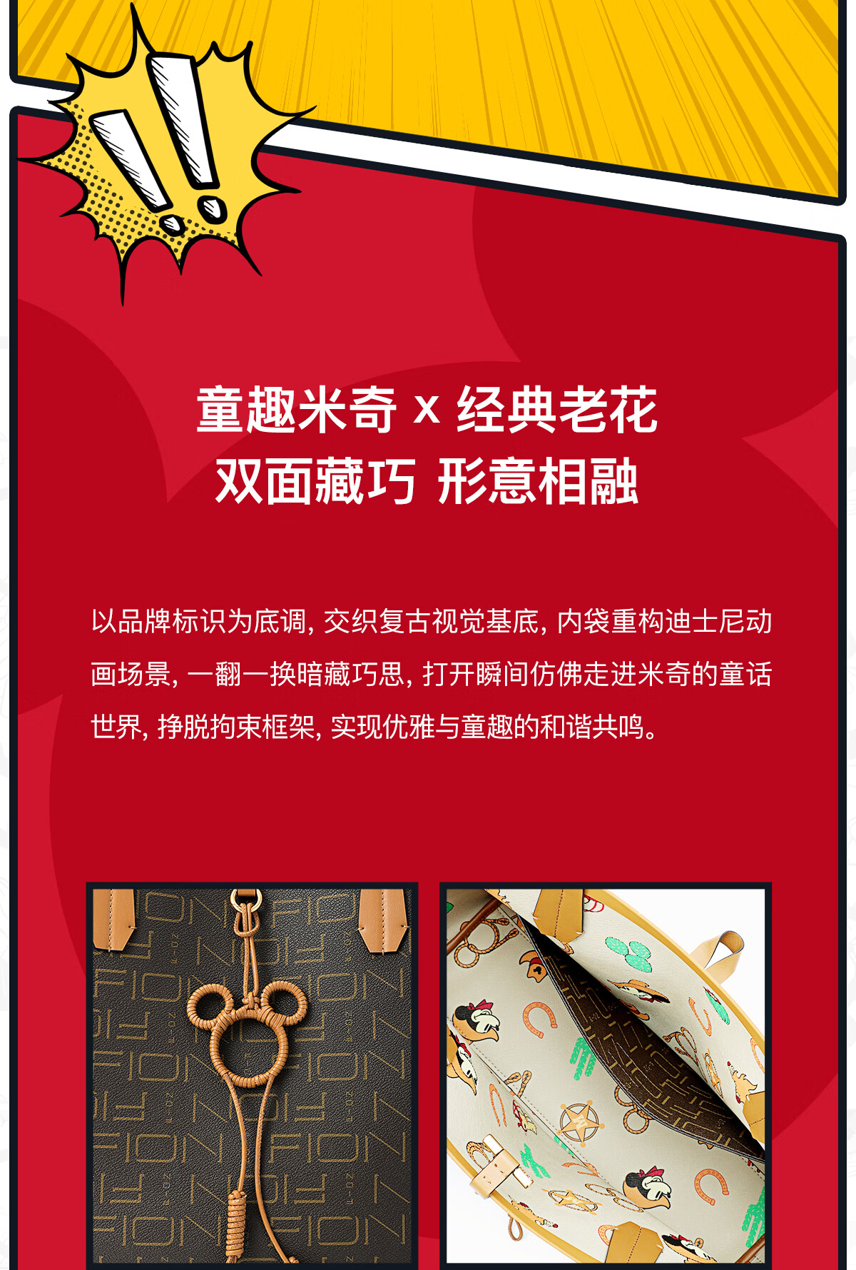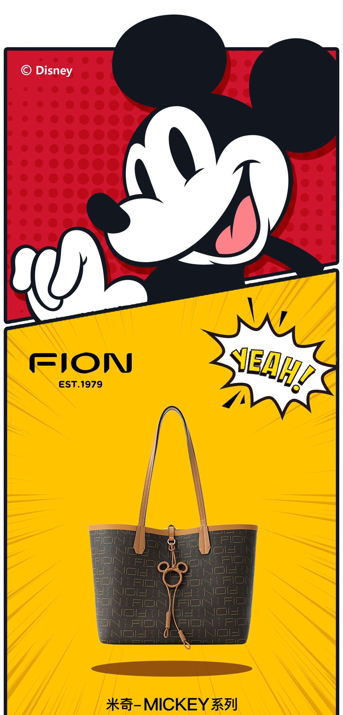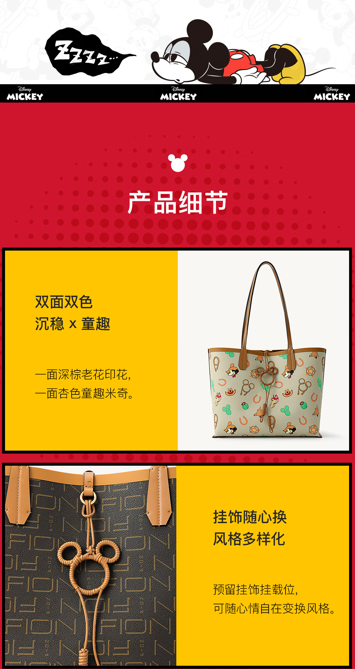 菲安妮(FION)包包女包205新款米奇系列托特包经典老花女士单肩包 圣诞礼物 啡/棕