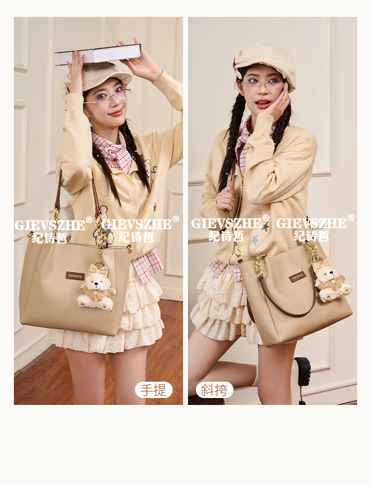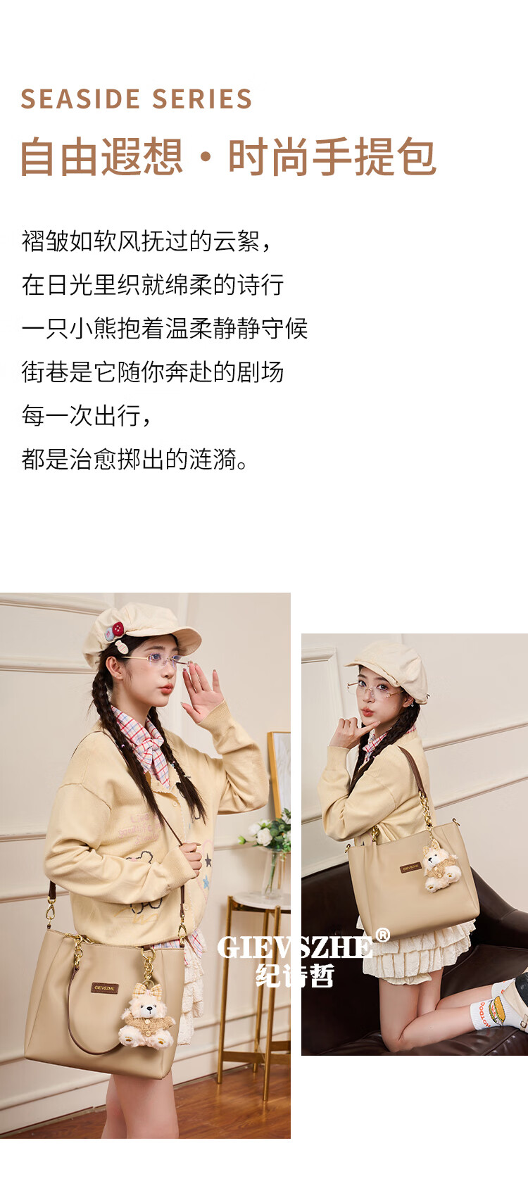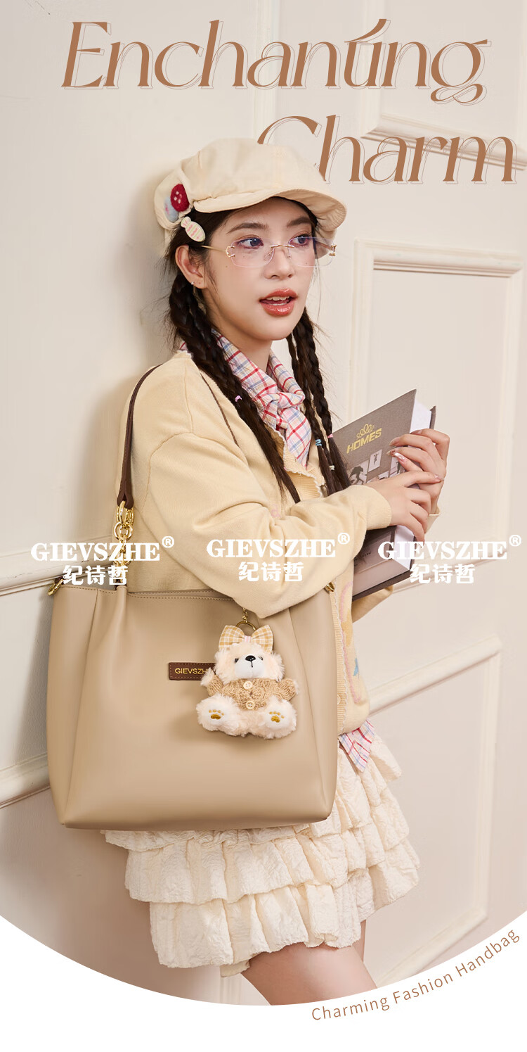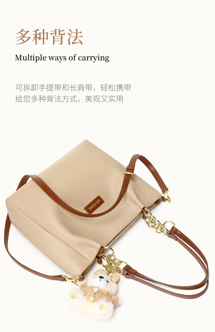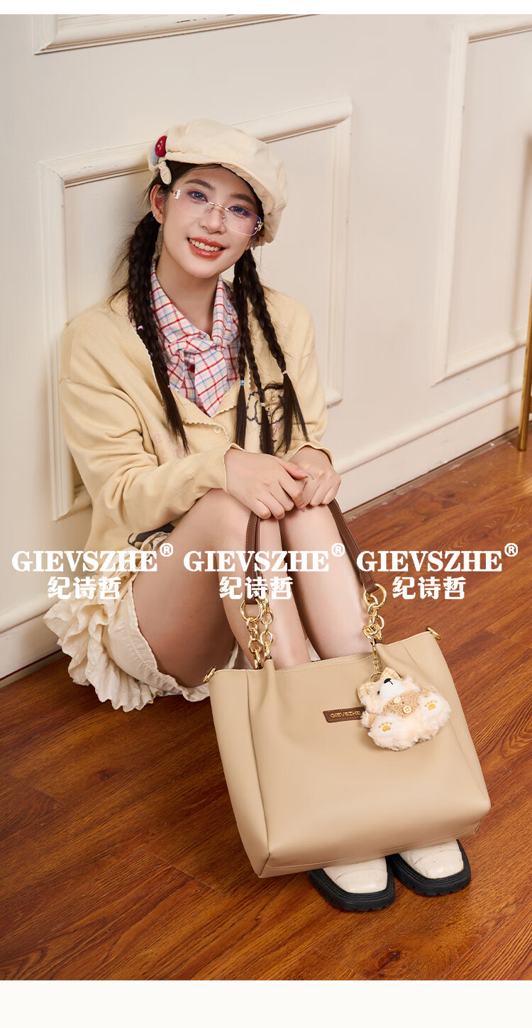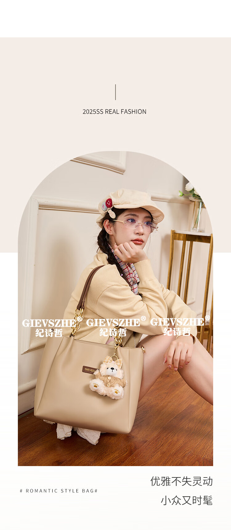 纪诗哲(GIEVSZHE)轻奢侈包包女包2025年新款女士单肩斜挎托特包送老婆女友生日礼物 卡其色 品牌礼盒装