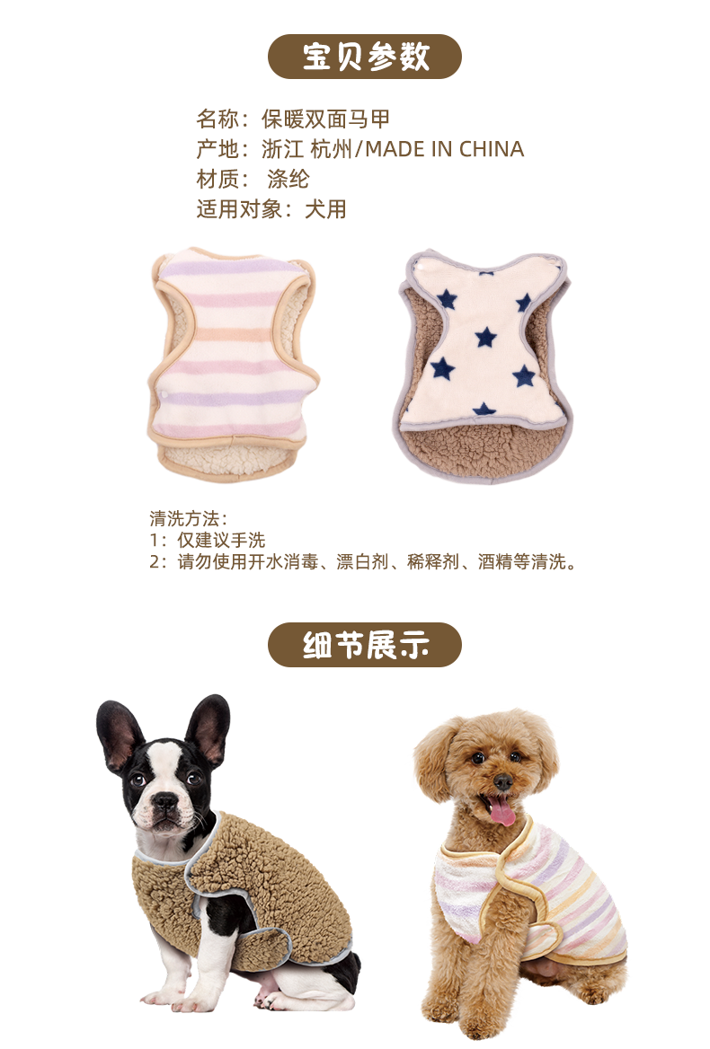 多格漫狗狗秋冬衣服保暖双面马甲正反两穿穿戴方便 条文 S