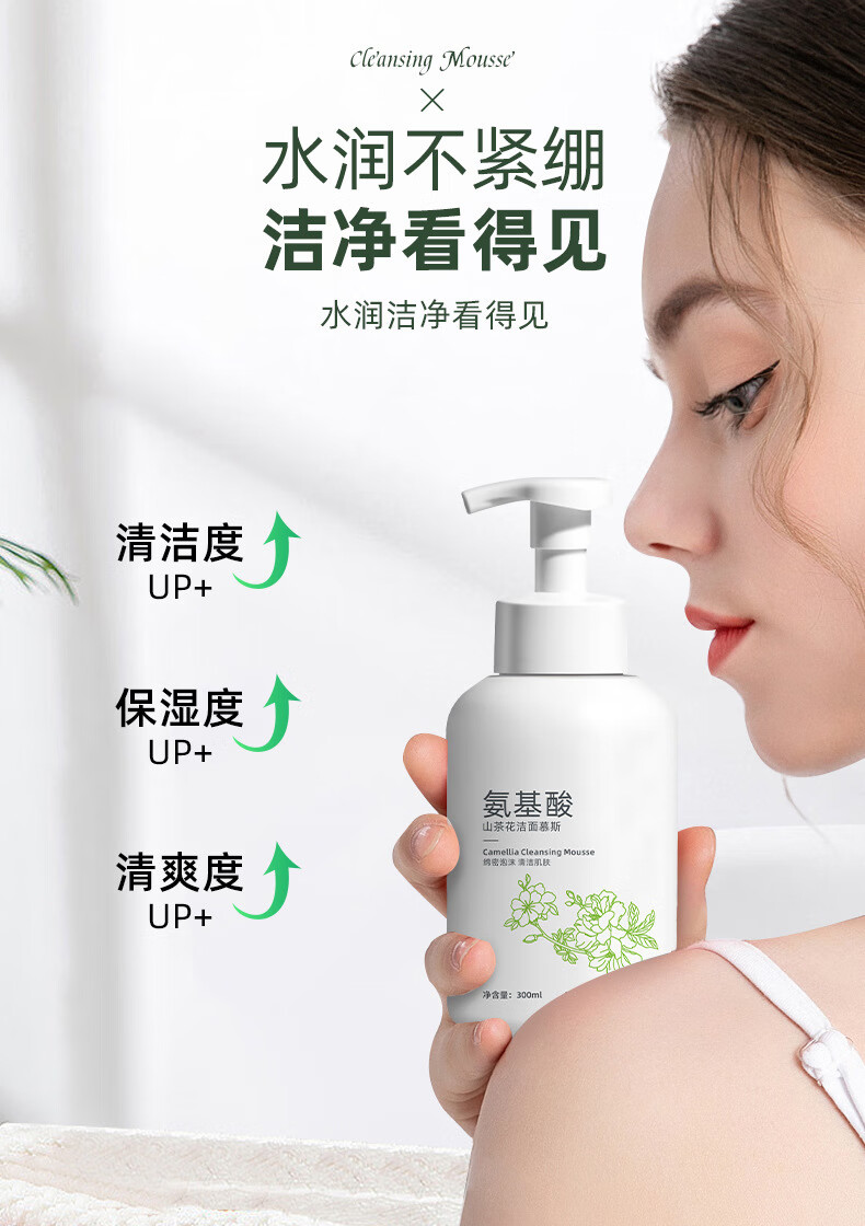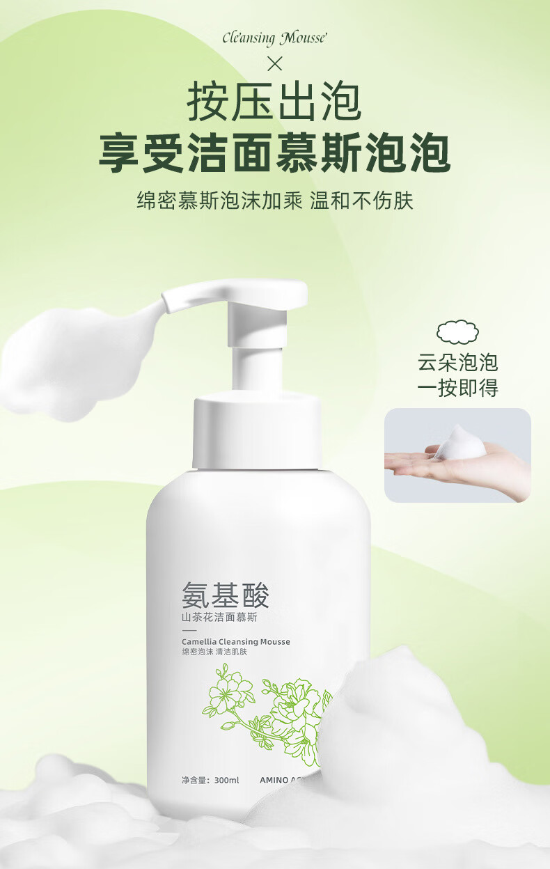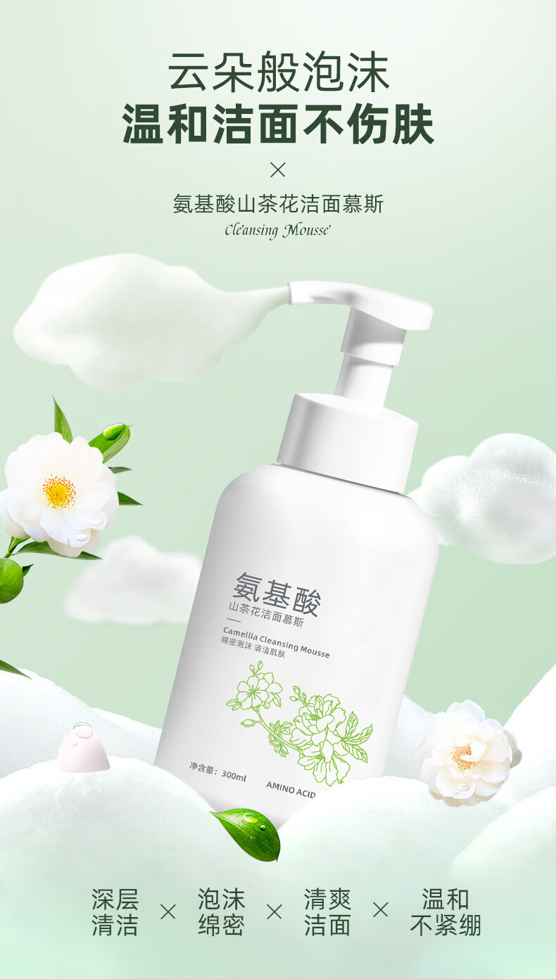 氨基酸山茶花氨基酸洁面慕斯深层清洁保湿 山茶花洁面慕斯洗面奶*3瓶