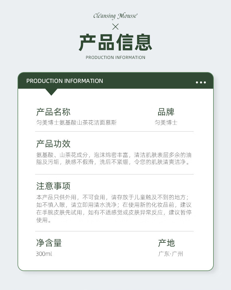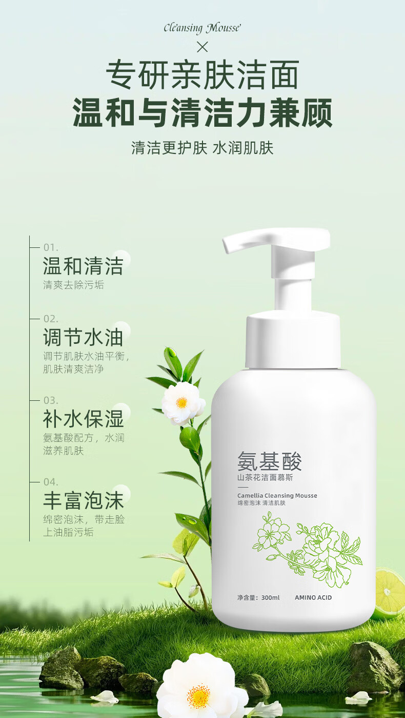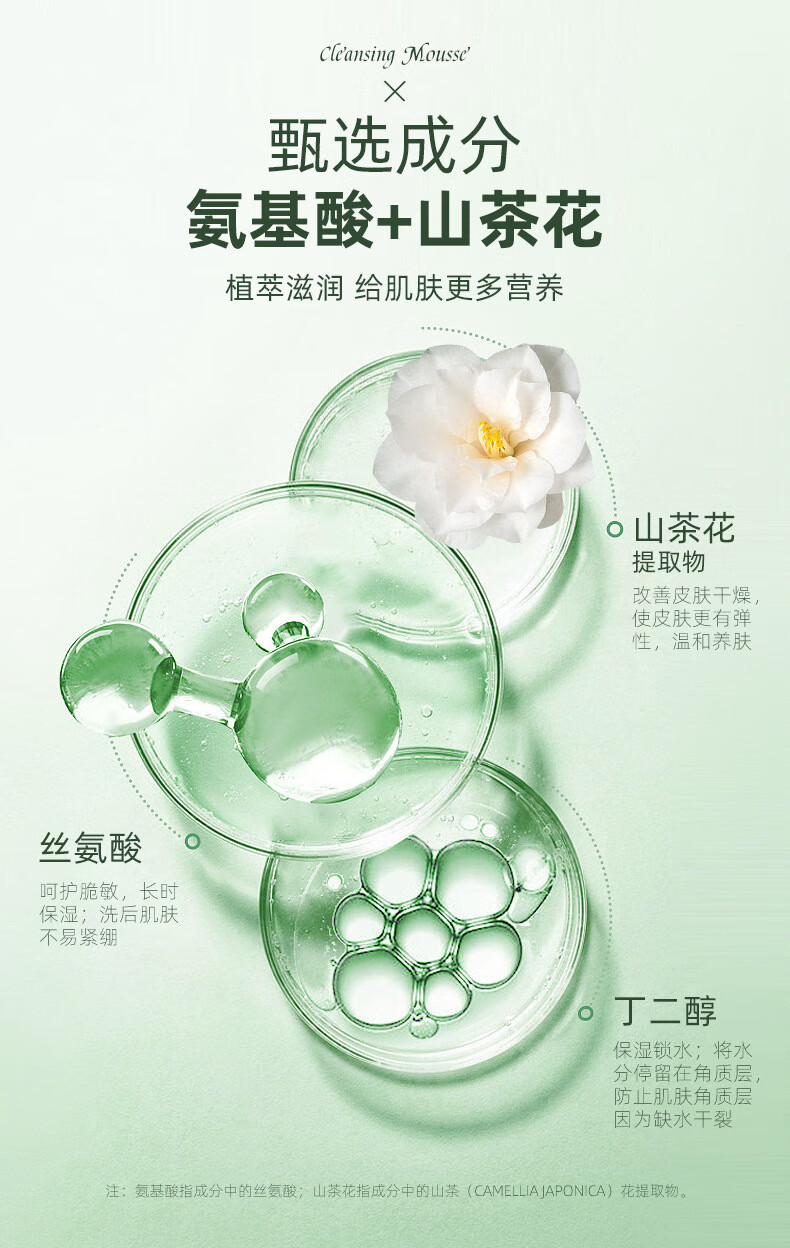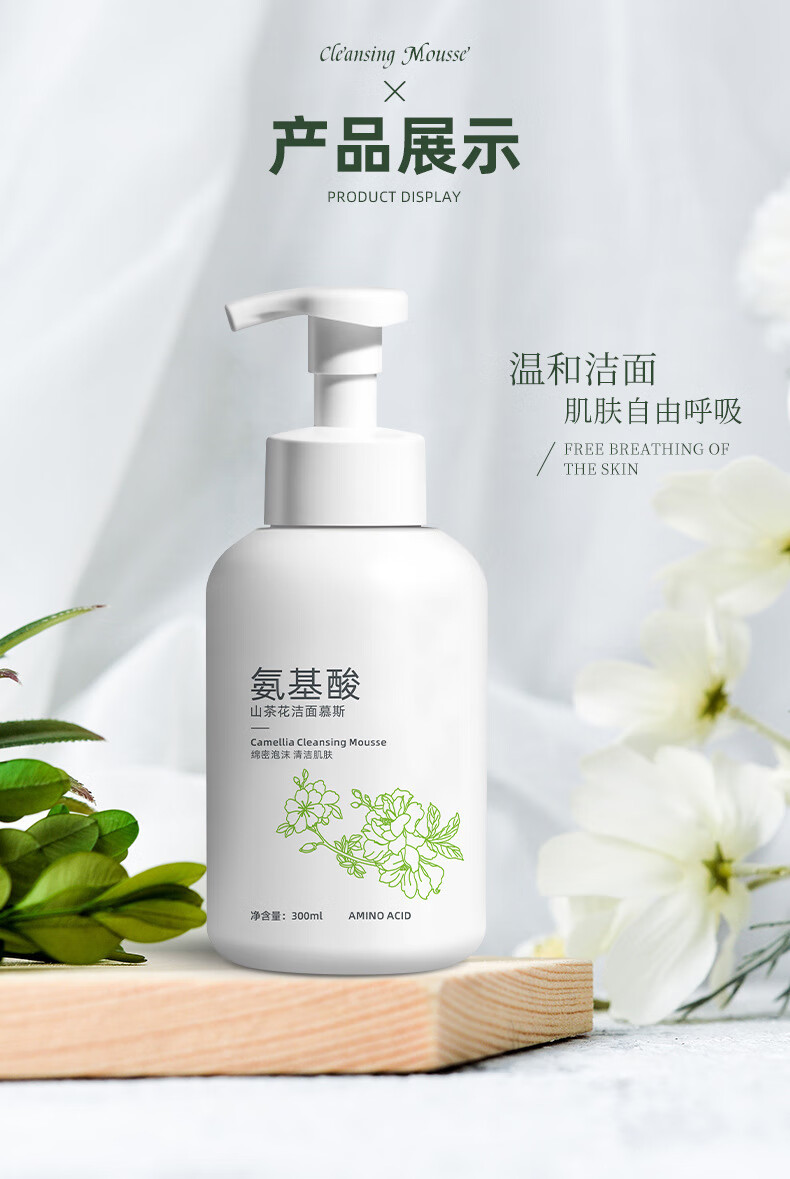 氨基酸山茶花氨基酸洁面慕斯深层清洁保湿 山茶花洁面慕斯洗面奶*3瓶