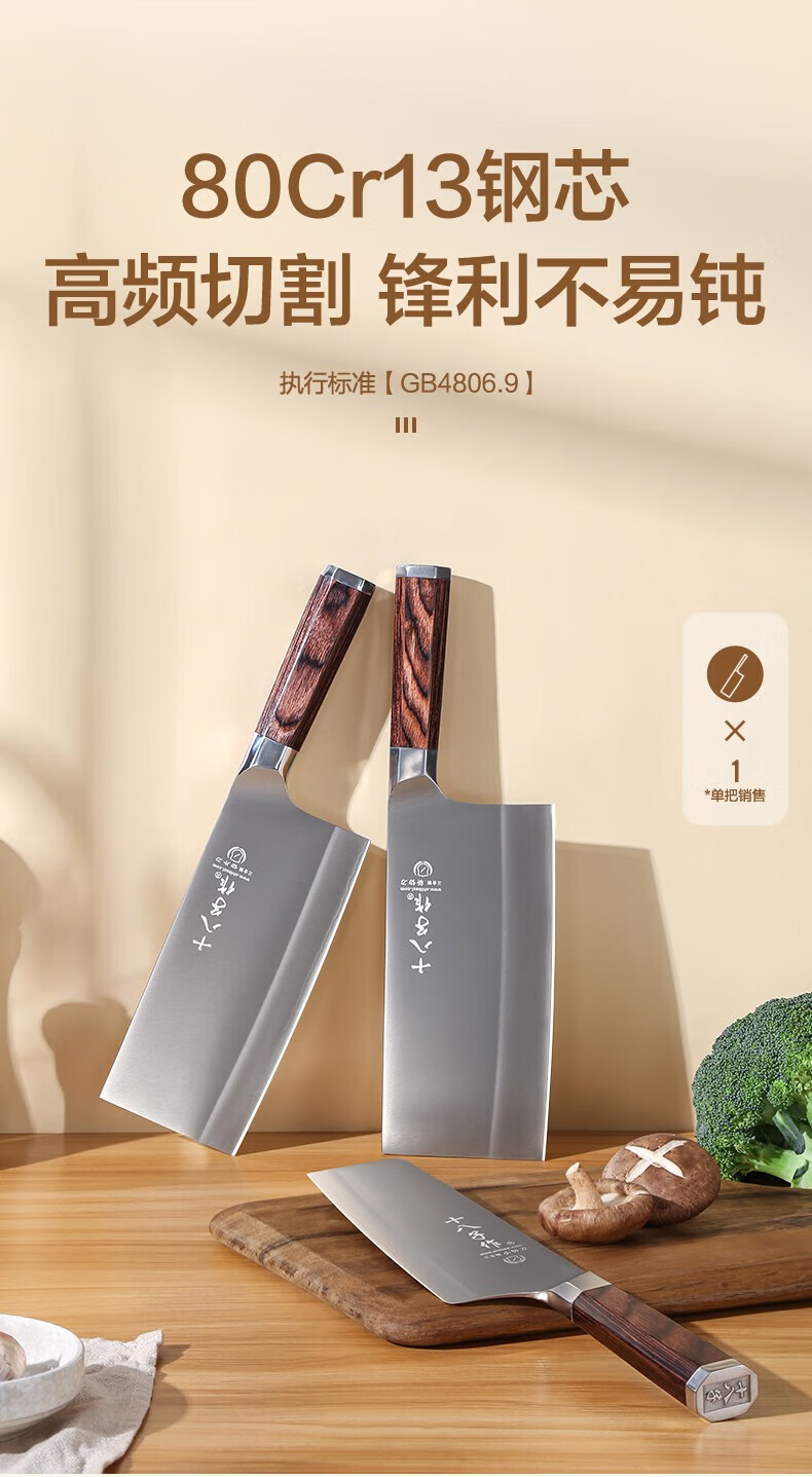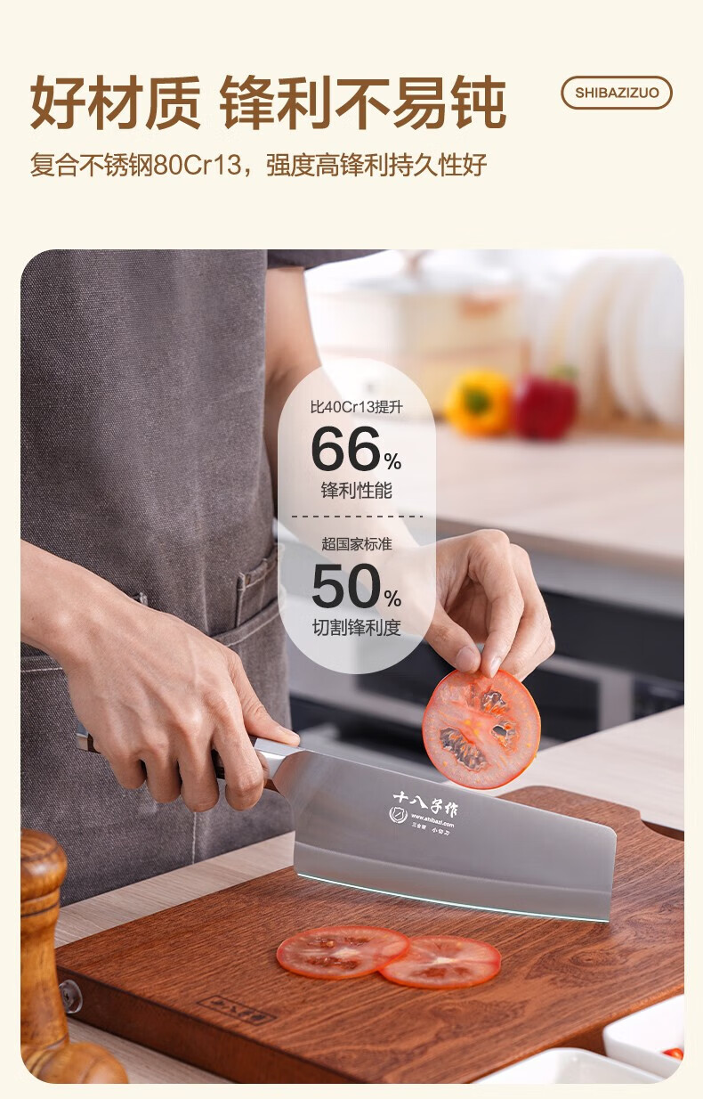 十八子作菜刀阳江刀具 家用斩切菜刀切片刀砍斩骨刀 复合钢80cr13 SL2103 切片刀【切菜切肉】