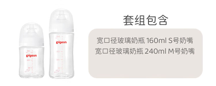 贝亲(Pigeon)新生儿玻璃奶瓶套装(160mlS号奶嘴+240mlM号奶嘴) 1-3个月