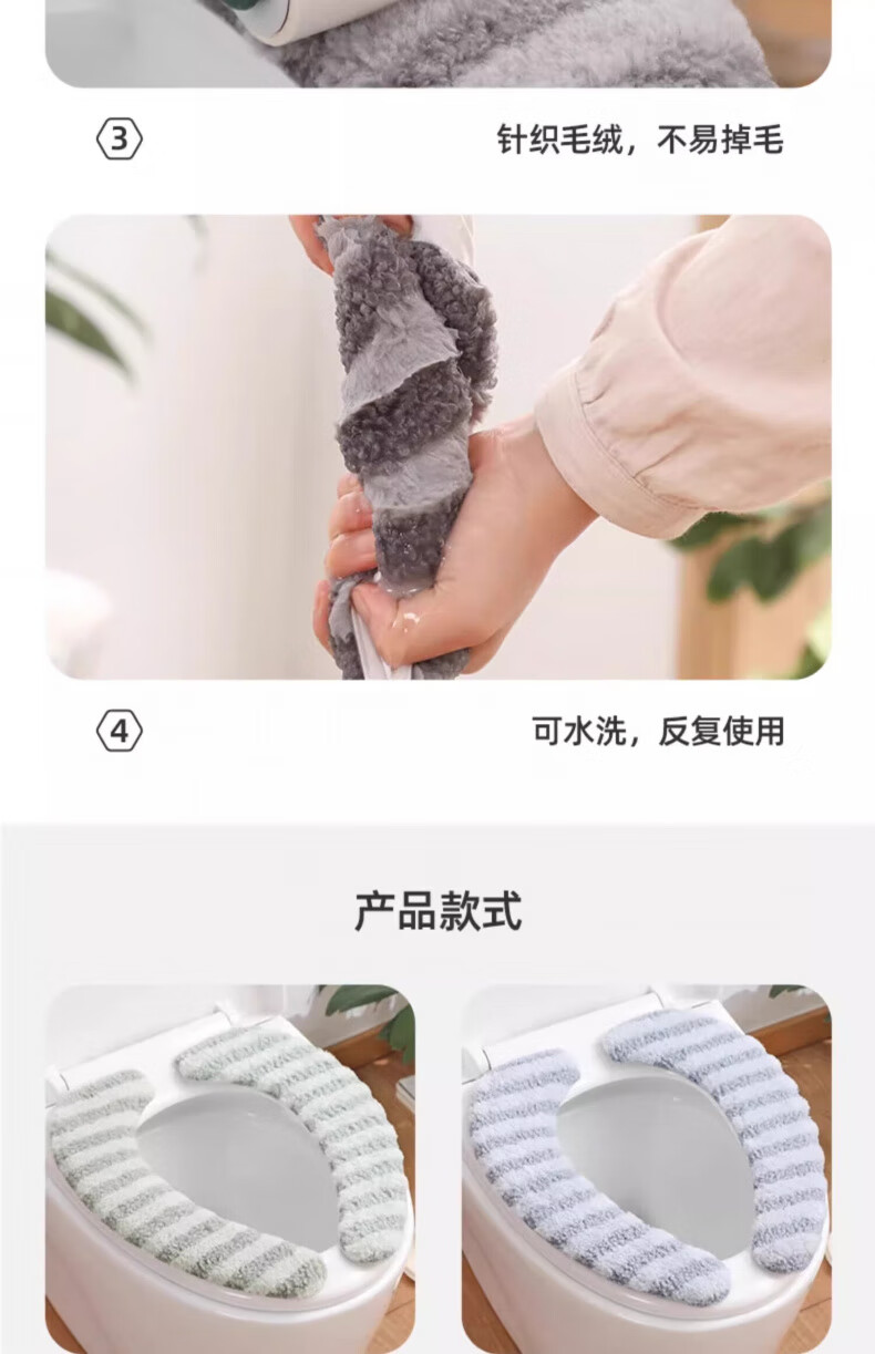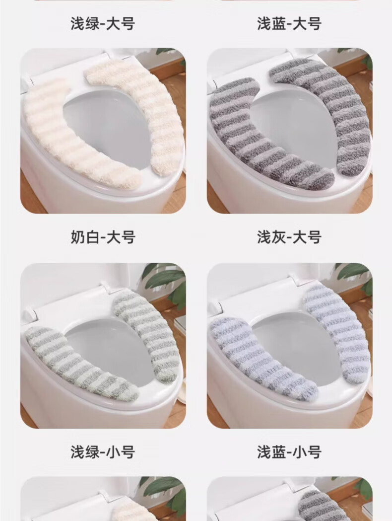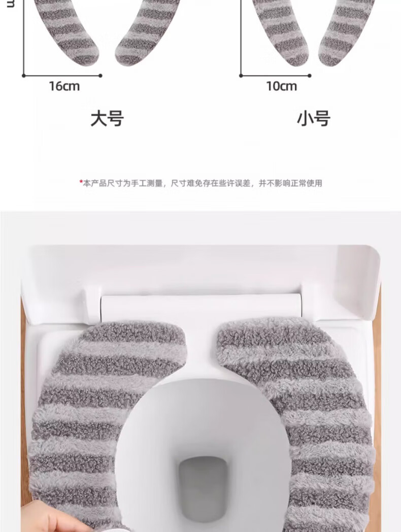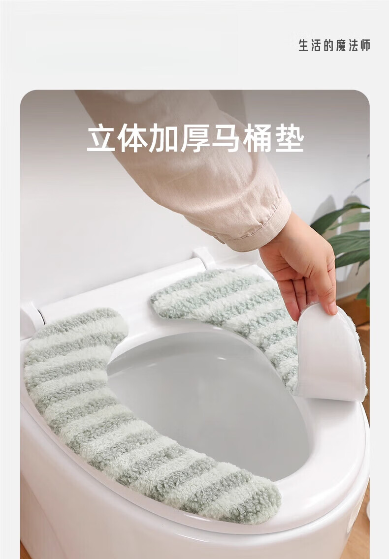 冬季马桶垫粘贴式加厚坐垫家用坐便套秋冬防水大号垫新款坐垫 条纹款加绒【1对装】蓝色+加厚