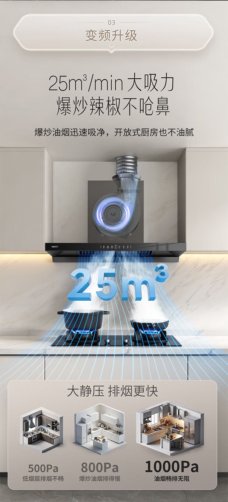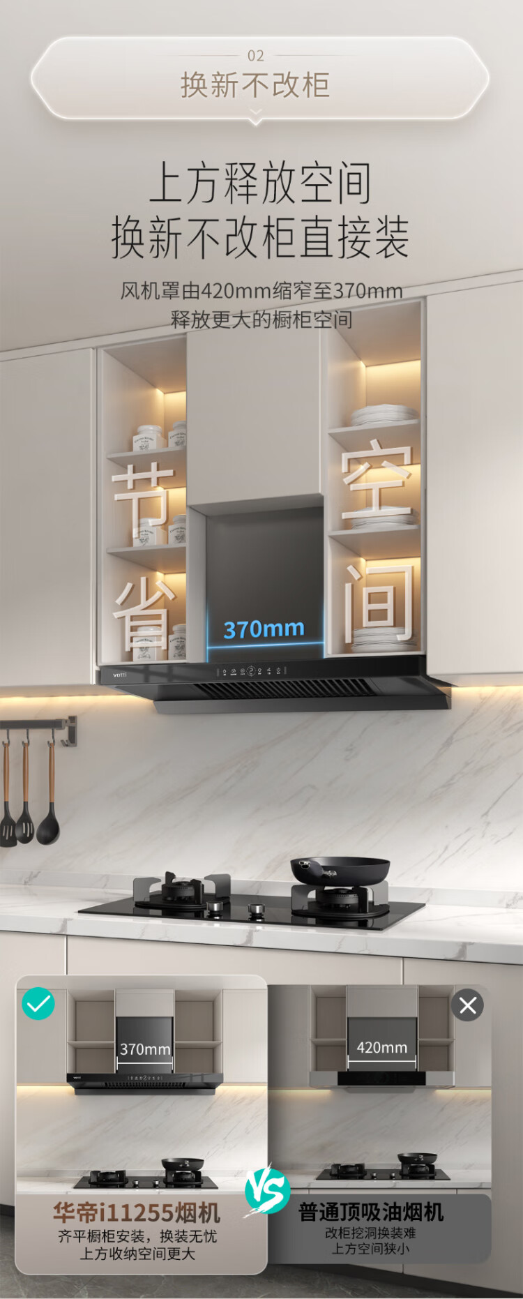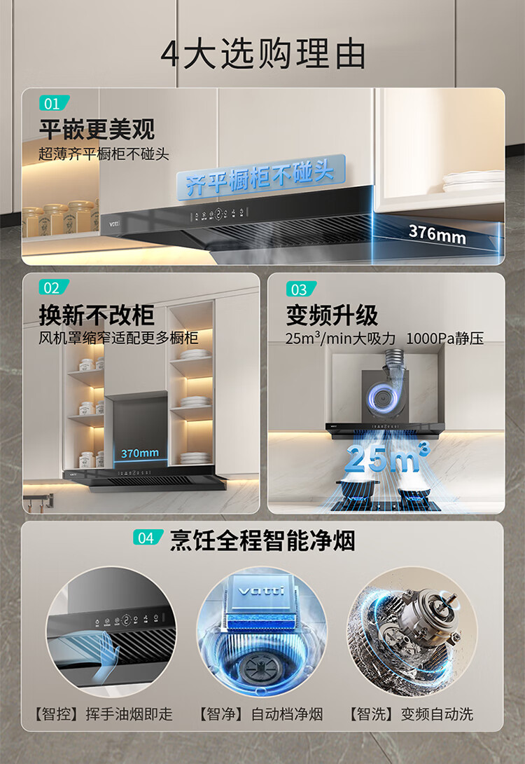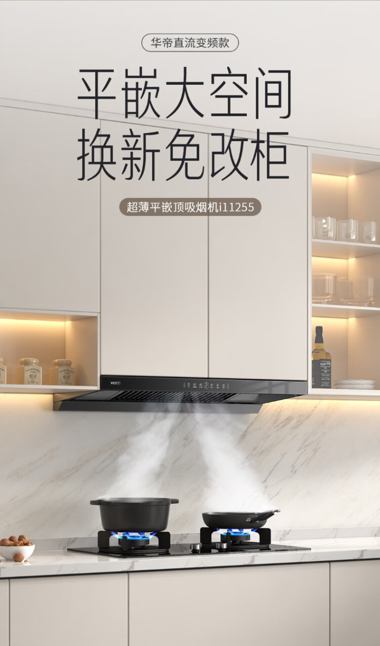 华帝(VATTI)油烟机【焕新优选】国家补贴欧式顶吸抽油烟机灶具套装S7家用25立方大吸力直流变频一级能效自清洁 i11255单烟机|超薄齐平橱柜