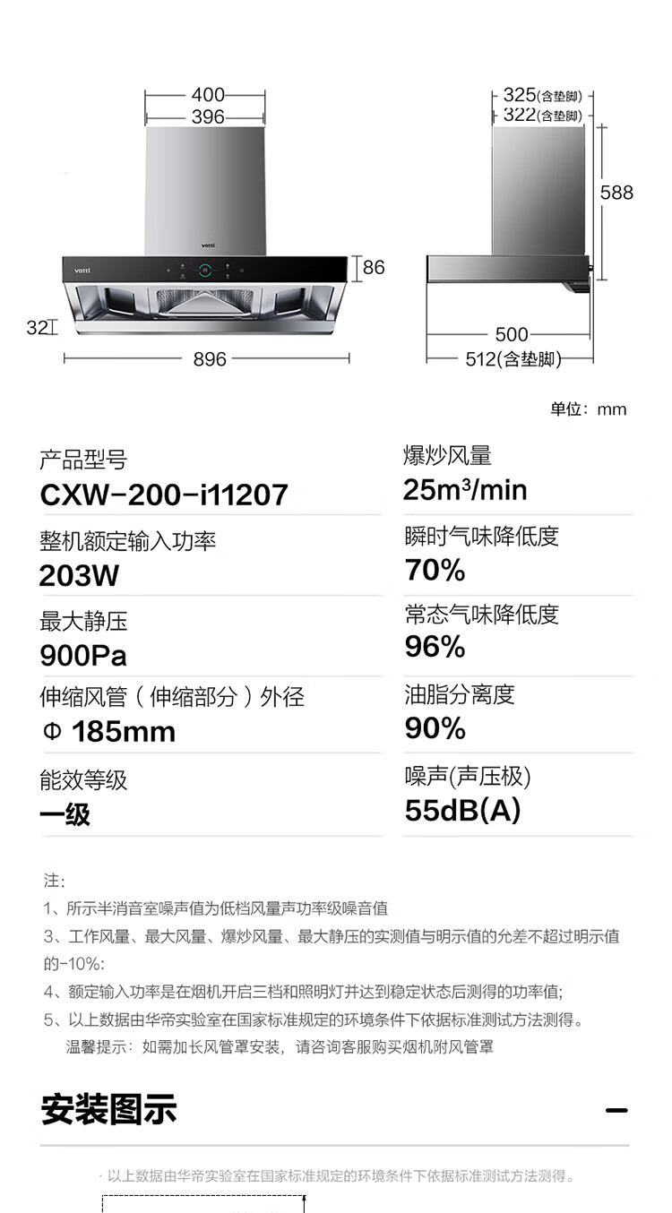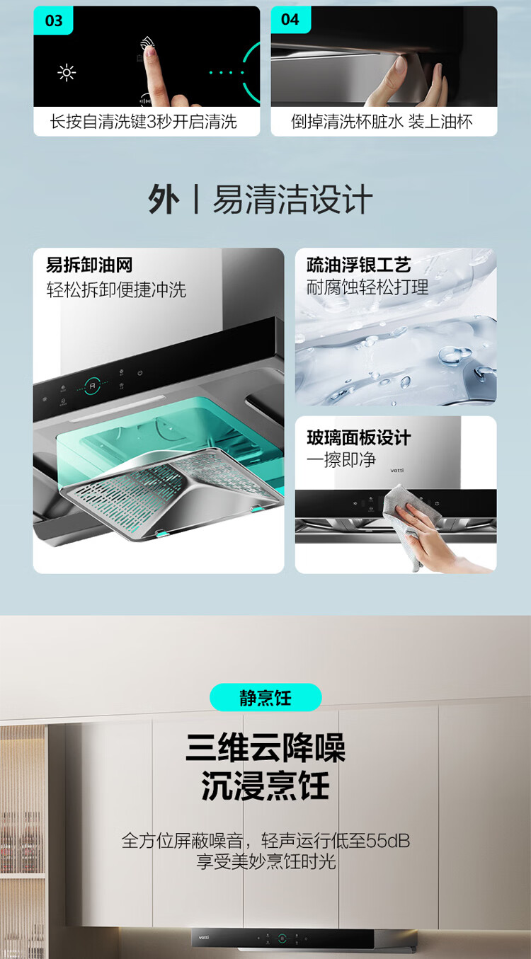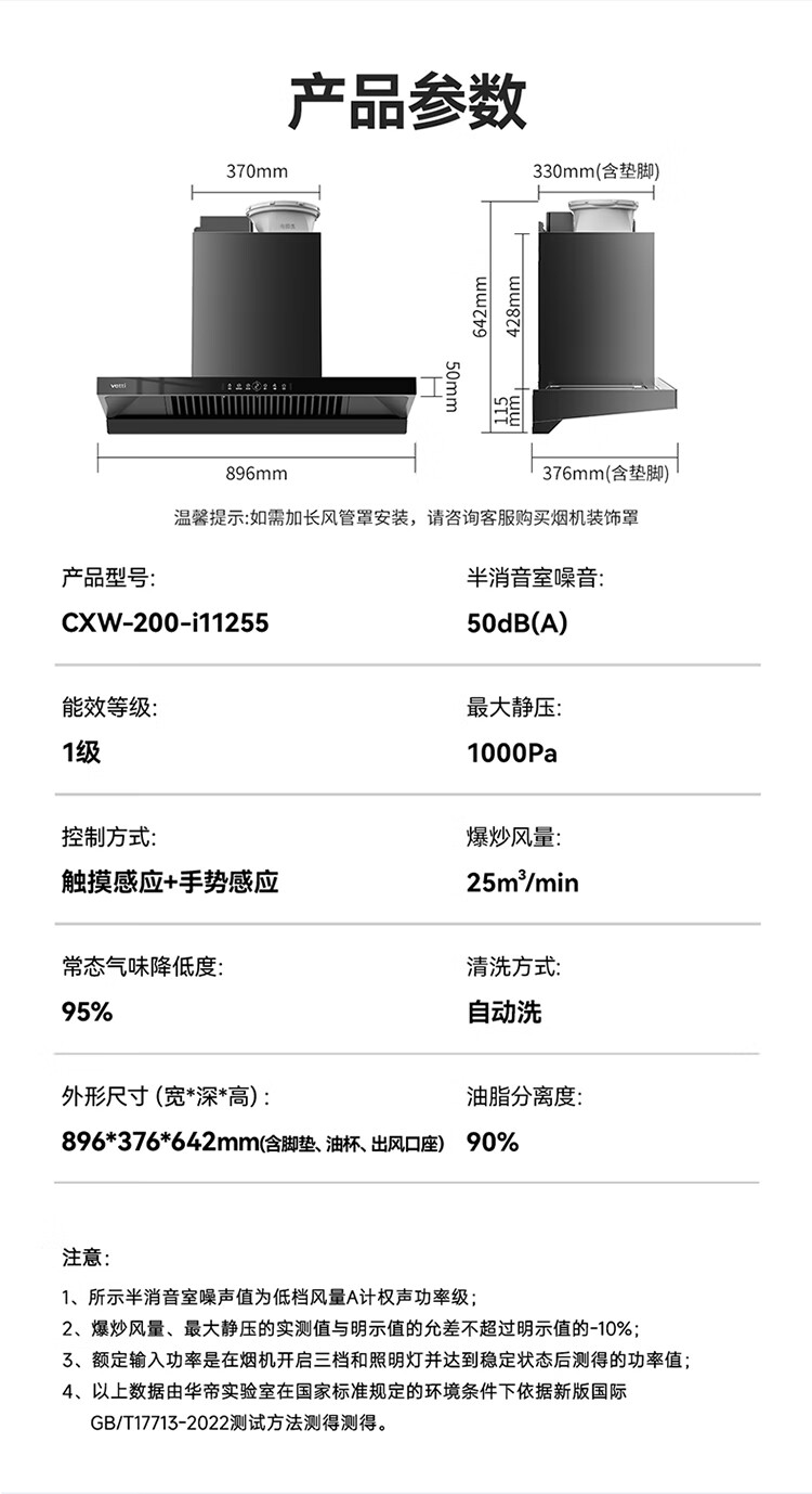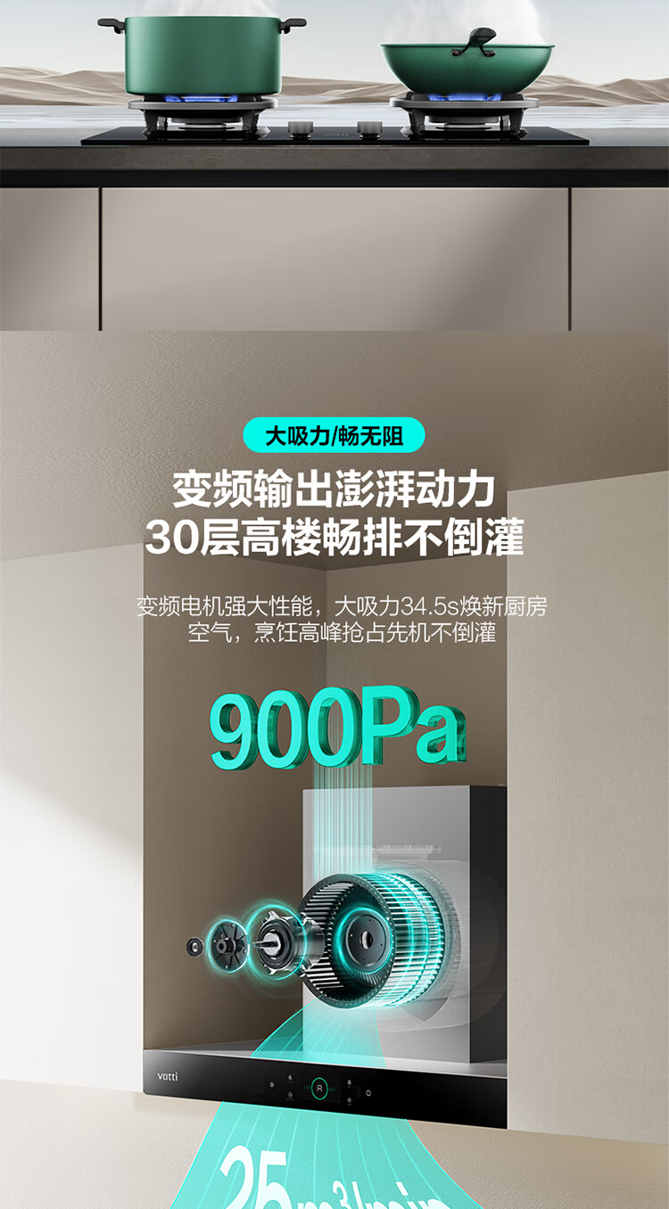 华帝(VATTI)油烟机【焕新优选】国家补贴欧式顶吸抽油烟机灶具套装S7家用25立方大吸力直流变频一级能效自清洁 i11255单烟机|超薄齐平橱柜