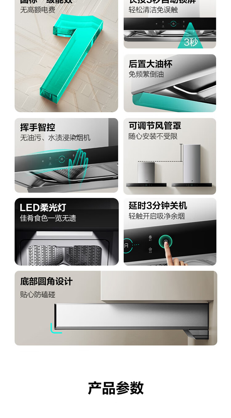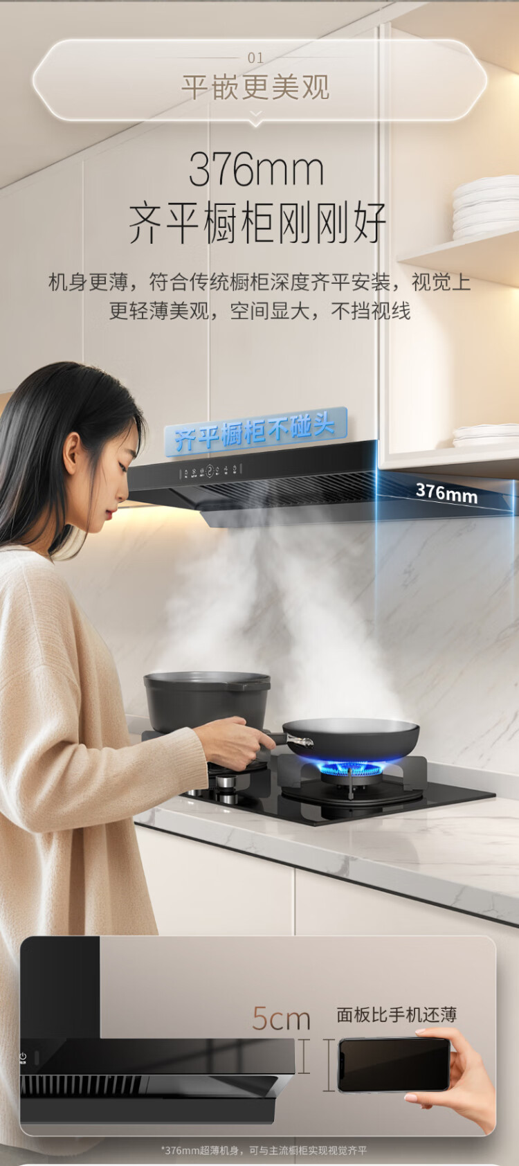 统帅(Leader)海尔智家出品【国补立减20%】抽油烟机懒人系列超薄平嵌顶侧双吸油烟机家用大吸力挥手智控自清洁 【24风量单烟机】1000风压+AI变频巡航