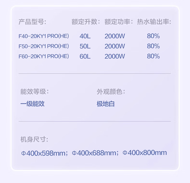 美的出品华凌电热水器 一级能效2000W速热 家用节能省电小户型租房优选 加长防电墙 无缝内胆 40L 2000W 一级能效 热销爆款KY1pro