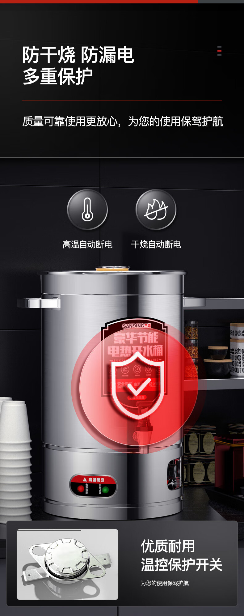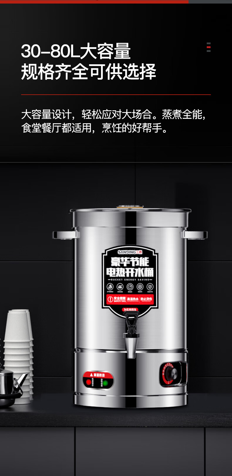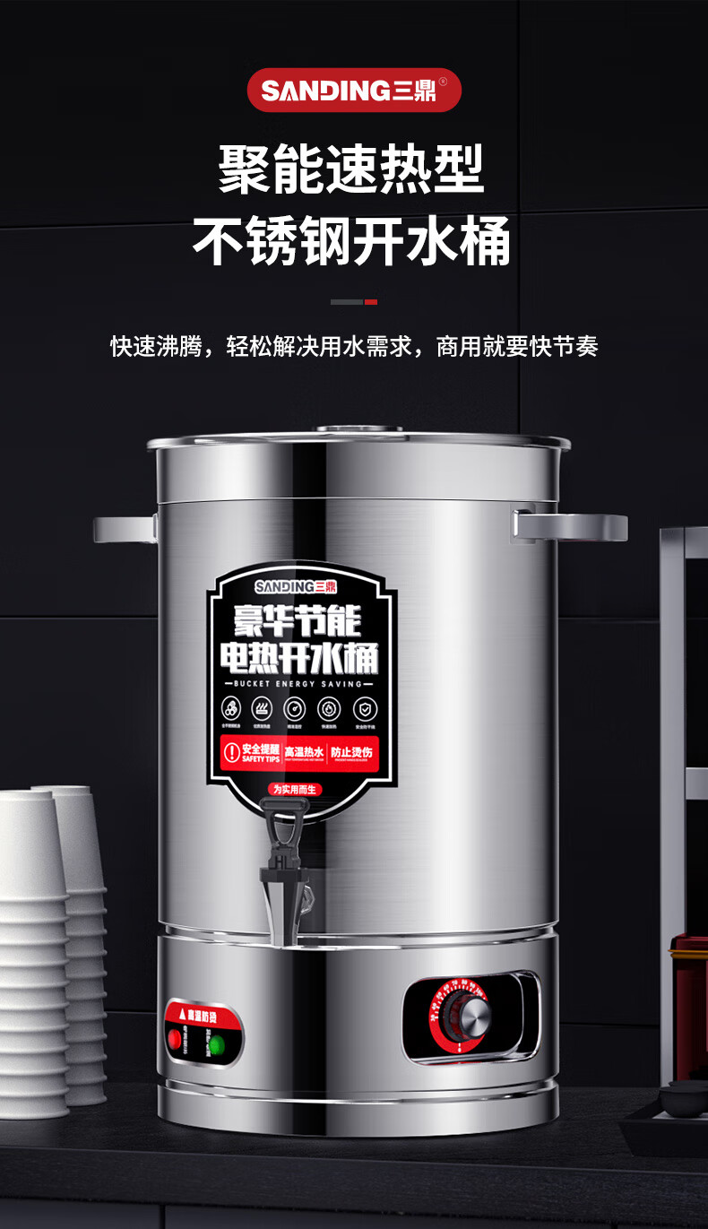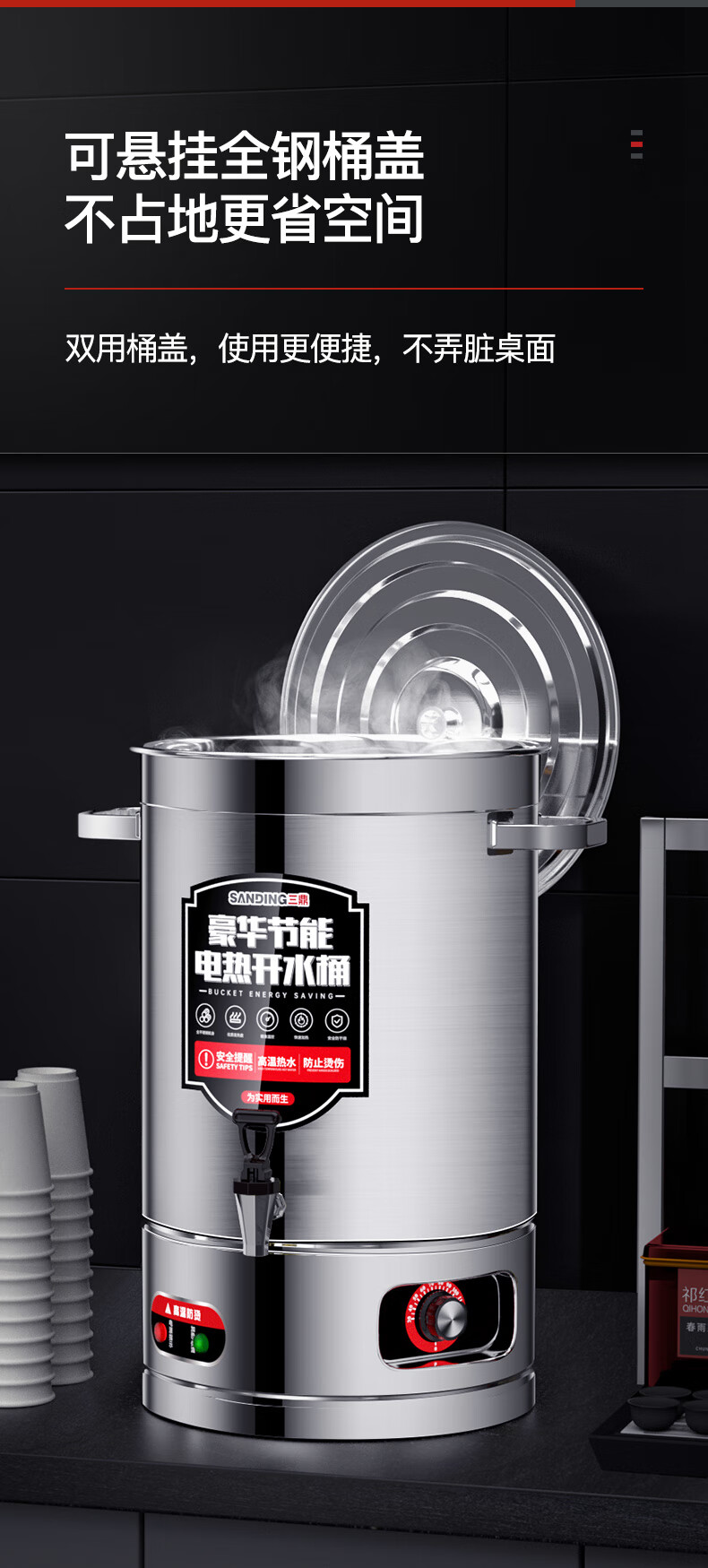 三鼎电热开水桶开水器商用烧水桶奶茶店家用不锈钢保温热水桶大容量蒸煮桶防干烧月子桶加厚 SD-60L-D