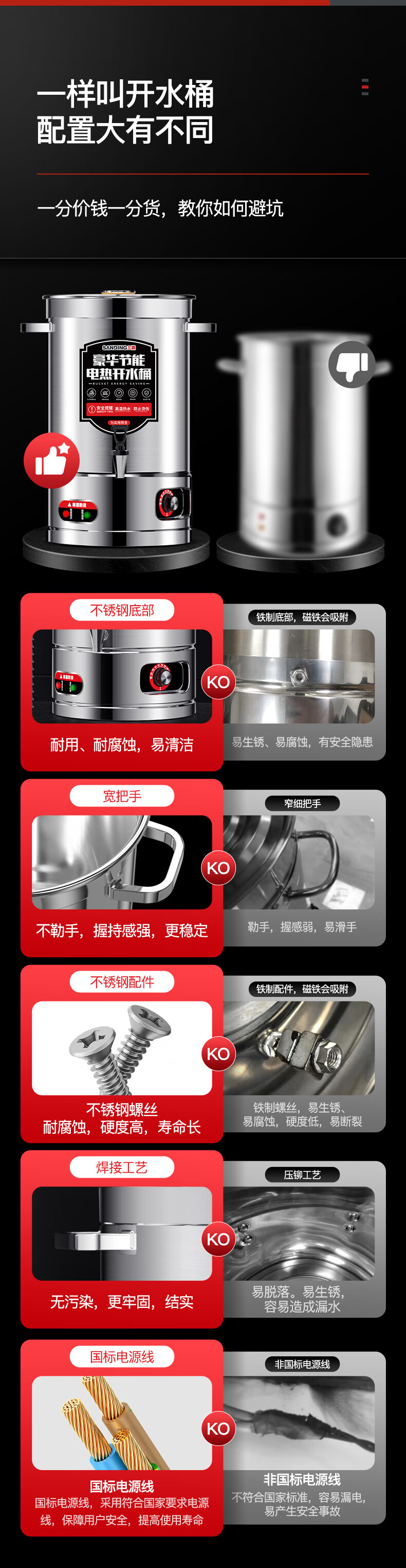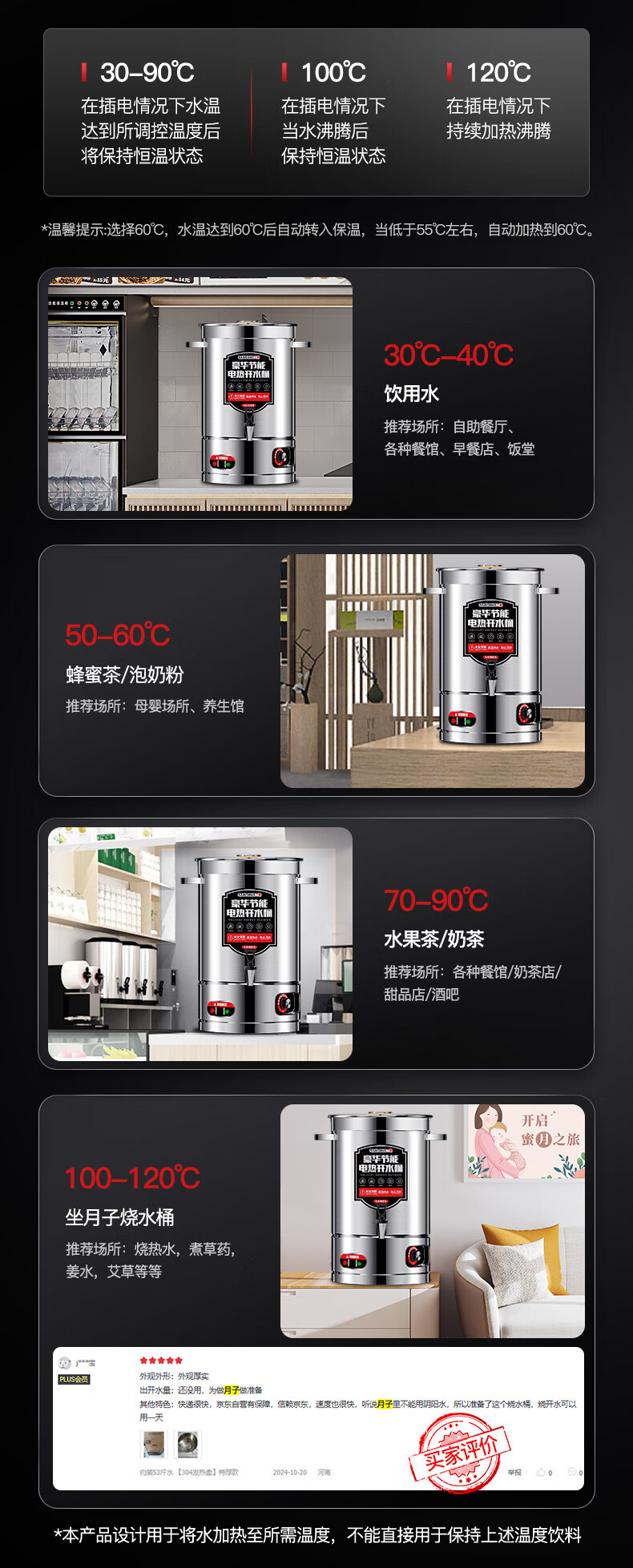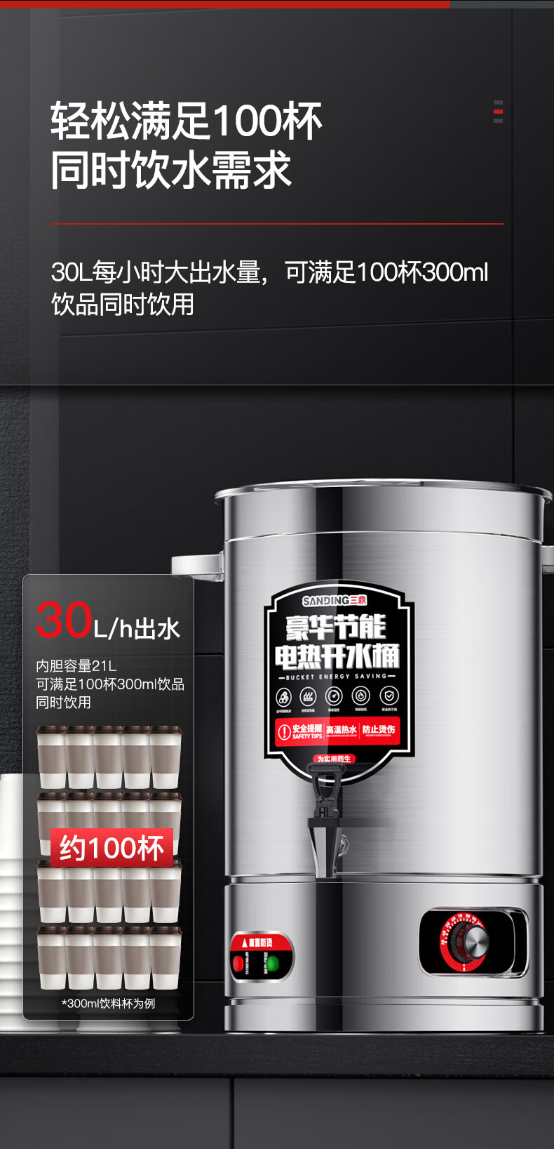 三鼎电热开水桶开水器商用烧水桶奶茶店家用不锈钢保温热水桶大容量蒸煮桶防干烧月子桶加厚 SD-60L-D