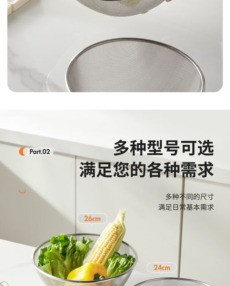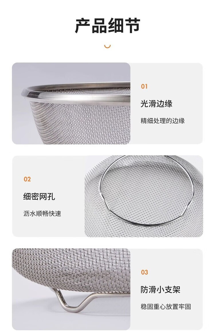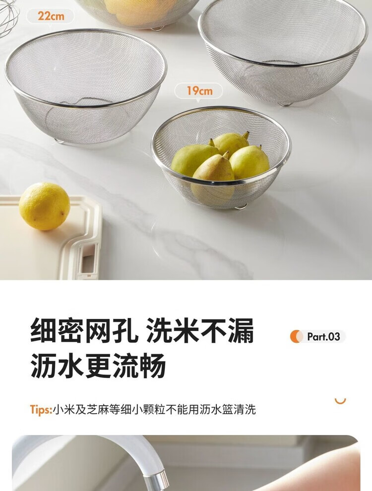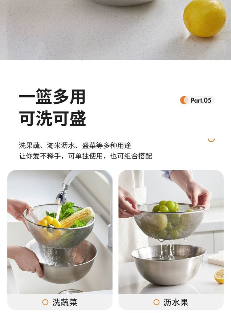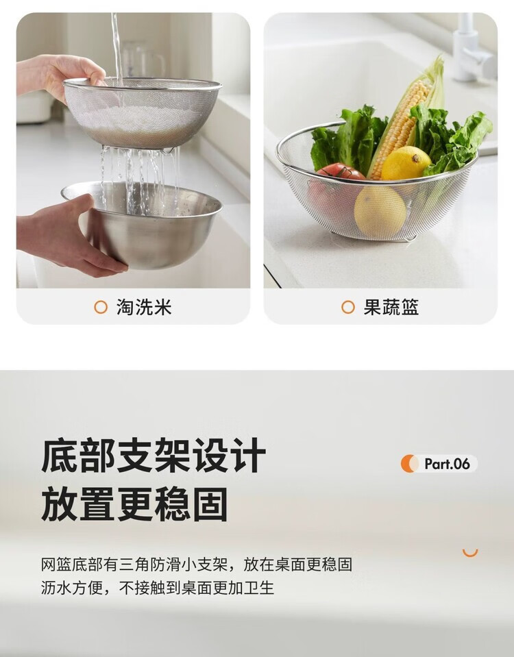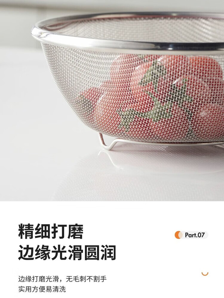 GIOIO食品级不锈钢沥水篮304新款家用厨房洗菜淘米篮洗菜盆圆形水果篮 18CM不锈钢网篮