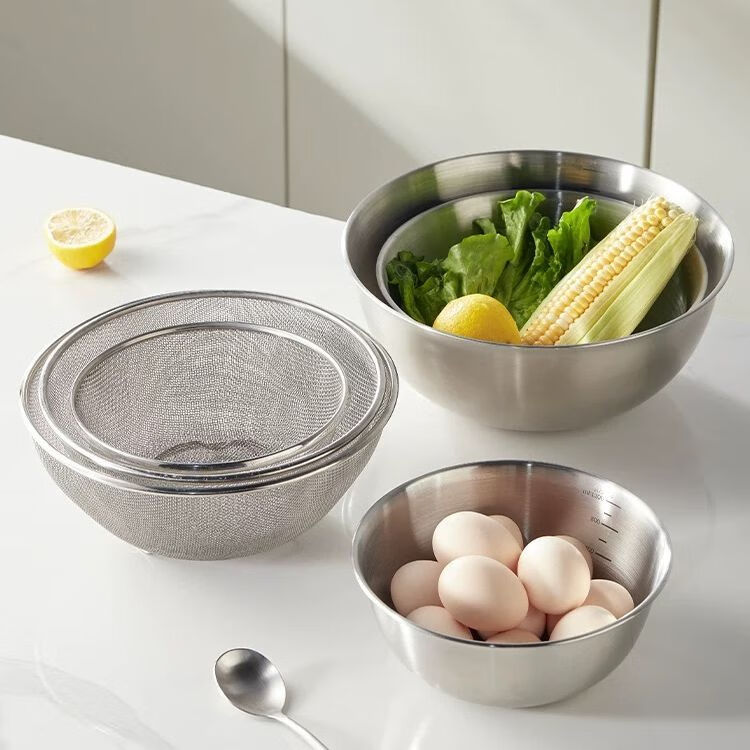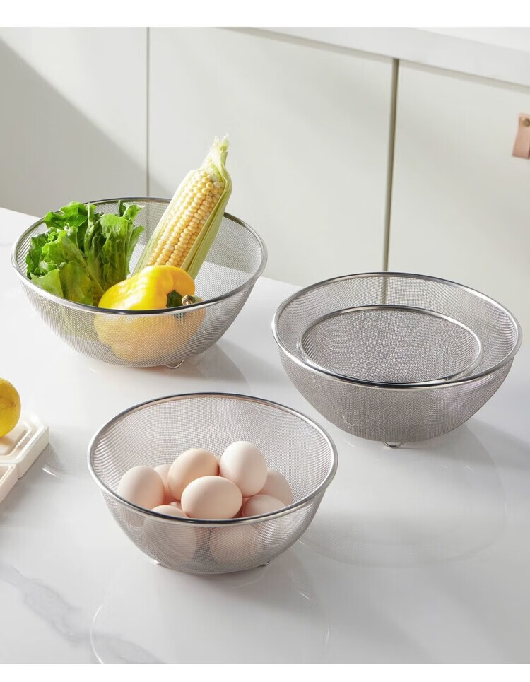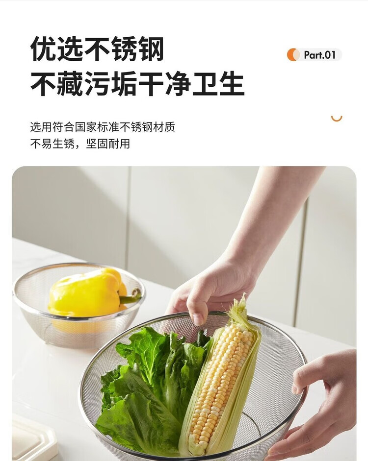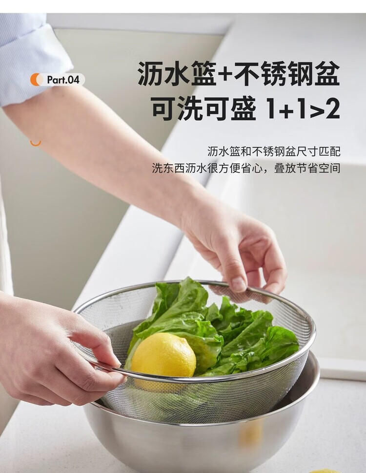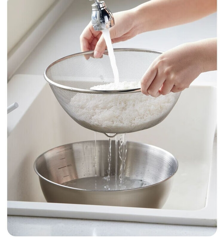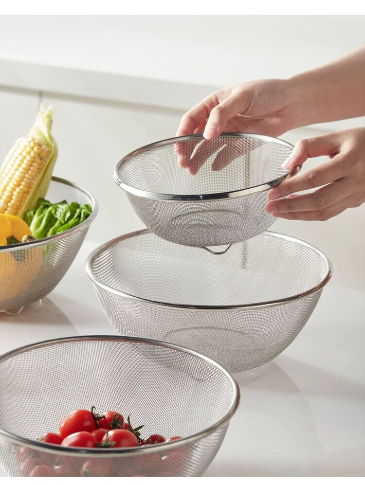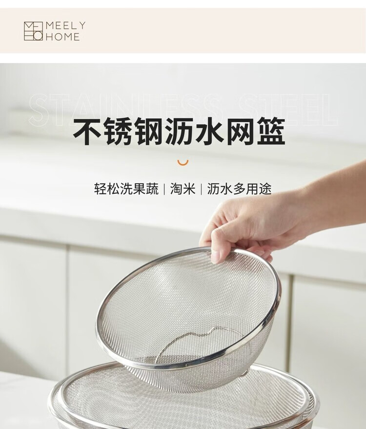 GIOIO食品级不锈钢沥水篮304新款家用厨房洗菜淘米篮洗菜盆圆形水果篮 18CM不锈钢网篮