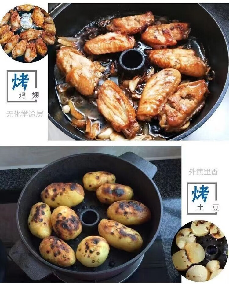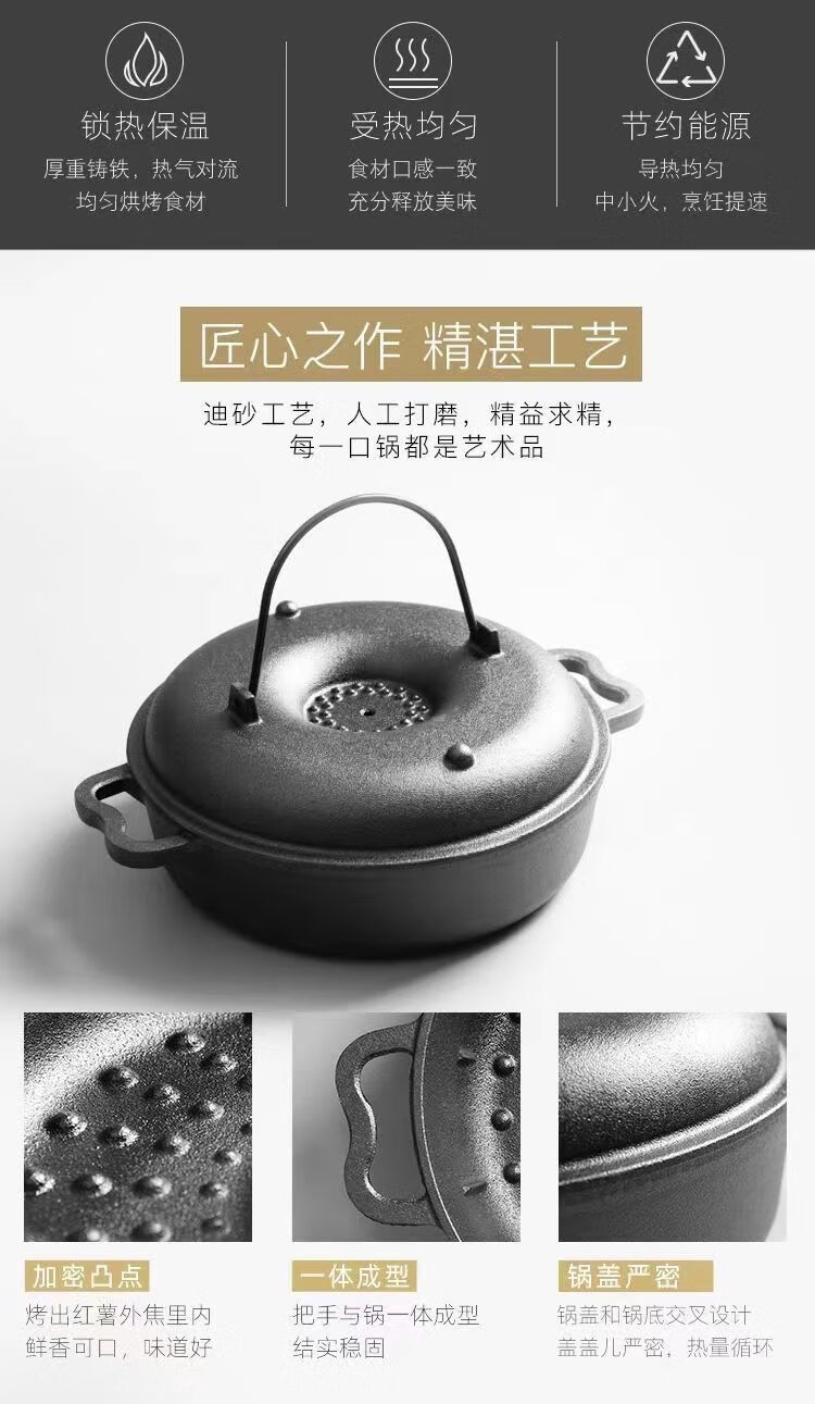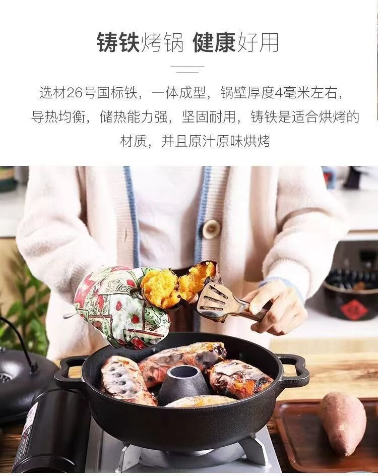 GIOIO加厚铸铁烤红薯锅家用烤地瓜锅烧烤土豆玉米机生铁烤锅烤红薯神器 小号22cm不带盖子无赠品 1cm
