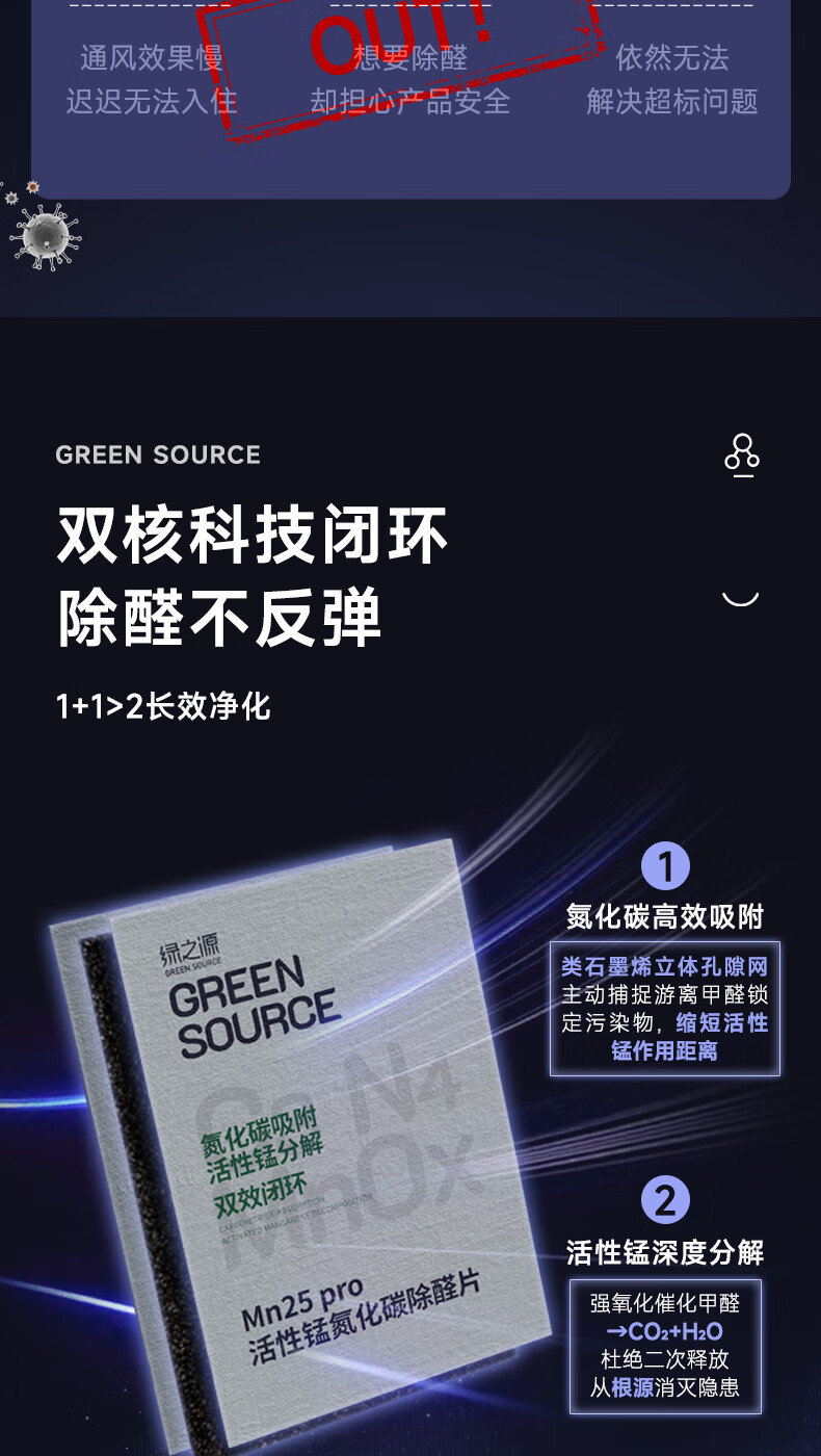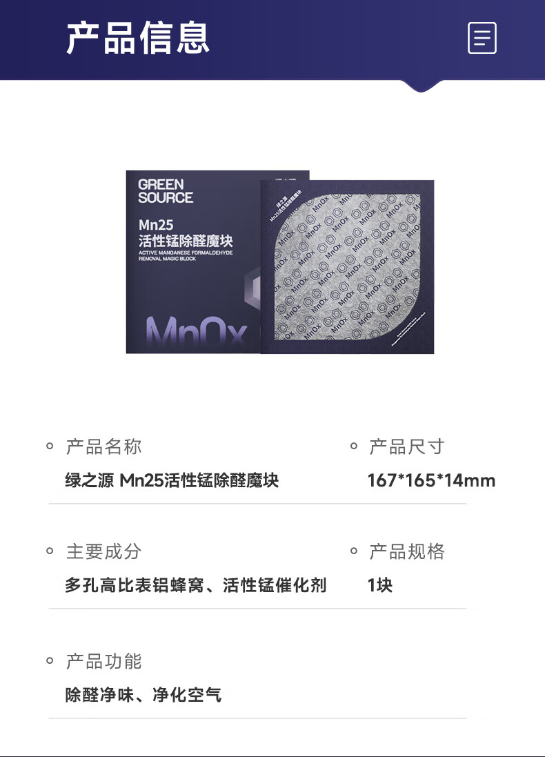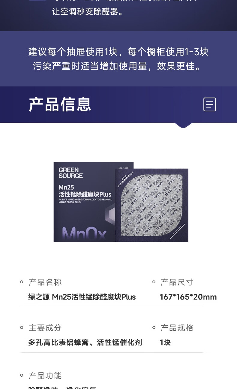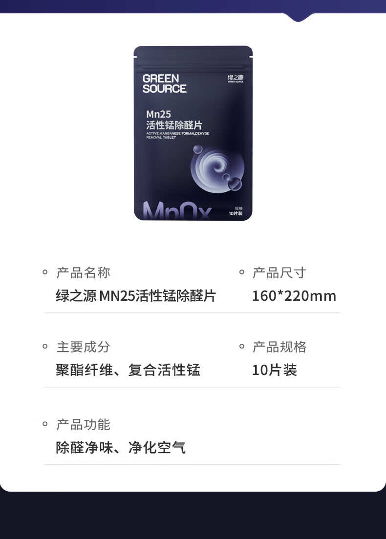 绿之源Mn25活性锰去甲醛分解毡强力除醛片甲醛清除剂母婴级家用除甲醛 Mn25丨活性锰除醛片丨20片装 10g 1包 10片/包
